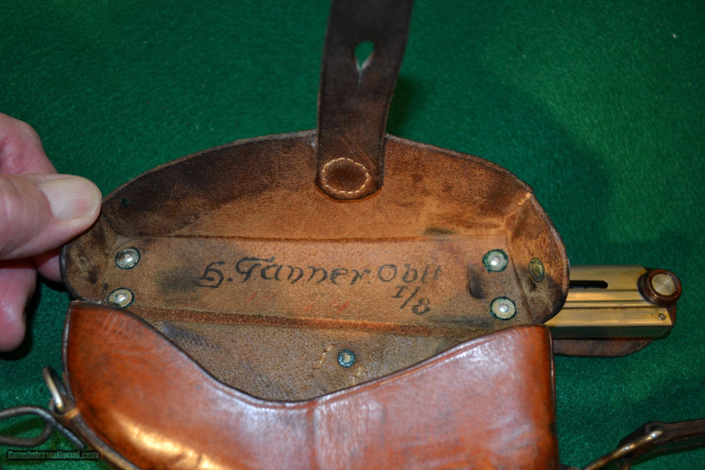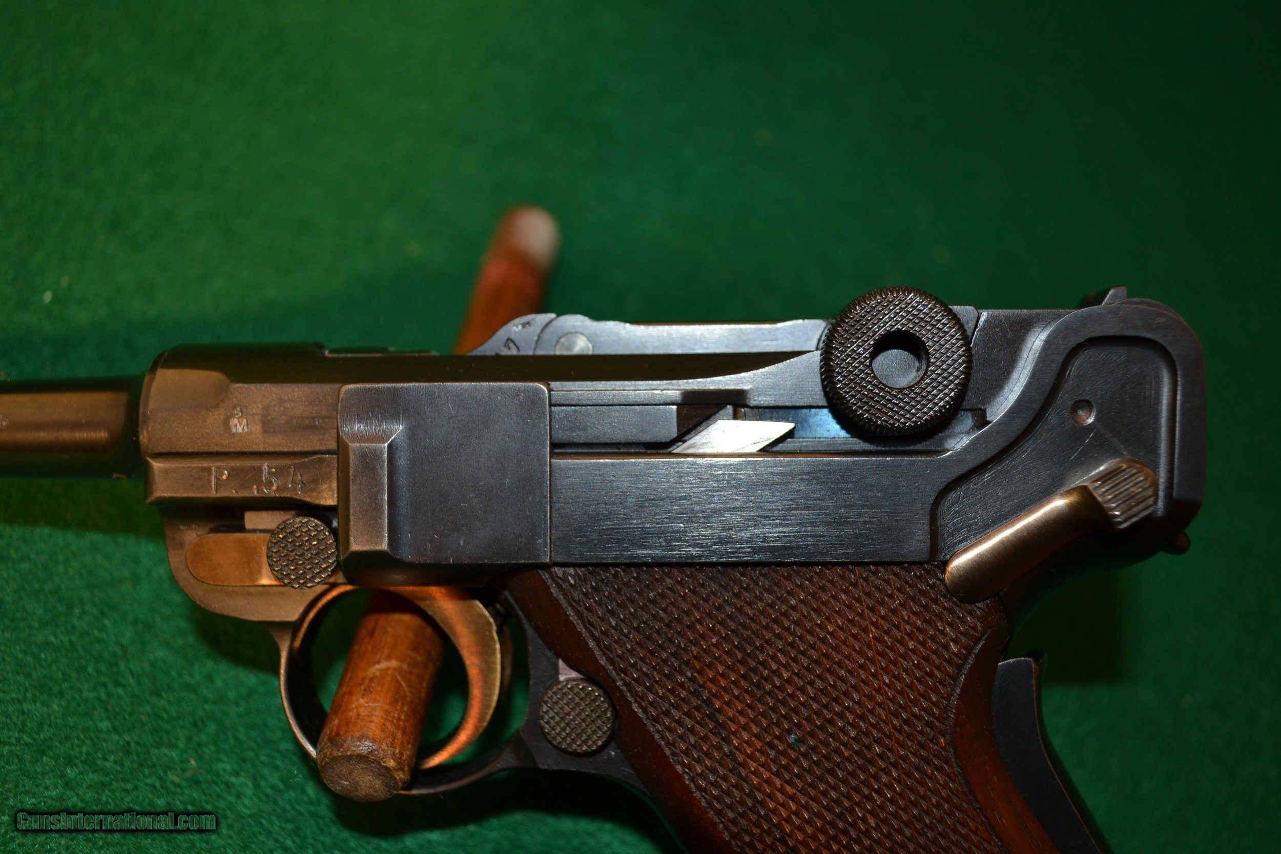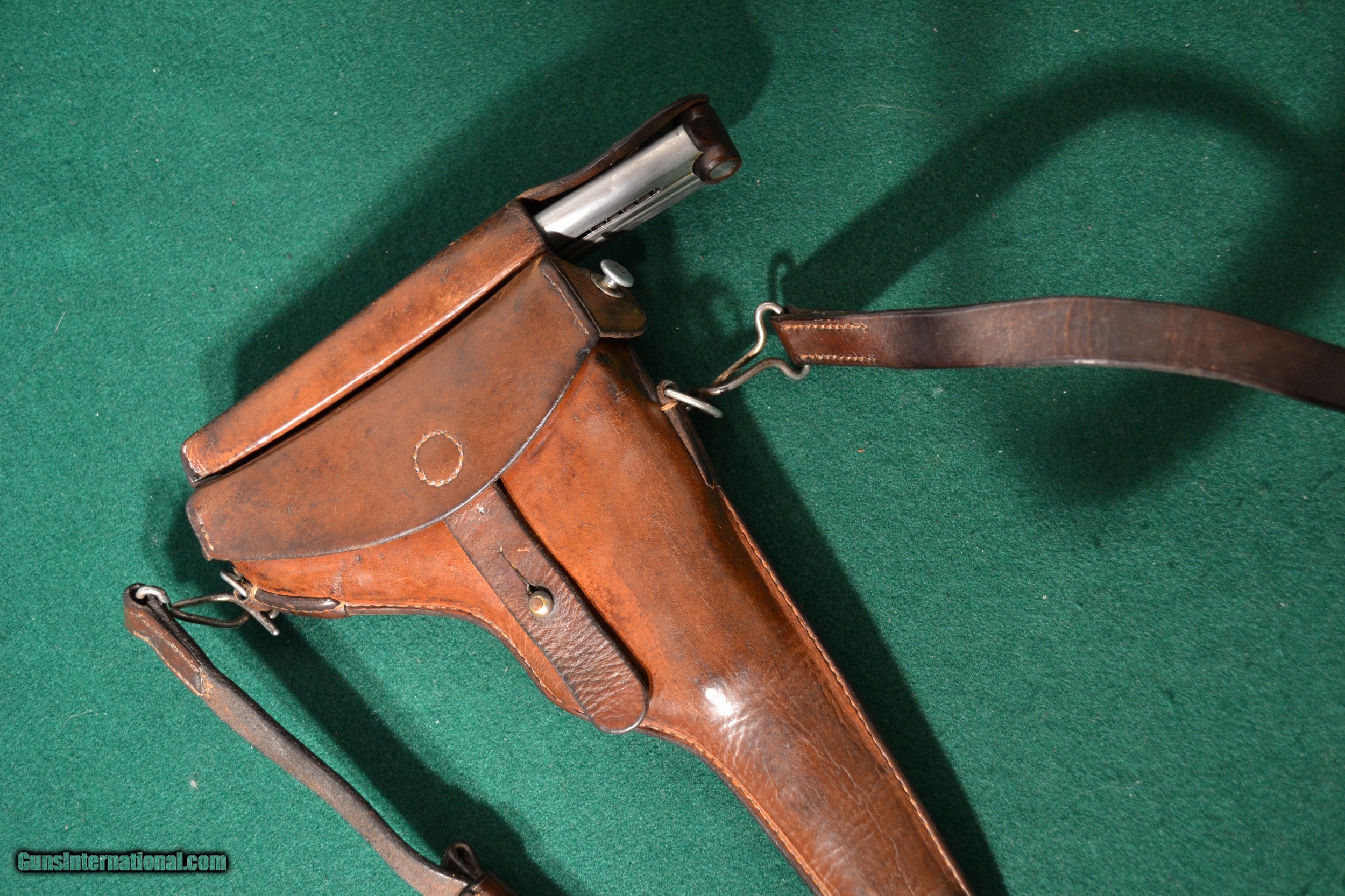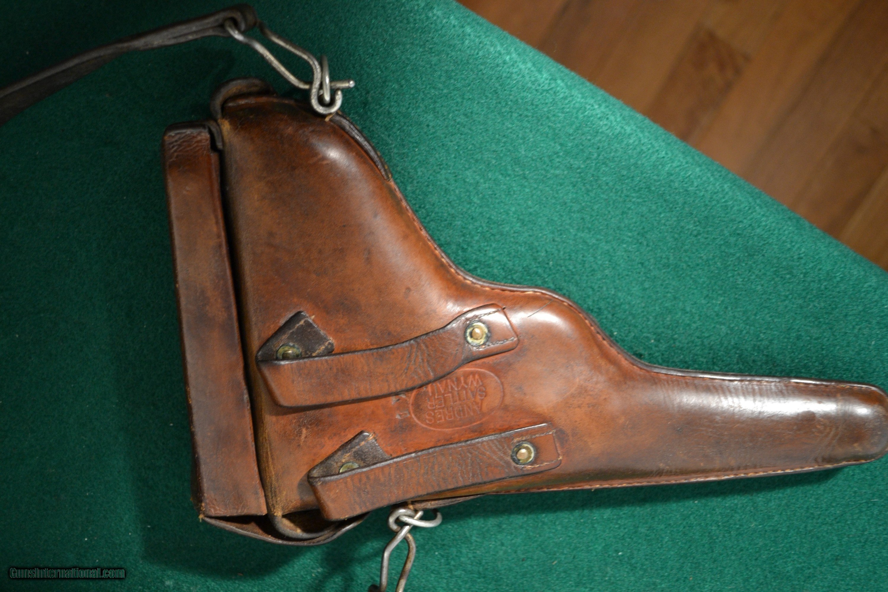 Description: Sale Pending !! This 1906 Bern Waffenbrik, Ser No 17817 was mfg at the Bern Facility in Bern , Switzerland. There were exacty 17,874 mfg.pf this model mfg at this plant. My references for info are from The Luger Handbook by Aaron Davis - 1997 and The Luger Story by John Walter. Accordinngly these Bern Plant Luger's were considered the best in design and free of the defects found in some German manufacturers. Undoubtebly caused by Wartime requirements. (World War I and Post economic issues) This Bern Luger is in Excellent condition (Abt 99%), The bluing is about 99% and the Wood Grips are 100%. Being the condition is so pristine I suspect that this was a Bern Plant remanufactured product. The following is a descriprion of the Bern - Luger's component's : Manufacturer - Waffenbrik - Bern, Toggle - Srrated Type marked Waffenbrik/Bern, Barrel - 4 3/4" in 7.65 Caliber, Frame - Long Type w/grip Safety, Wide Trigger, & narrow Trigger Guard, Receiver - New Long type, chamber is unmarked, Thumb Safety - lower Area Polished, safe in up position, Sights - Frt Fixed "V" Notch, Dovetail front, Extractor - New Type, Grips - Checkered walnut w/plain border - slotted for grip safety, Magazine - Wood Base, unumbered, Finish - Dull, flat blue. Ejector, magazine catch, takedown lever, thumb safety lever and trigger all are straw colored, Quantity Made - Exactly 17,874, Serial Range - 15216 - 33089, Serial Location - 2 digits: breechblock, extractor, grips,grip safety, rreceiver, side plate, takedown lever, toggle. Full Serial No - Front of Frame , bottom of barrel. History: This model was mfg for the Swiss Military & Police sales. It is the first Luger not made in Germany. Proofmark - + Location Receiver, "M" - Boxed Description - Colonel Muhlemann This Bern - Luger fufulls all of the above criteria and to me is an outstanding examble of true "Swiss" quality workmanship and no small wonder compared to their fine watches. Holster - Mfg by Andres Sattler Wynau - Dated 1/8 (? Year). Excellent supple Tan leather w/original strap (Not rotted - perfect) w/extra matching magazine. SOLD Curio/Relic: Yes Handgun Caliber: 7.65x22mm Parabellum (7.65x22mm Luger, .30 Luger) Manufacturer: Bern - Waffenbrik Model: Luger Serial Number: 17817 Barrel Length: 4 3/4 Inch Bore: Excellent Condition: Excellent Metal Condition: Excellent Wood Condition: Excellent Bore Condition: Mirror - Excellent Action: Semi Auto Triggers: Straw |