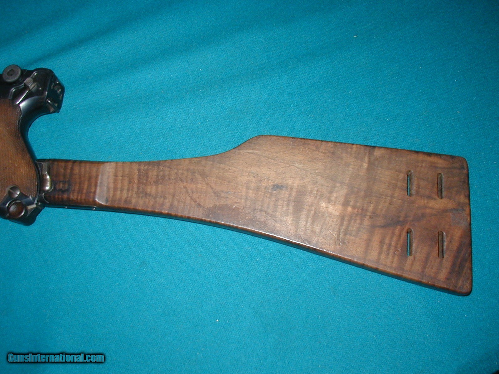 Description: * re list from a deadbeat buyer* FROM MY PERSONAL COLLECTION, THIS IS A BEAUTIFUL 98% DWM 1916 ARTILLERY LUGER WITH MATCHING MAG AND STOCK....#8 a.......MINT BORE, ALL MATCHING AND ORIGINAL THROUGHOUT....SOME MINOR PIN PRICKING ON LEFT SIDE AND UNDER BARREL...EXCELLENT OVERALL CONDITION AS CAN BE SEEN IN PICTURES, ( taken with flash )...c&r ok SOLD Curio/Relic: Yes |