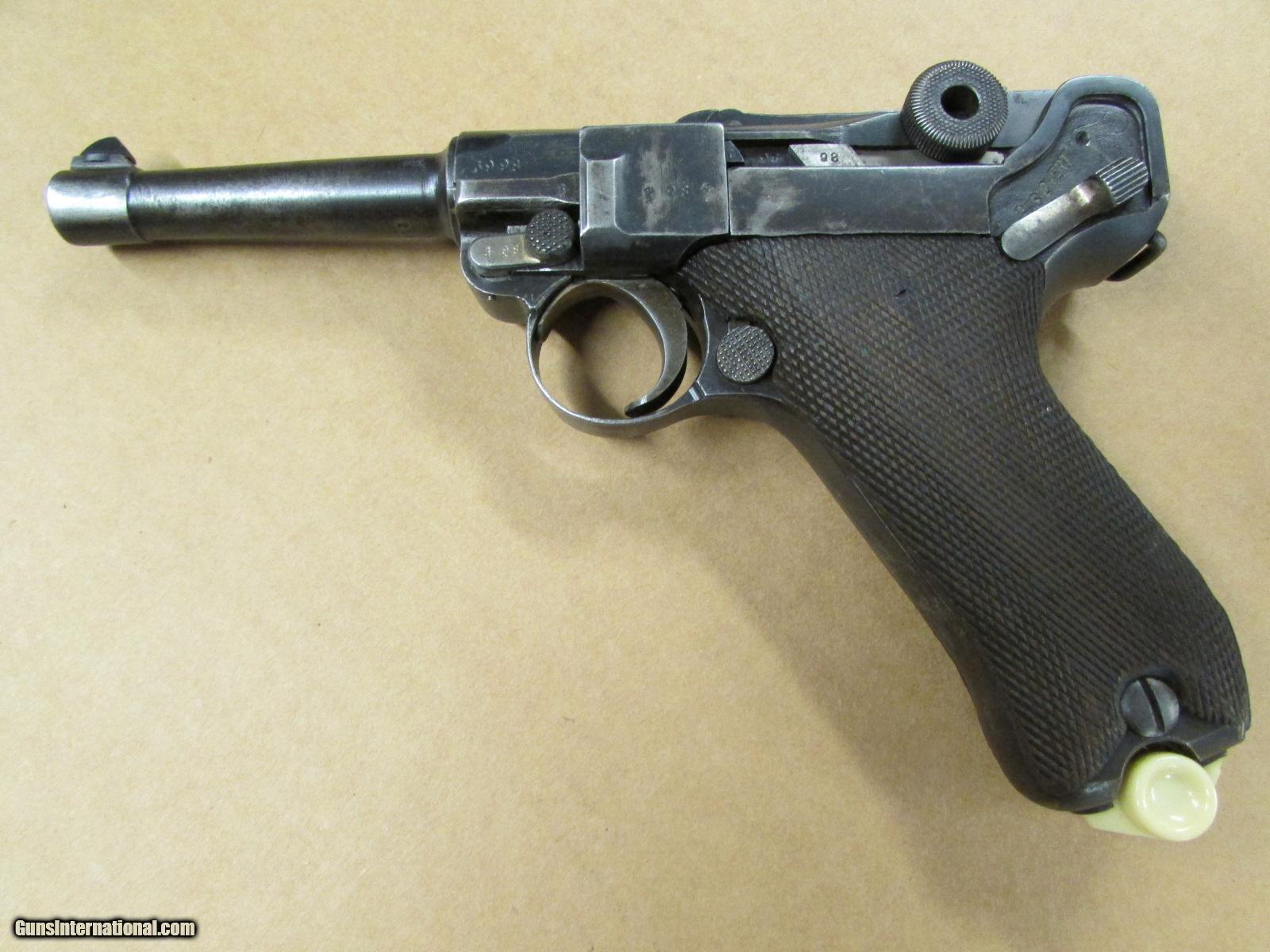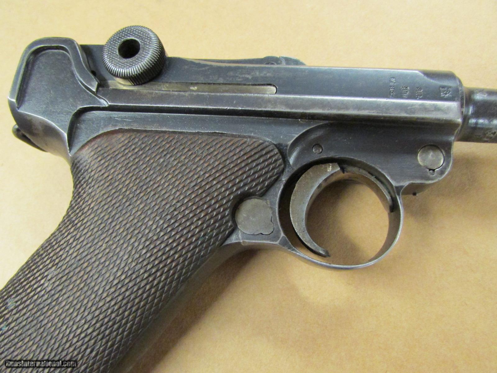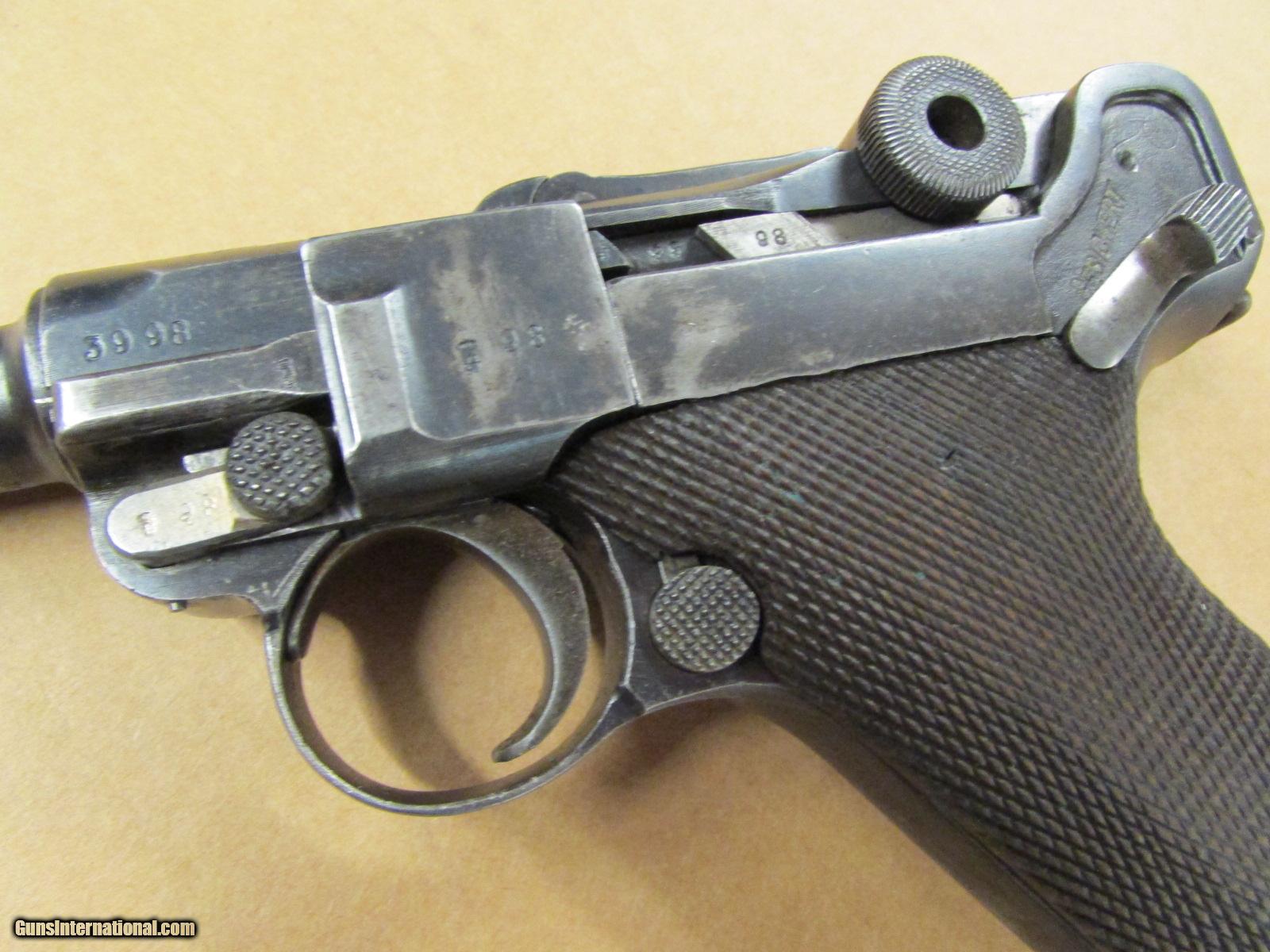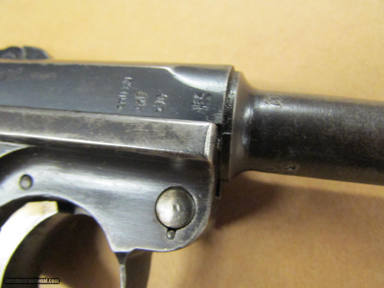 Description: This is a very nice example of a fully functional German Empire Luger manufactured in 1916 by Erfurt. Bluing wear is honest for a firearm that is 100 years old, no rust or major handing marks. Probably this best attribute of this firearm is it's bore (Shown in Pictures) rifling is still strong, no pitting and very bright. All serial numbers match on this firearm EXCEPT for the magazine. Firearm was function tested and works great, still a very tight and sound pistol mechanically. This one will probably last another 100 years or more if properly maintained. With the adoption of the Luger came large orders which could not be filled in the time allotted by DWM. Consequently, the Royal German Arsenal at Erfurt was appointed co-manufacturer. Many thousands of Lugers were turned out of that great establishment, all bearing the insignia of the arsenal, a large crown surmounting the name “Erfurt,” stamped on the forward toggle link instead of the DWM trademark. Almost all DWM and Erfurt Lugers produced for the military will bear the date of manufacture and acceptance stamped into the receiver ring. A new system of numbering was initiated wherein the block of numbers never exceeded 9,999. Once that figure was reached a letter was added beneath the numbers beginning with “a” and so on through the alphabet. This letter becomes as much a part of the serial number as the numbers themselves, a point to remember when recording serial numbers on Luger pistols. Without the inclusion of the letter, hundreds of Lugers would carry the identical number and the difficulties which might arise may well be imagined. Please feel free to contact with any questions or interest. If Paying by Credit/Debit Card please add 2% to the total purchase price. Shipping to lower 48 only, Shipping $30.00 KNOW YOUR LOCAL AND STATE LAWS!! SOLD Curio/Relic: Yes |