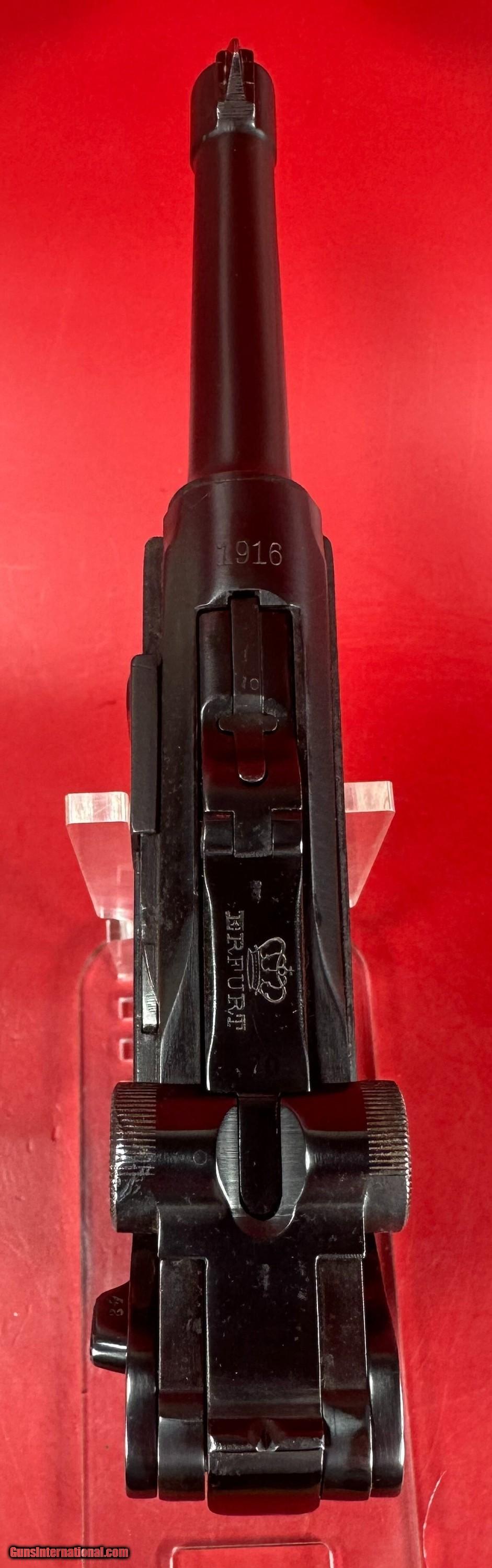 1916 German Erfurt P08 Luger 9mm Matching. Excellent Condition