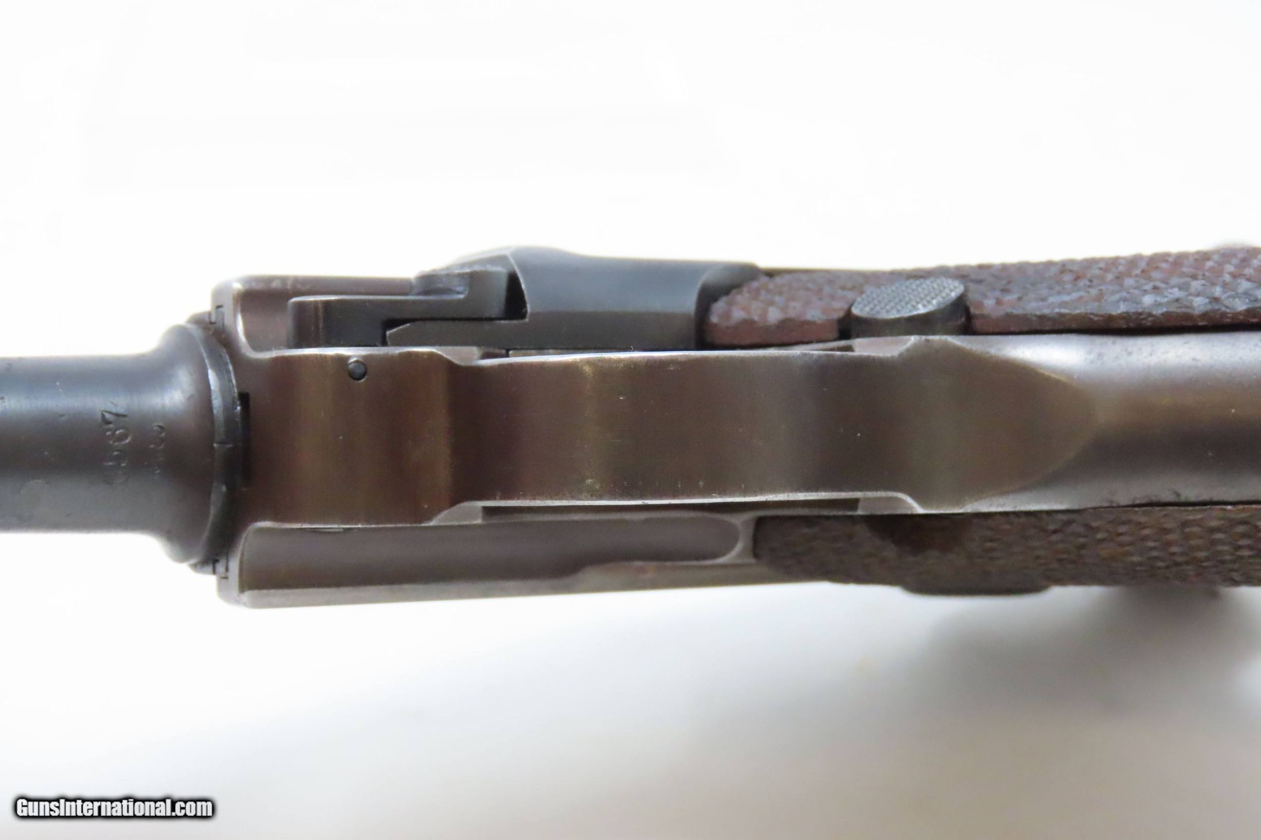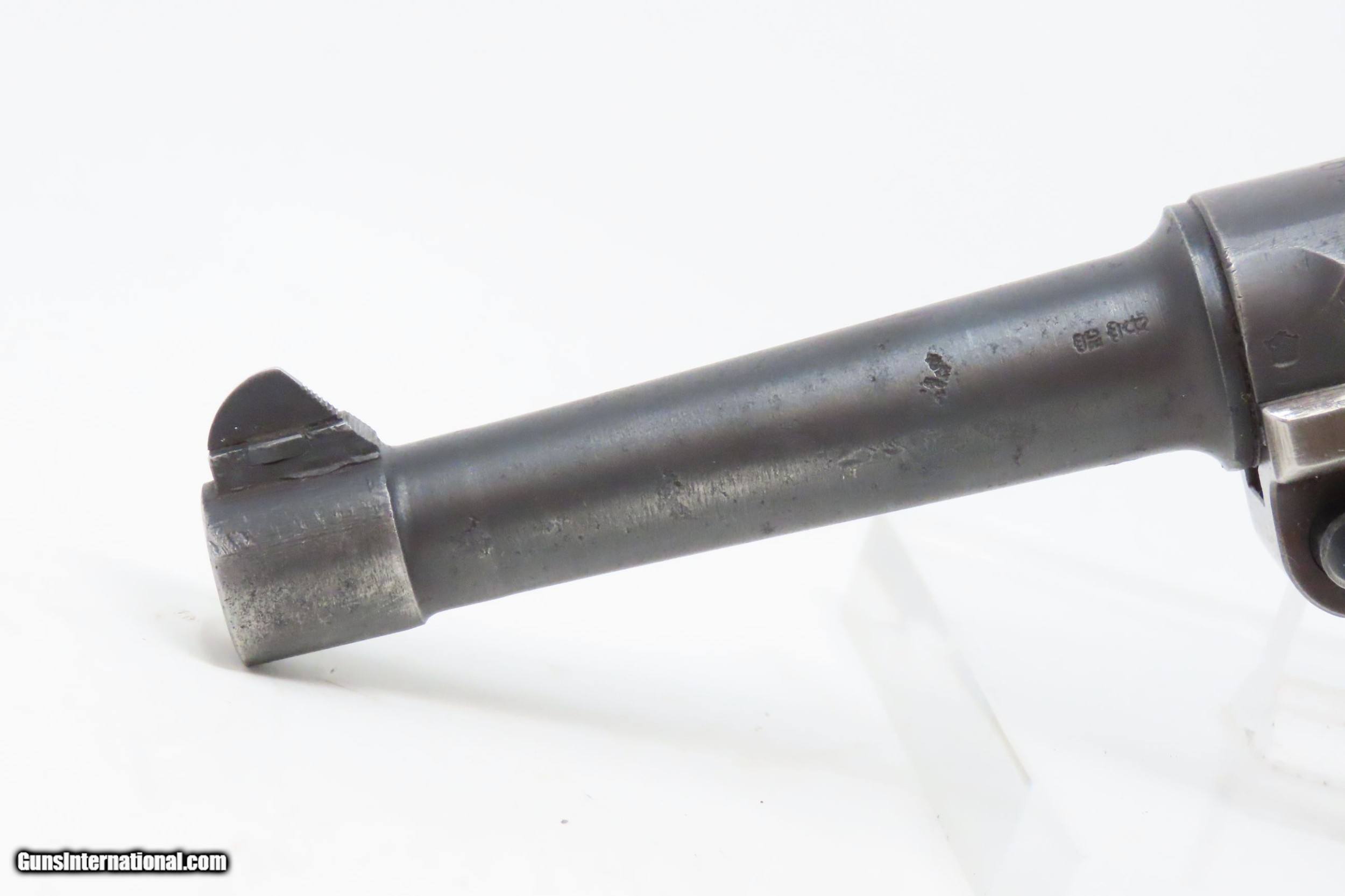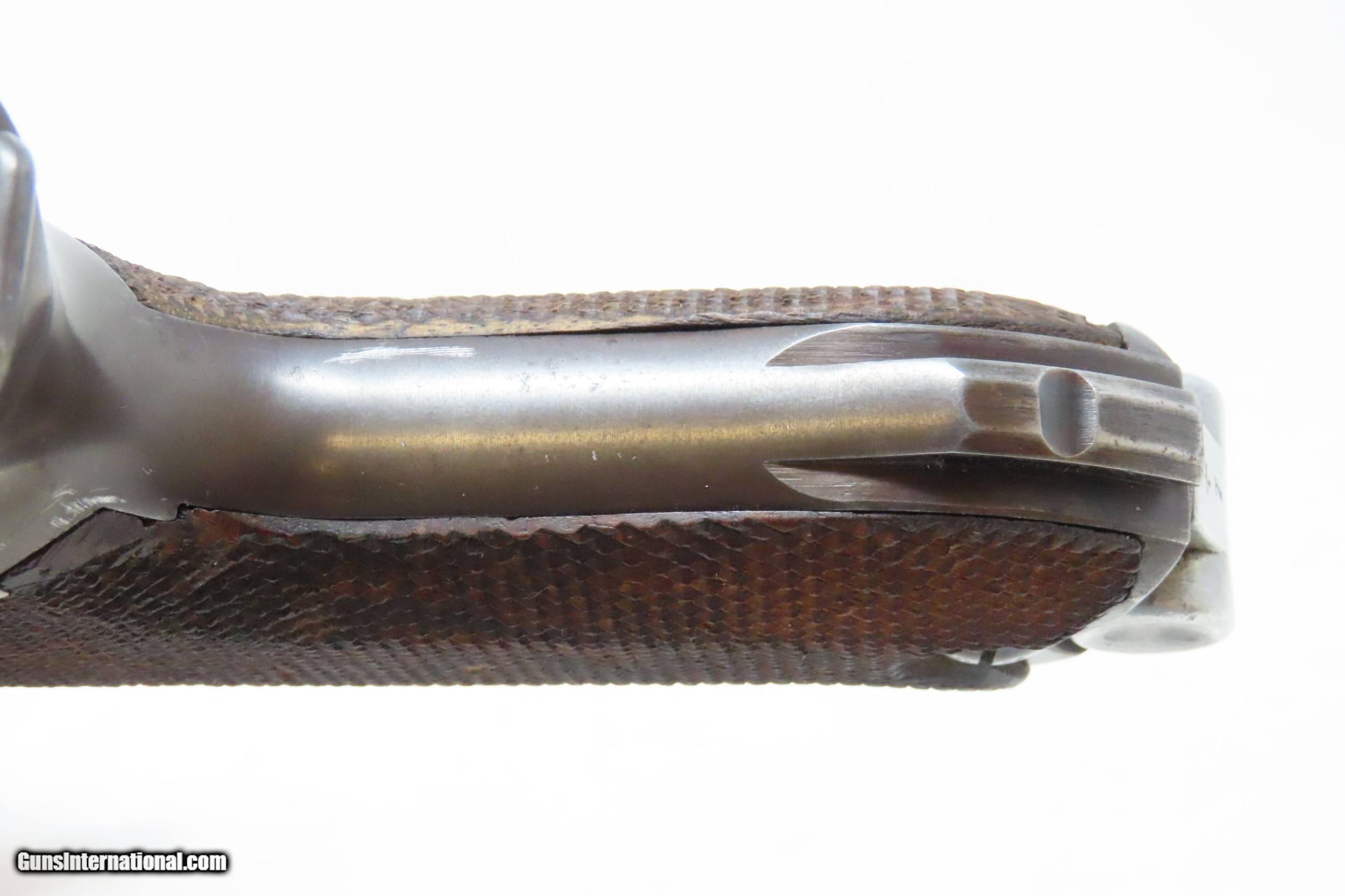 Description: 1917 Dated WORLD WAR I Era Semi-Automatic 9x19mm GERMAN LUGER C&R Pistol SIMSON & CO. Toggle with “CROWN/M” IMPERIAL NAVY Proofs Here we present a C&R World War I Era P.08 Luger Pistol, made circa 1917 likely at the Erfurt Arsenal in Erfurt, Germany. The “Crown over M” proof mark is the proof for the Imperial Navy on the barrel extension. The top of the toggle is marked “Simson & Co./Suhl”, though this gun was not made by Simson. Simson & Company began production of luger pistols in 1925 and continued until 1933 when the Nazi party took control of their factory. The overall condition is good. Bright bore. Both grips are in good shape with sharp checkering and an expected amount of handling. Clear markings. The action is strong. Portions of the toggle are refinished/replacement parts. “1917” dated. This firearm is classified as a Curio & Relic. Barrel is 4 inches. Caliber: 9mm Luger (Parabellum) Overall condition as seen in photos. Very Fast. Very Safe. FREE SHIPPING. Will need to be sent to your local FFL or C&R licensee. This firearm is classified as a Curio & Relic. Guaranteed AUTHENTIC & Includes CERTIFICATE OF AUTHENTICITY. ancestryguns $2200 #217946 SOLD Curio/Relic: Yes |