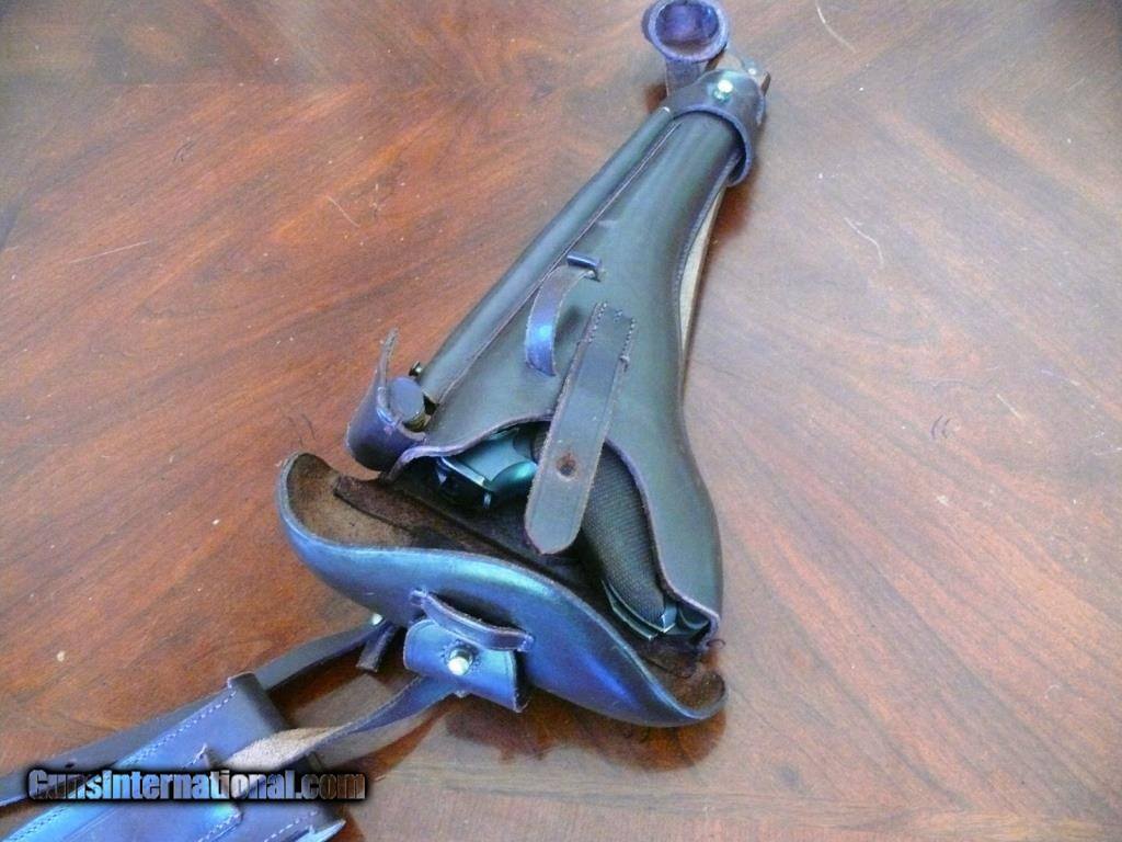 Description: Looks to be a number matching gun, less the period correct magazine. Has a very good bore and a nice trigger pull. It is also pretty accurate! I have added a shoulder stock with the correct style holster. This holster came from CMR International in England. They make very nice stuff and they also offer the trommel magazine for this gun. The stock fits perfectly. No extra mags or sight tools, sorry. You will pay actual shipping to your FFL. Must ship to an FFL as its a handgun, even if you have a C&R. Let me know if you have any questions. Strength and Honor! SOLD |