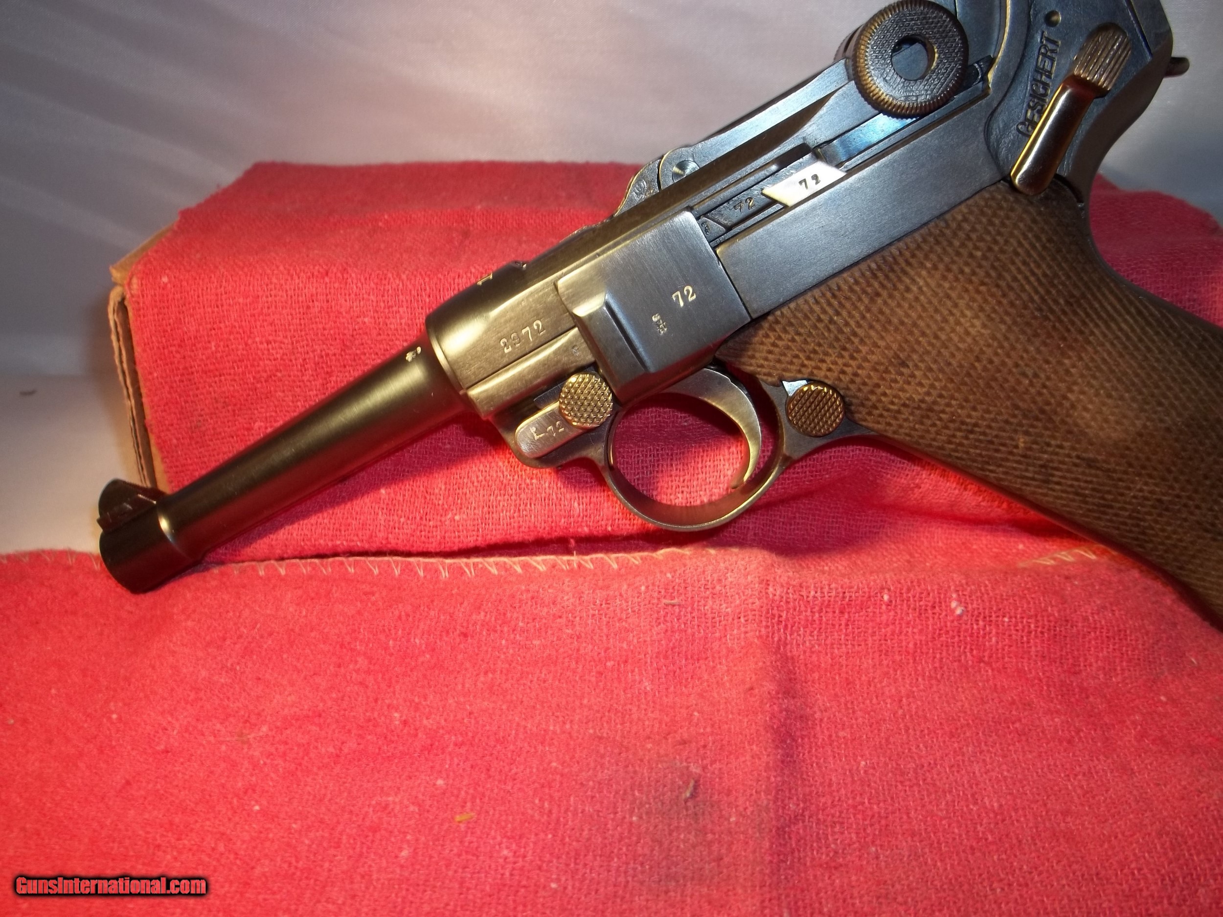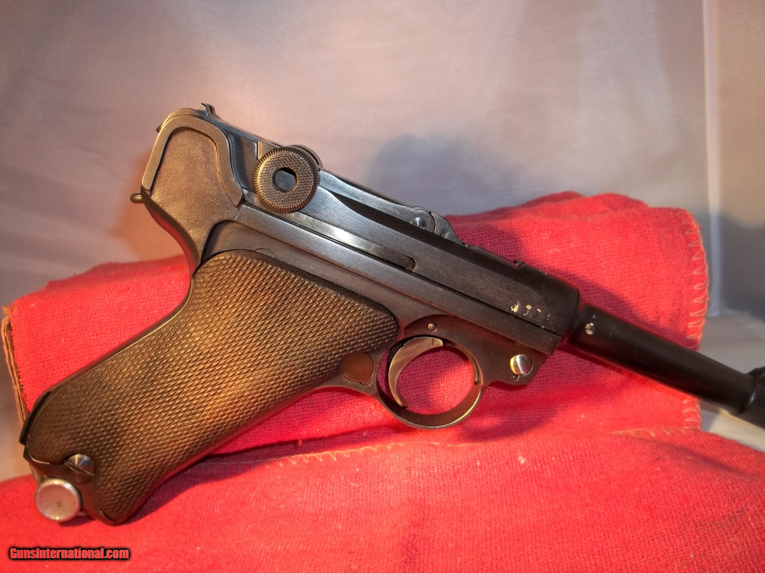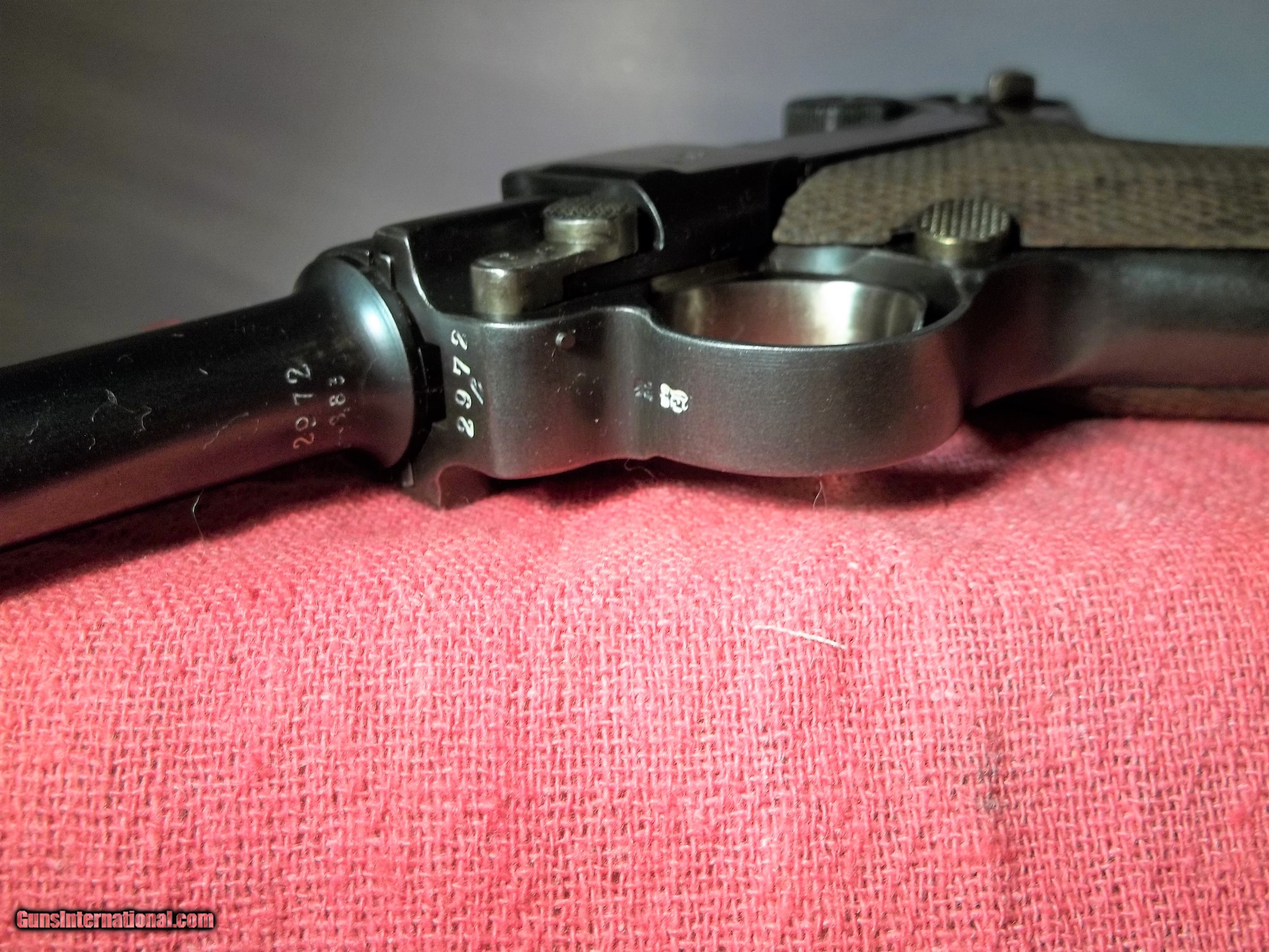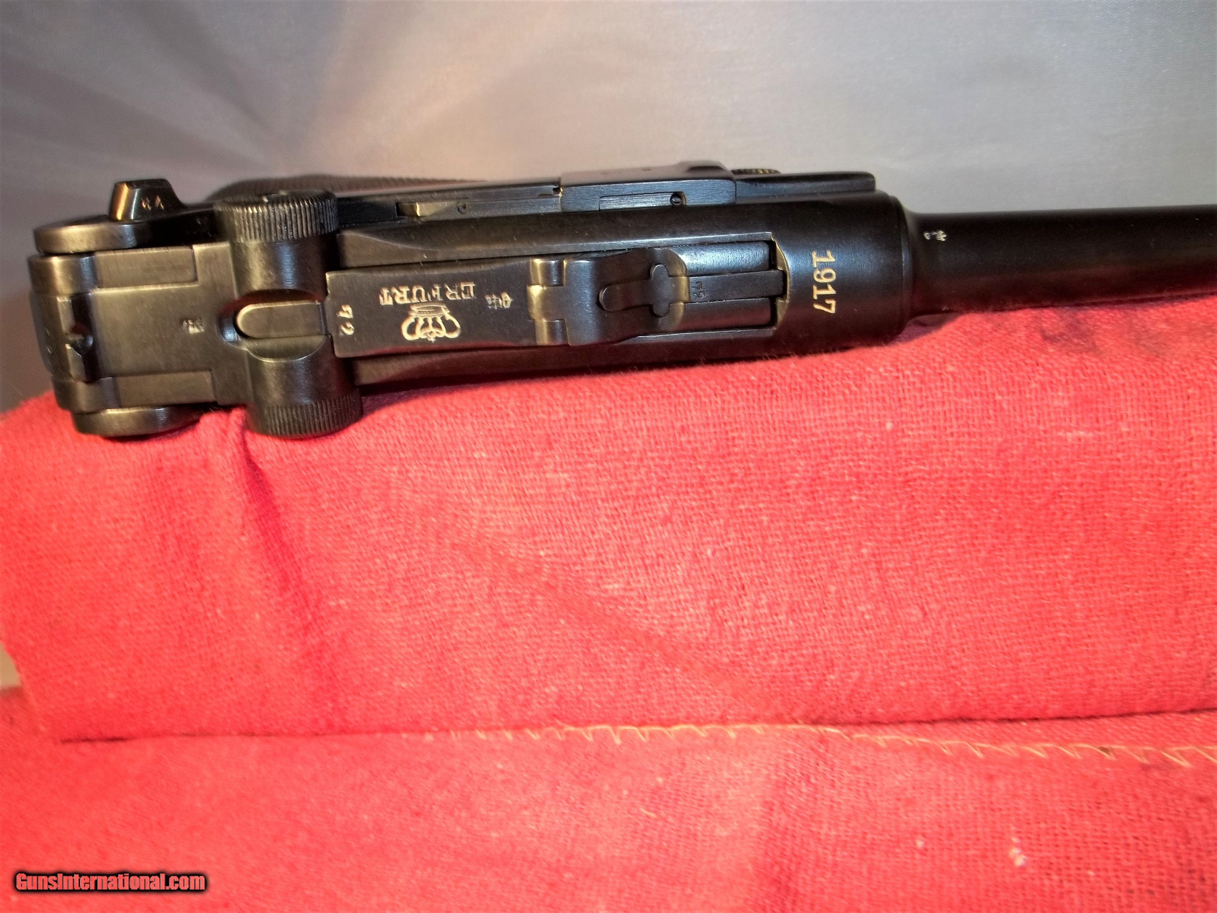 Description: 1917 Erfurt Luger...9mm...4 Inch Barrel...98% rated NRA Excellent...Nice Rust Blue Finish...90-95% Straw...Matching numbers including" Schmigisser" Metal Bottom Magazine...Personal Check or Money Order...Layaway Available....shipping and Insurance $ 35.00 SOLD Curio/Relic: Yes |