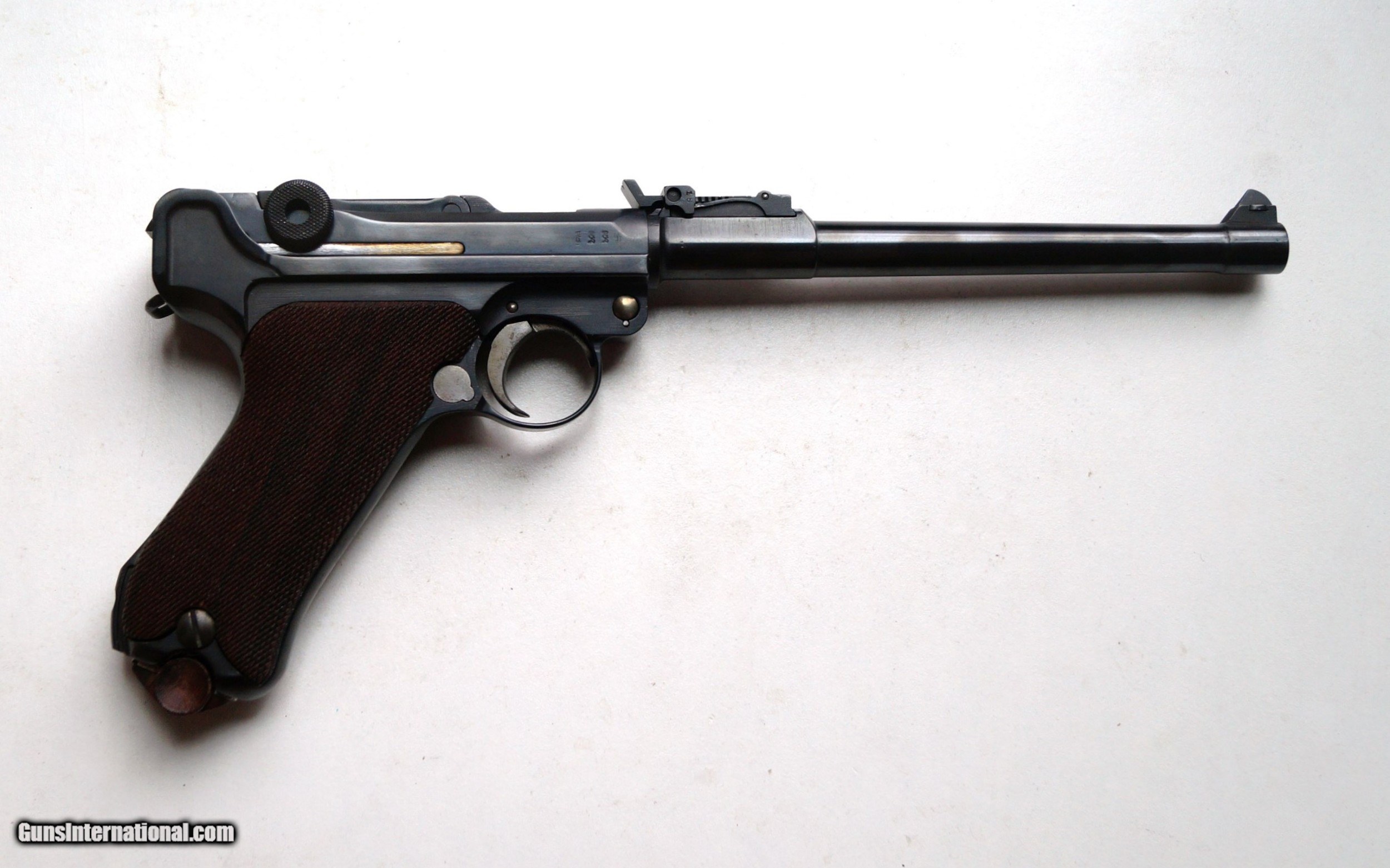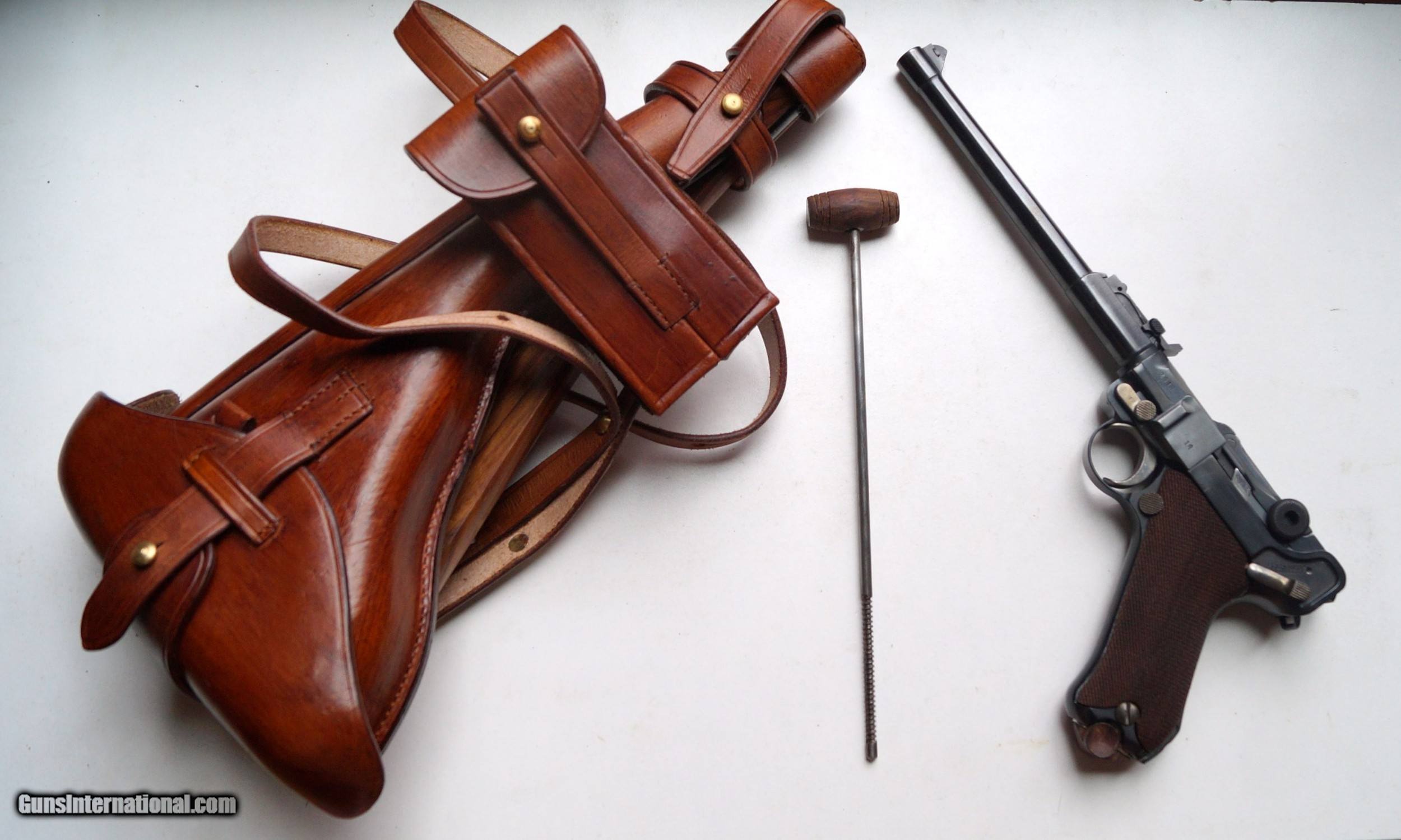 Description: THIS IS A 1918 DWM MILITARY ARTILLERY RIG, 9MM. THE LUGER IS IN COLLECTOR CONDITION. IT HAS BEEN PROFESSIONALLY RESTORED USING ITS ORIGINAL PARTS, NUMBER MATCHING VERY GOOD BORE AND GRIPS, MECHANICALLY CORRECT AND TIGHT. THE RIG CONSISTS OF THE LUGER, A REPRODUCTION ARTILLERY HOLSTER (THE BEST THAT I HAVE SEEN) THAT CONTAINS A WOODEN STOCK (THAT FITS AND LOCKS ONTO THE GUN), 1 CLEANING ROD AND 1 TAKE DOWN TOOL. IT WOULD BE HARD TO FIND A NICER WWI ARTILLERY LUGER RIG THAN THIS. SOLD Curio/Relic: Yes |