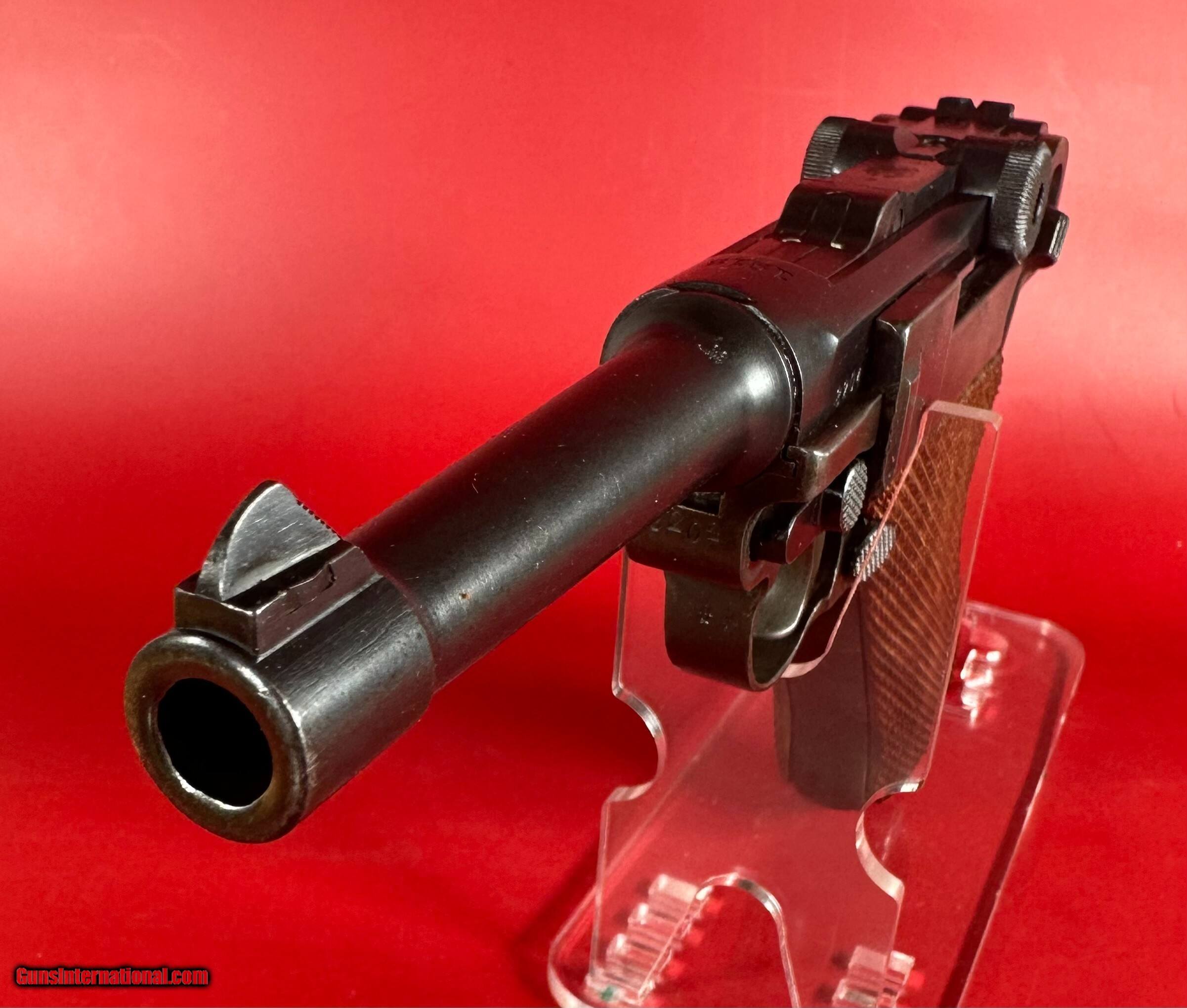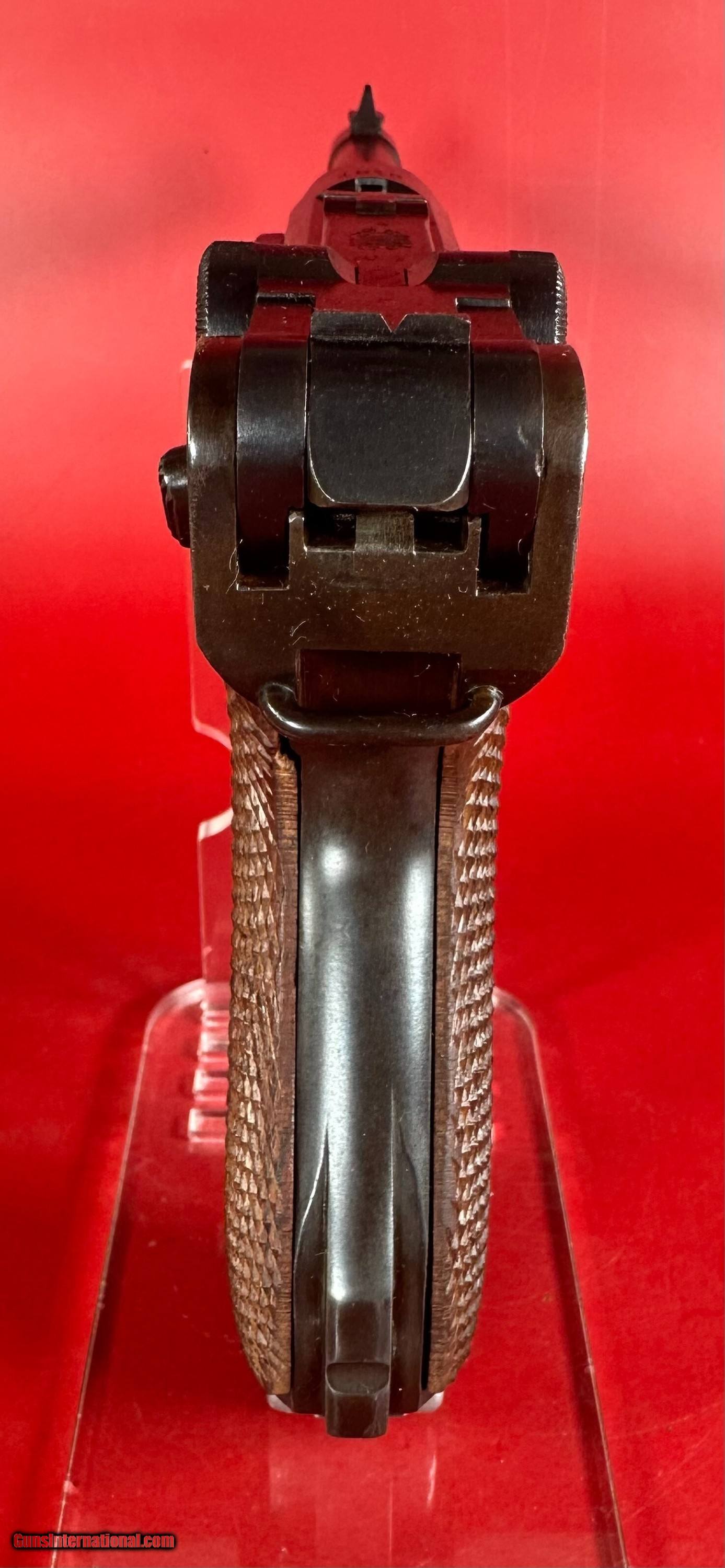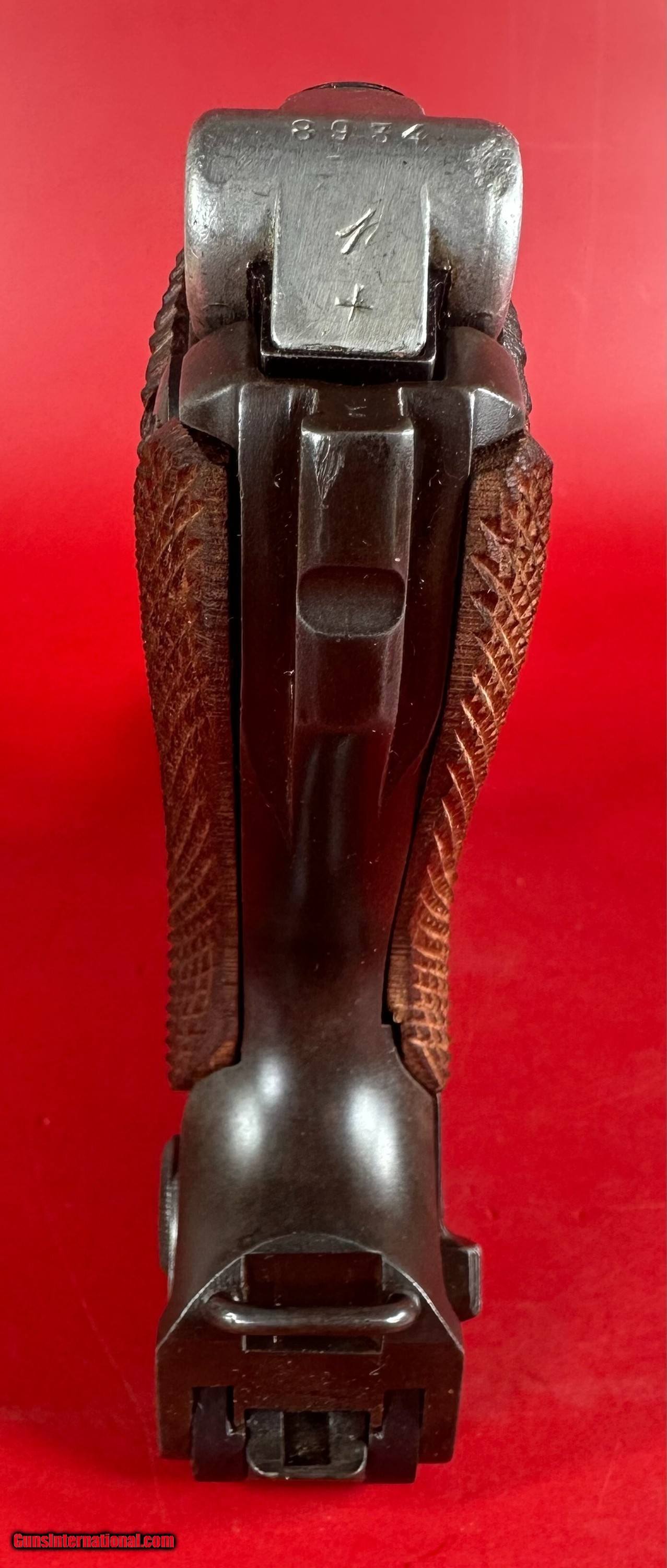 Description: For sale an iconic semi automatic pistol 1918 DWM P08 Luger. This is war (WW1 WWI) production and Army proofed. The example is in excellent condition. Sale includes one magazine and luger tool. Shiny bore with strong rifling. Metal finish is about 98%, wood grips are 99%. Action functions the way it should. All visible numbers, except magazine are matching. This gun will make a great addition to any collection. Specifications Model: P.08 Luger ( P08, P 08, P-08, P.08 DWM) Caliber: 9 mm Capacity: 8+1 Barrel Length: 4" Stock/Grips: Checkered wood grips Sight/Optic: Rear V notch groove, Front blade Magazines Included: 1x 8rd mag Layaway and payment plan are available. Handgun Caliber: 9x19mm Parabellum (9mm Luger, 9x19mm NATO) Price: $1,999.00 Shipping: $39.00 Contact Seller |