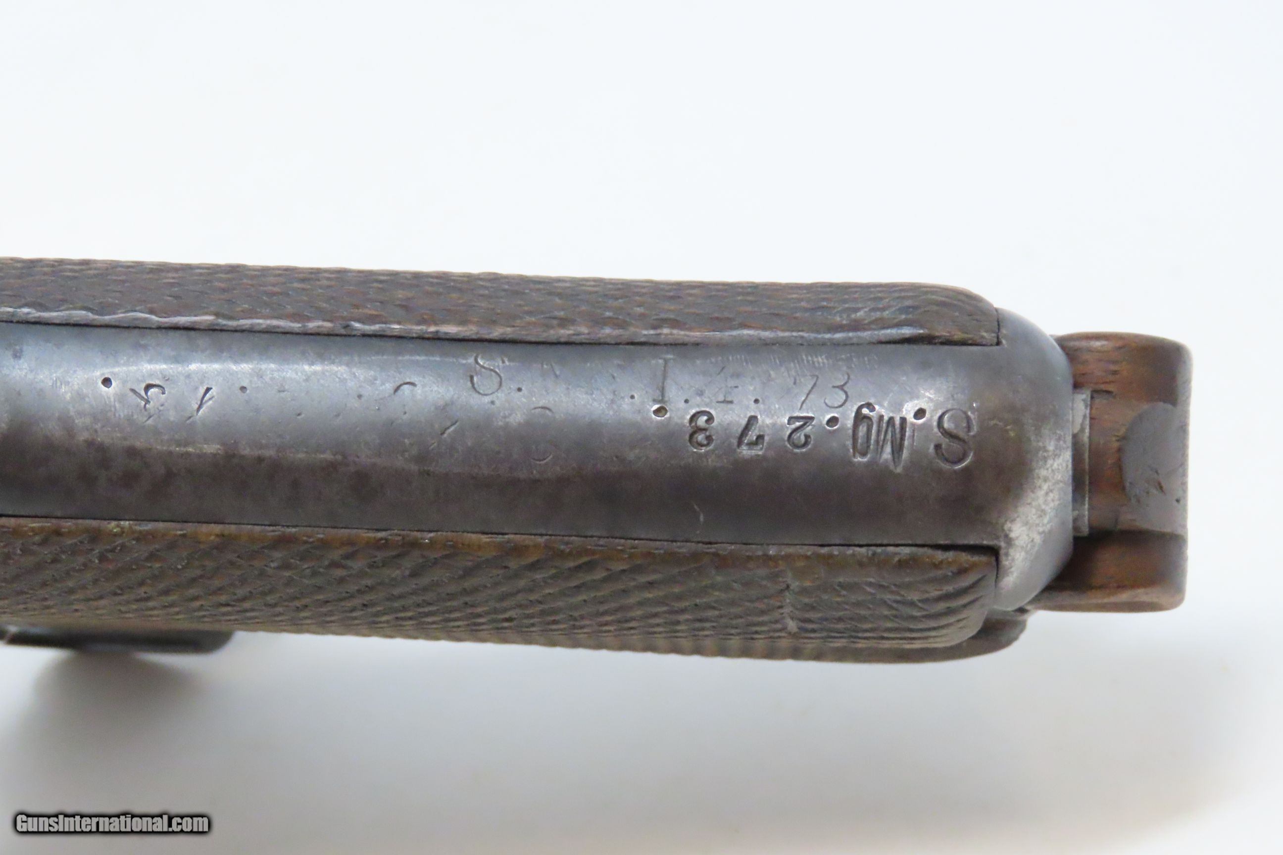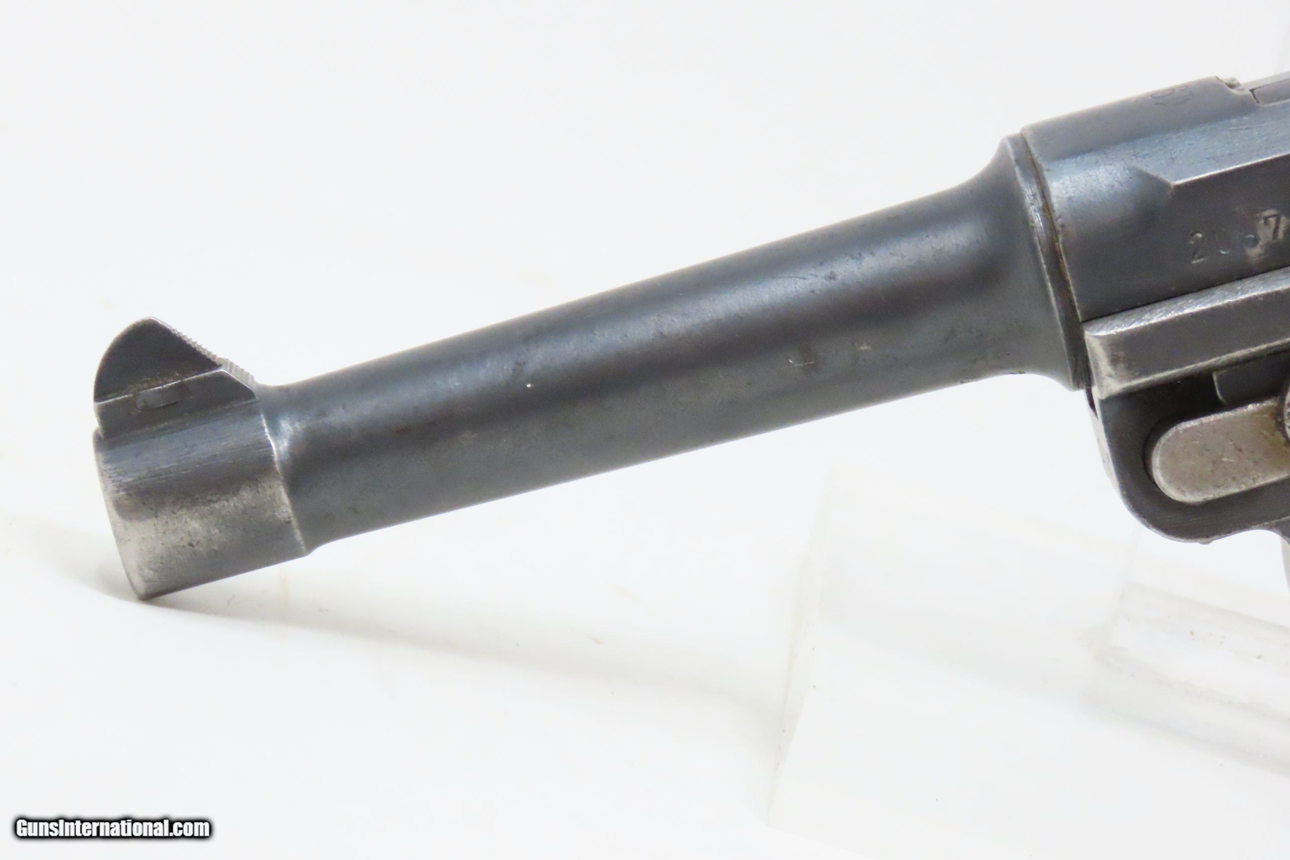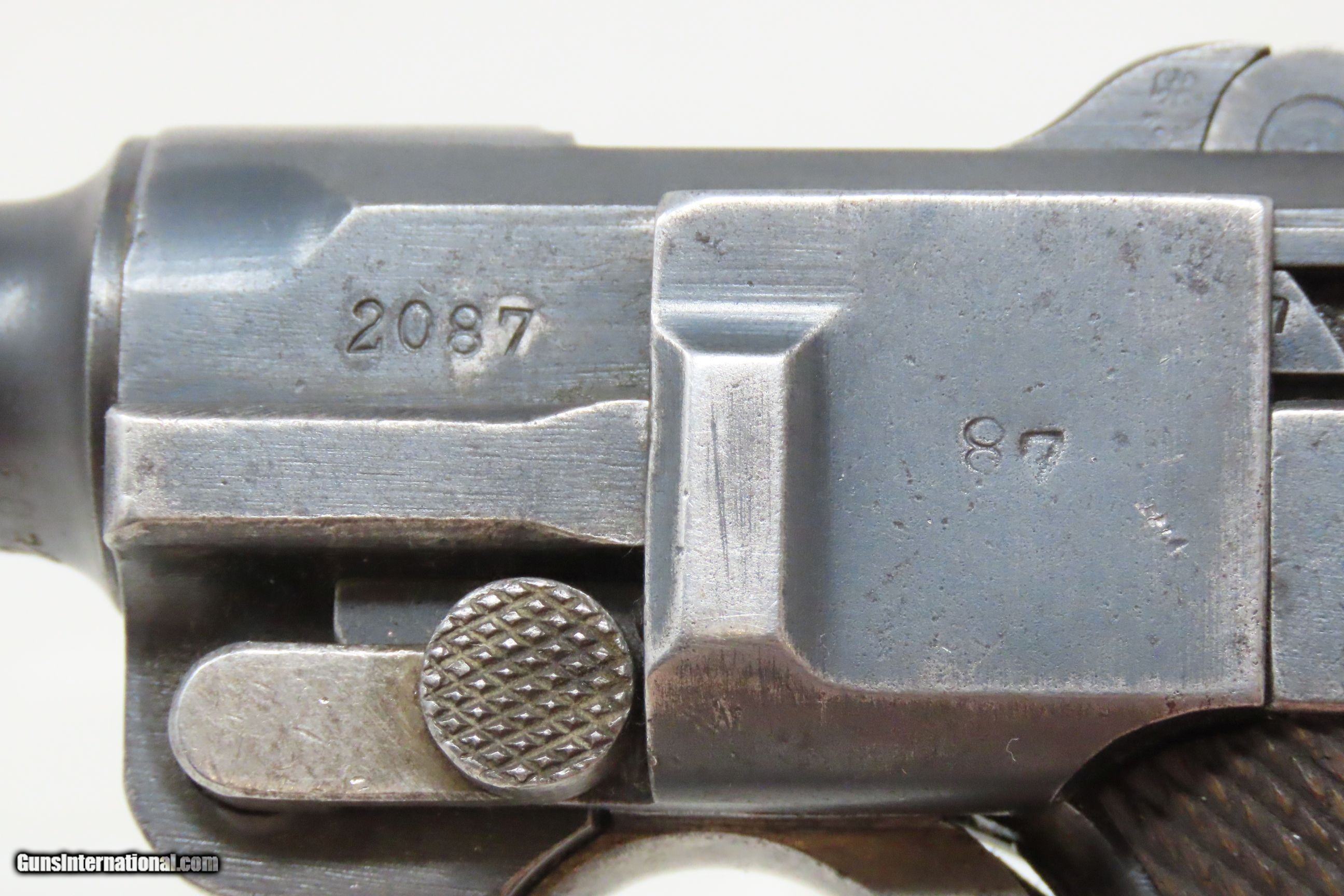 Description: 1920 Dated German Magdeburg Schutzpolizei POLICE LUGER P.08 9mm PISTOL C&R Post-Great War WEIMAR ERA GERMAN POLICE Sidearm Here we present a C&R Post-World War I Dated German DWM (Deutsche Waffen-und Munitionsfabriken) Pistole Parabellum P.08 Military Luger Pistol, likely manufactured circa 1920 in Berlin, Germany. Basing his design off Hugo Borchardt’s seminal C93, Georg Luger successfully brought Borchardt’s work to practical and productive fruition. While finding buyers for the C93 seemed an exercise in futility, the new Luger Pistol found many countries eager to test it and even adopt it. There are many variations in this field of collecting, but relatively few major changes in overall design from beginning to end. The Luger is certainly one of the most iconic firearms in history, made so by its association with being carried by German troops during both World Wars and is perhaps the most associated with those events. The right side of the barrel extension has the three Imperial Eagle proofs. This example is police marked “S.Mg.273.” for the Schutzpolizei of the Magdeburg District. Other markings appear faint and were effaced so the police marking would show without confusion. The overall condition is good. Original blue finish. The action is excellent. The bore is bright with strong rifling. Grips show wear and remain solid. Numbers match: restamped on the magazine base plate. This firearm is classified as a Curio & Relic. Barrel is 4 inches. Caliber: 9x19mm Luger Overall condition as seen in photos. Very Fast. Very Safe. FREE SHIPPING. Will need to be sent to your local FFL or C&R licensee. This firearm is classified as a Curio & Relic. Guaranteed AUTHENTIC & Includes CERTIFICATE OF AUTHENTICITY. ancestryguns $2250 #230491 SOLD Curio/Relic: Yes |
