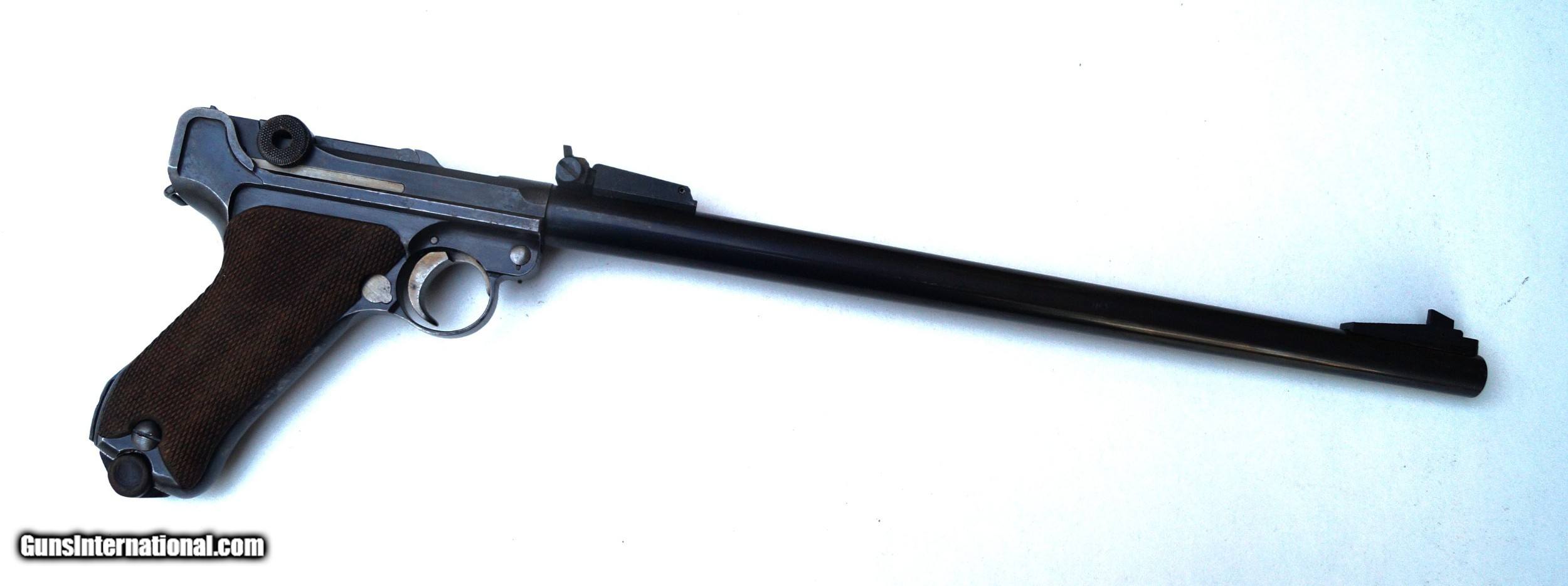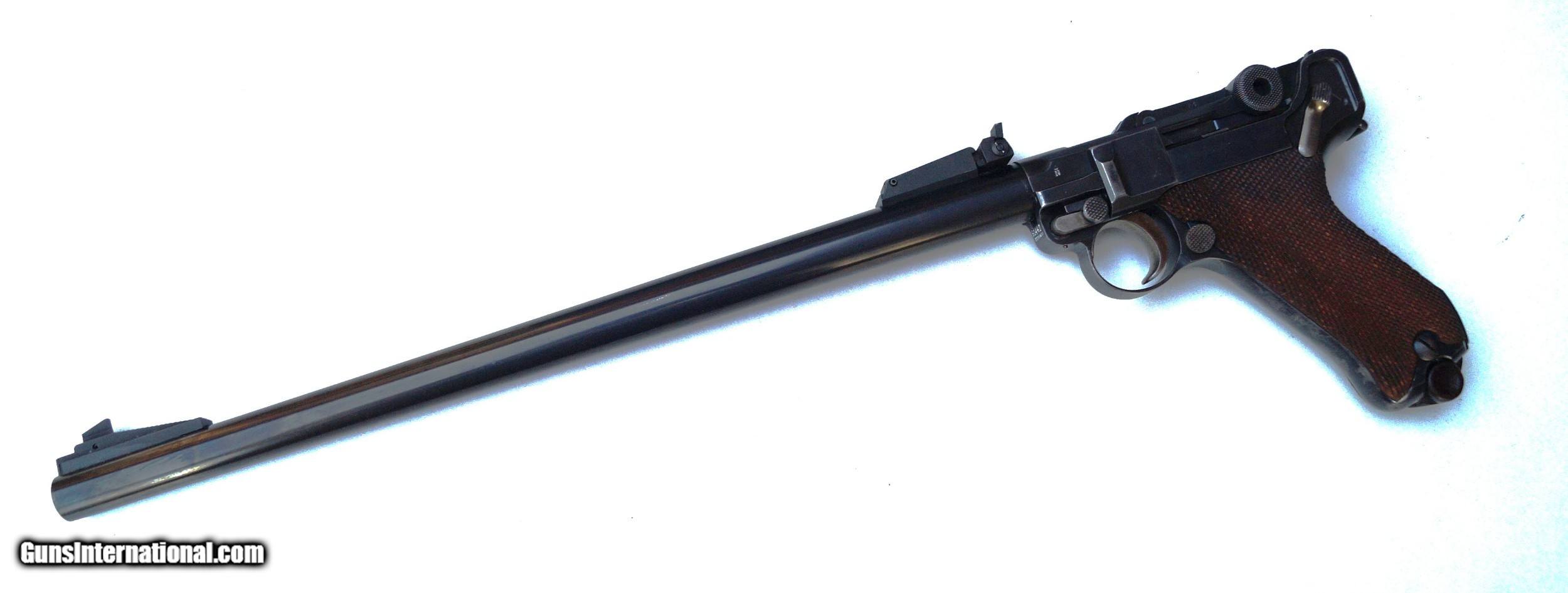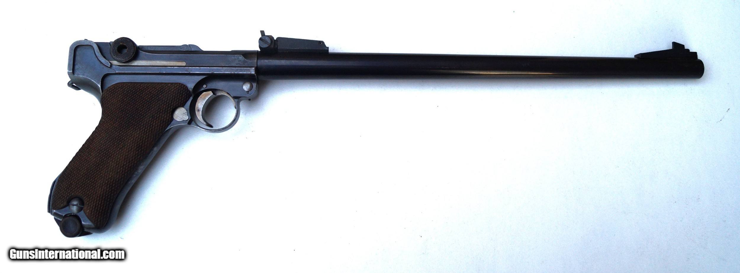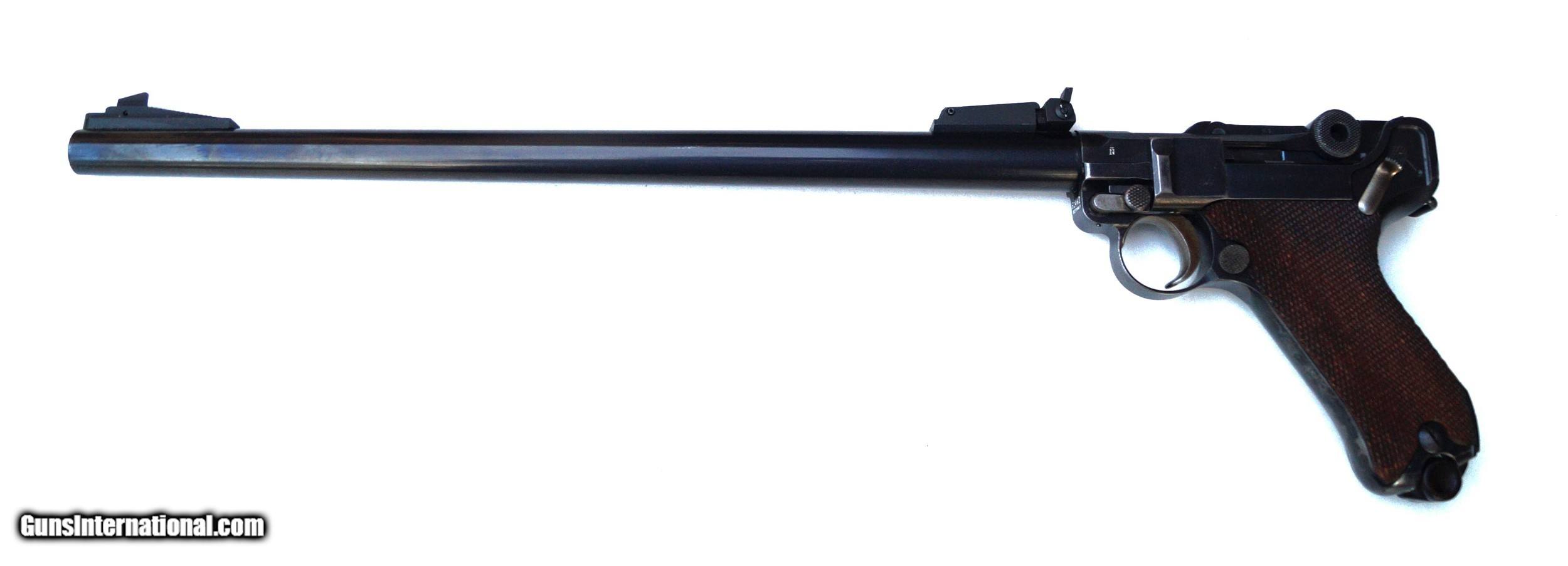 Description: THIS IS A 1920 DWM LONG BARREL COMMERCIAL GERMAN LUGER, 9MM. THE LUGER IS IN VERY GOOD CONDITION. ALL ORIGINAL, NUMBER MATCHING, VERY GOOD BORE AND GRIPS, MECHANICALLY CORRECT ( THE GUN WILL SHOOT ). THIS IS A VERY RARE FIND. THE BARREL LENGTH IS 13 1/2". A MUST GUN FOR THE GERMAN LUGER COLLECTOR. SOLD Curio/Relic: Yes |