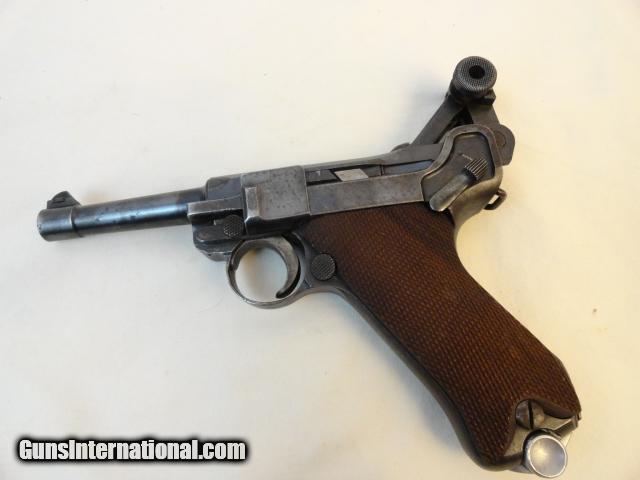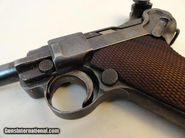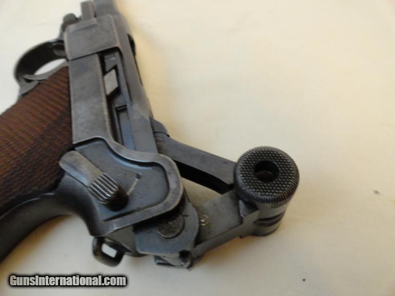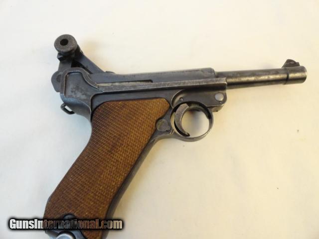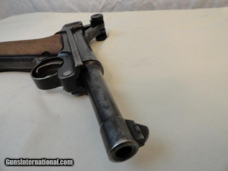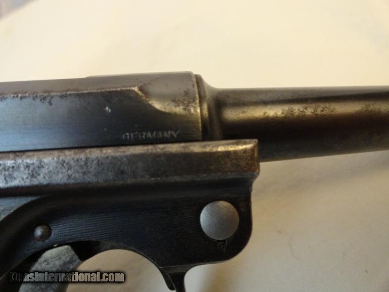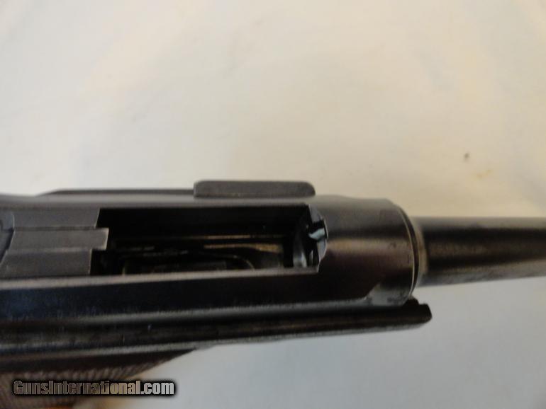 Sold commercially after the war. This is a standard .30 caliber Luger. It retains 85% original factory blue with most wear to the high spots from a holster. Bore is excellent. Works fine. All matching numbers including the clip.