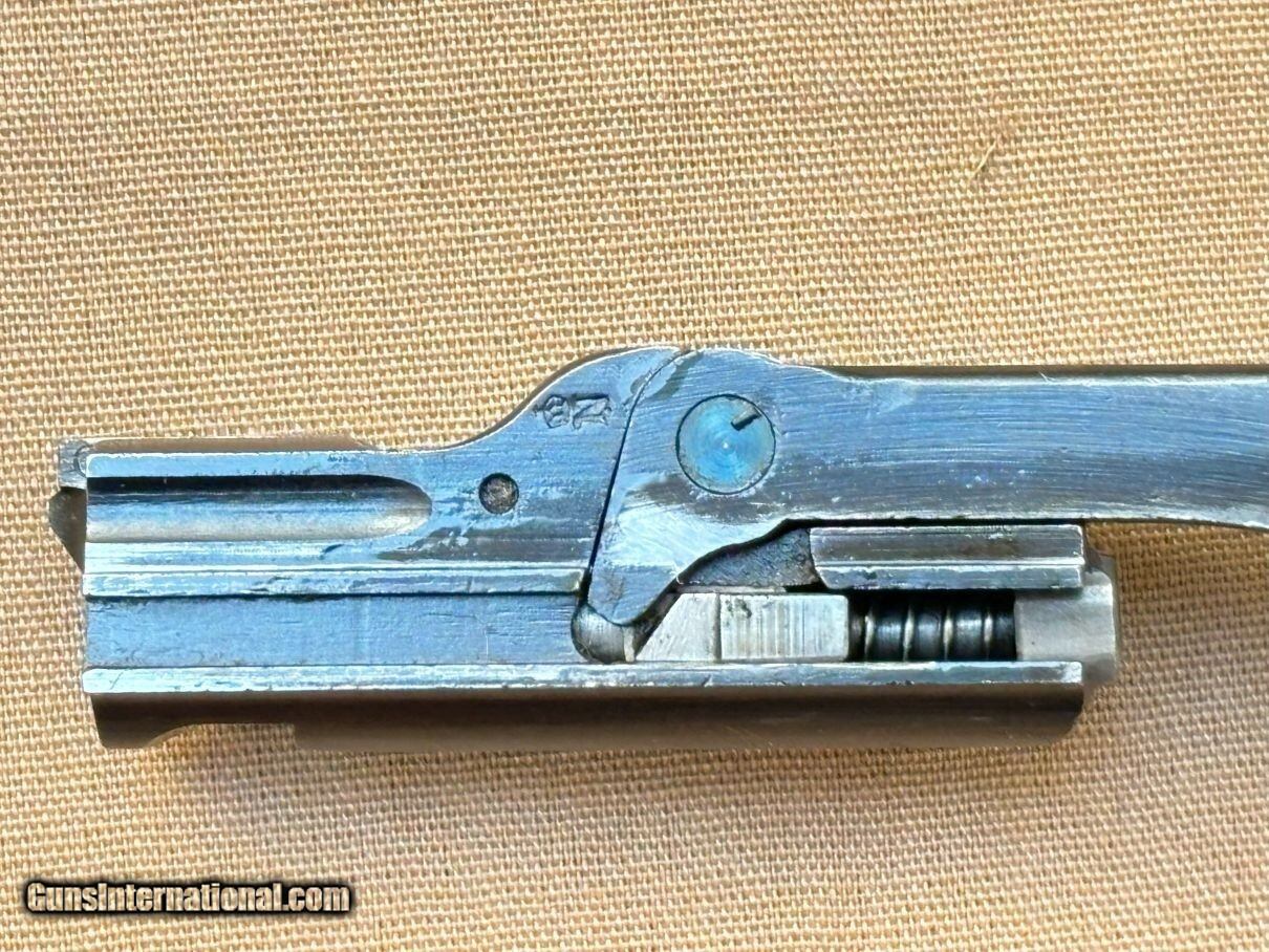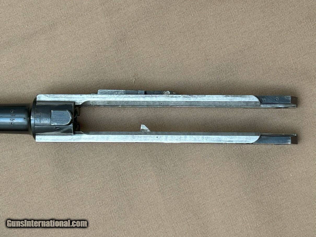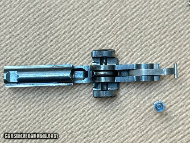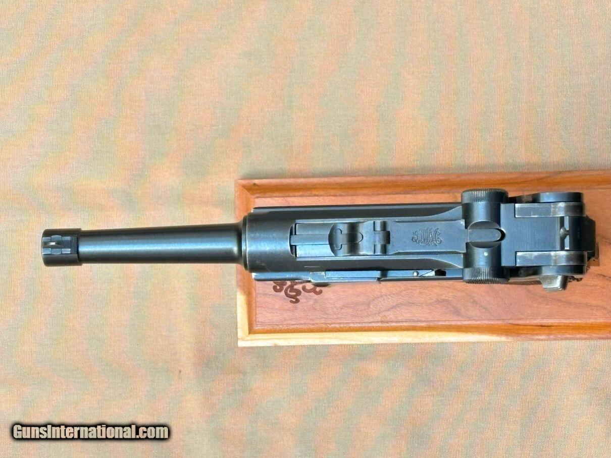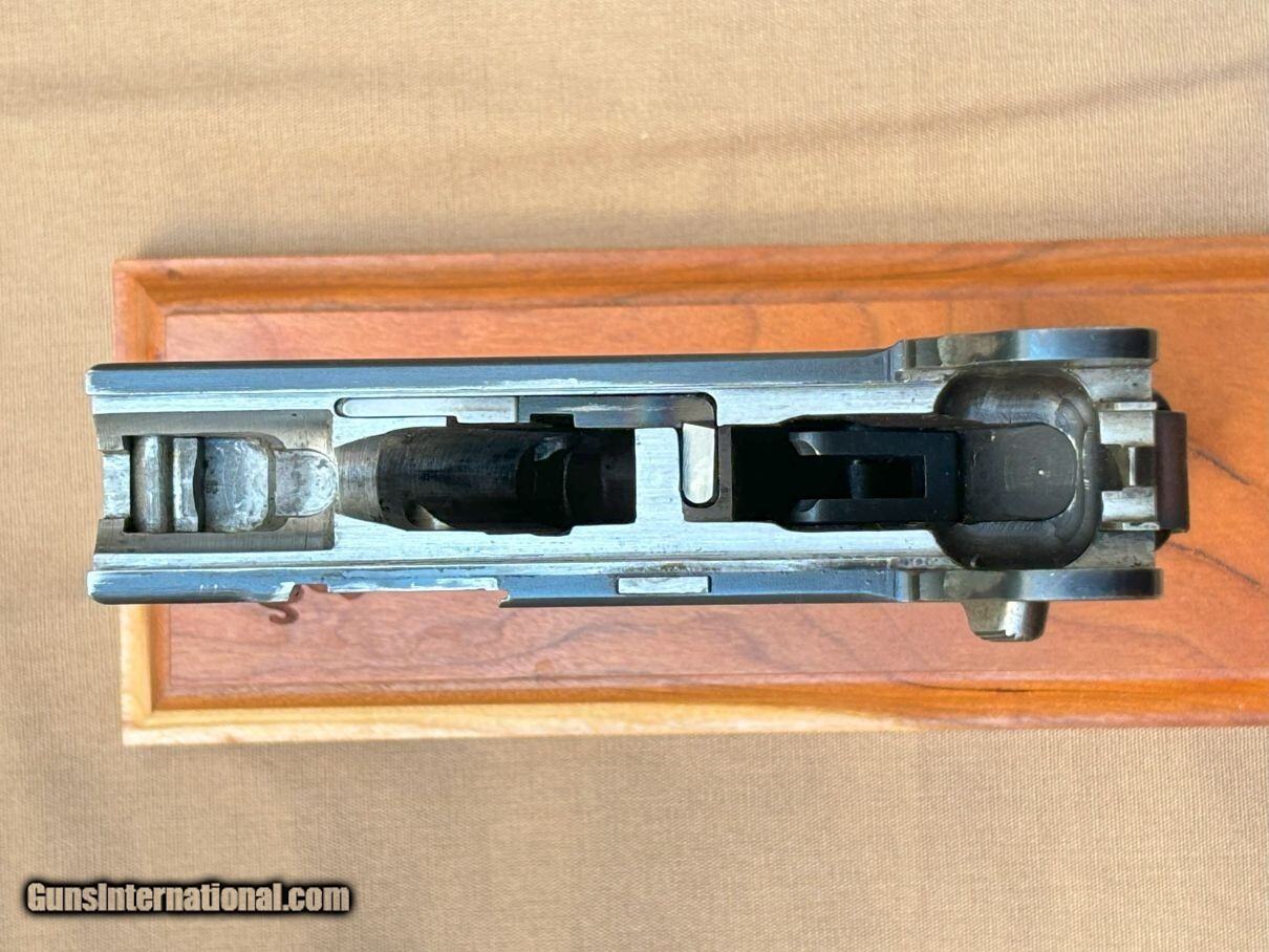 Description: Offered for sale is one (1) 1929 DWM Police Luger s/n 7467t. The DWM-BKIW post-war Luger production was from 1919-1930. In 1929, the "Alphabet DWM" as it is sometimes referred to as, produced the "s-t-u" block of guns. This production block was mostly police production with the E/WaA66 stamp on the right side of the slide extension, which s/n7467t has . This example has all matching serials stamped in the commercial manner, including one original serial matching Police marked wood base magazine, the front grip marked with a Prussian District Police Landjagerei, "L.Ka. 134" with halos which means it was stamped after finish and has not been refinished thereafter. Halos are also present on underside matching barrel serial number Blue and straw finish are both original, blue has the police sear safety intact with the magazine safety removed. Left grip has a small repair to the upper left corner just above the mag release button. This was where the mag safety came out from underneath the grip. (Often, this small area will be seen broken away, and not repaired). This Police Luger has that small area of checkered wood restored. Bore rates 8.5/10, grips are not numbered as is the firing pin which is correct, blue rates 94-95% with normal edge wear, straw 80-85% with most color gone from safety lever, but trigger, take down lever, and ejector have strong remaining color. Hold open works perfectly. $2450 shipped, Lower 48 states USA. Payment accepted is USPS Money Order or Personal Check, will hold to clears. I ship thru a local dealer, once payment clears, they will contact your FFL dealer for a copy of their license. Curio/Relic: Yes Handgun Caliber: 9x19mm Parabellum (9mm Luger, 9x19mm NATO) Manufacturer: DWM Serial Number: 7467t Metal Condition: 93-94% Bore Condition: 8.5/10 Price: $2,450.00 Buy Now Contact Seller |