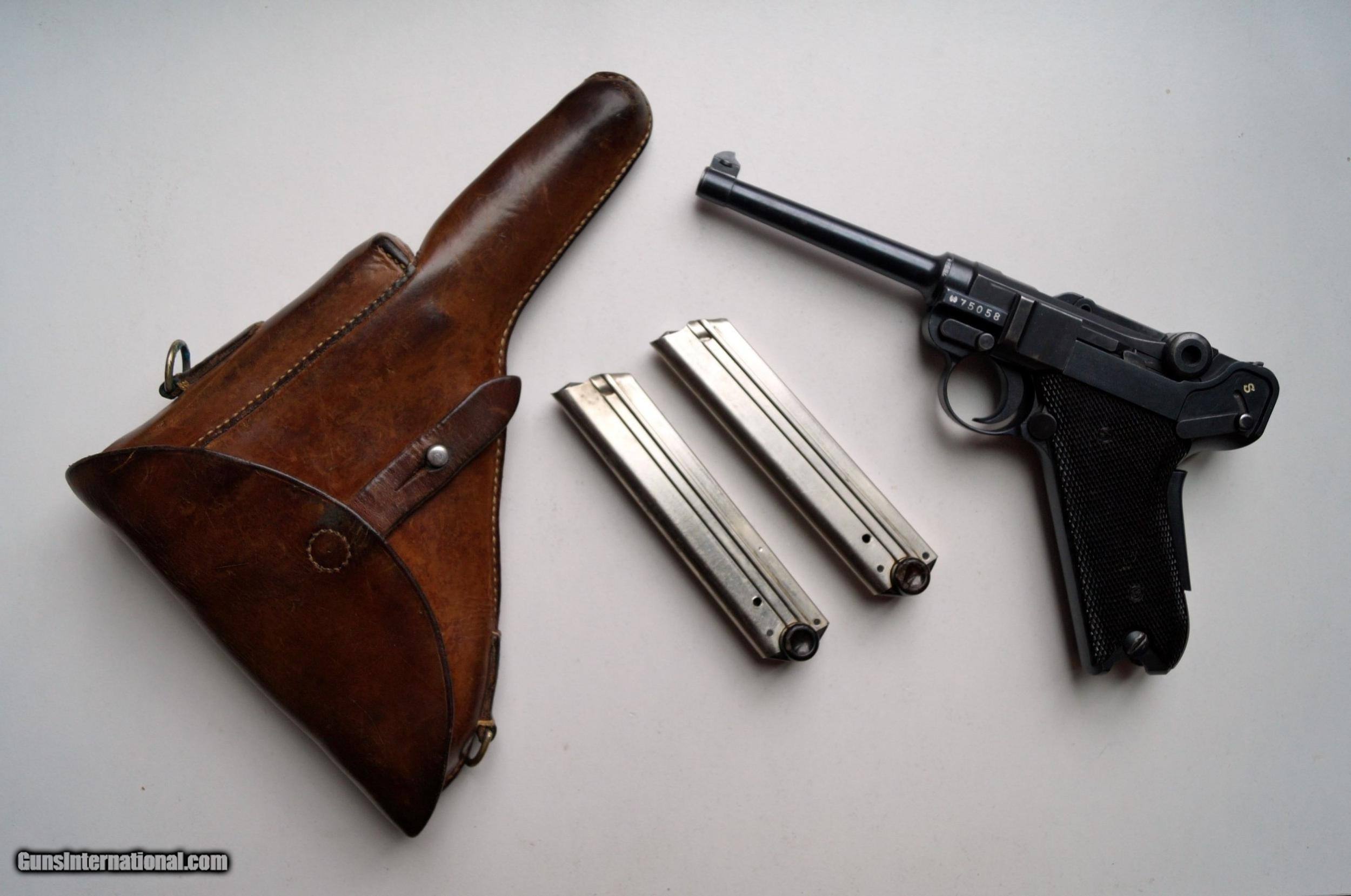 Description: THIS IS A SWISS BERN 1929 RIG, 7.65MM. THE LUGER IS IN VERY GOOD CONDITION, ALL ORIGINAL, NUMBER MATCHING, VERY GOOD BORE AND GRIPS, MECHANICALLY CORRECT. THE RIG CONSISTS OF THE LUGER, 2 ORIGINAL SWISS MAGAZINES AND 1 ORIGINAL SWISS HOLSTER. A VERY NICE SWISS BERN RIG. NOTE: THE RIG ALSO COMES WITH AN ORIGINAL SWISS LUGER CLEANING KIT. SOLD Curio/Relic: Yes |
