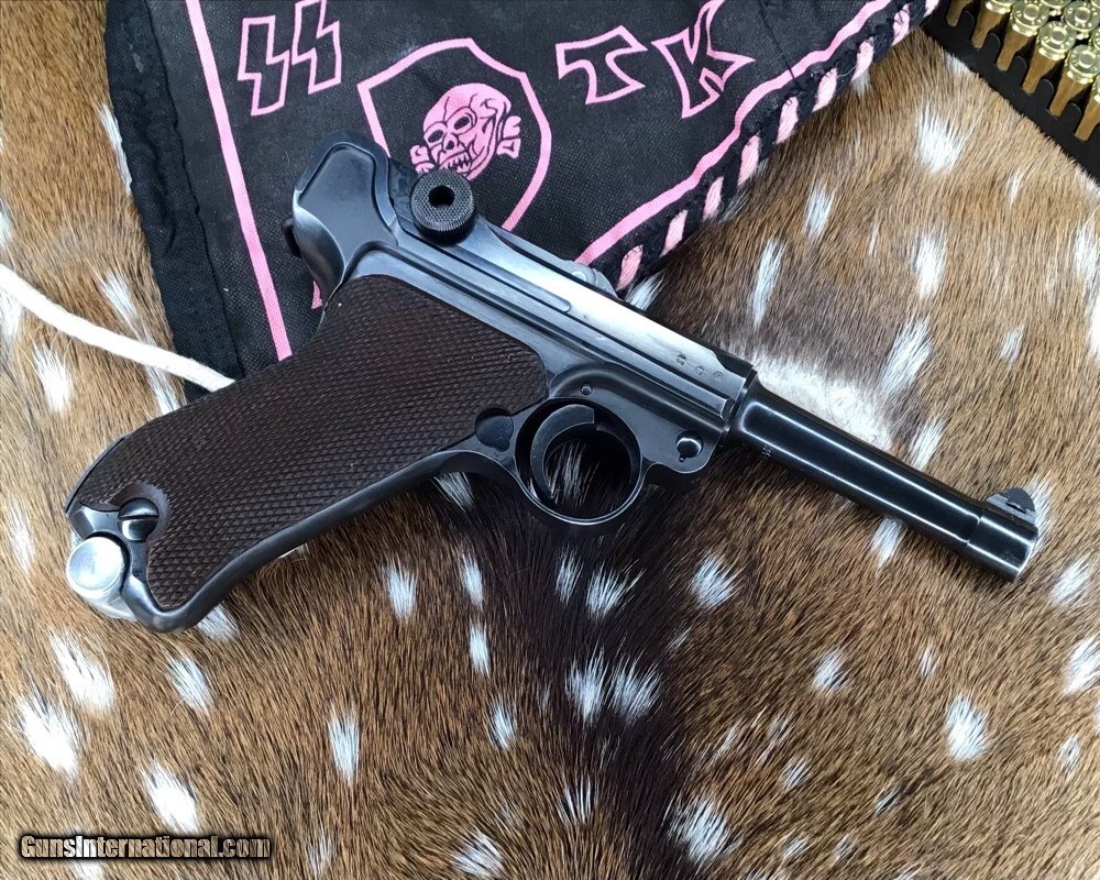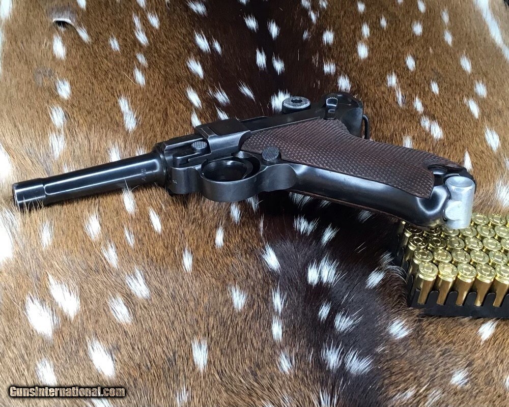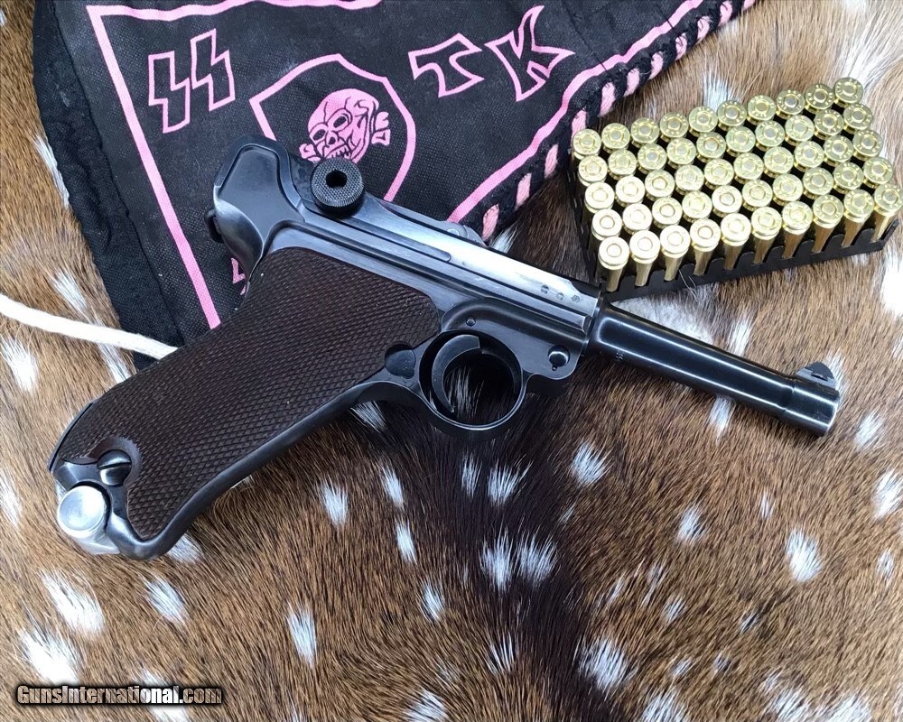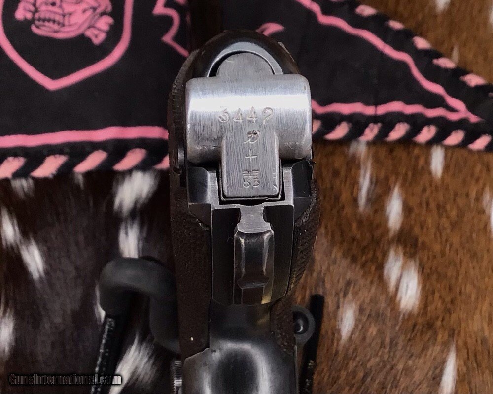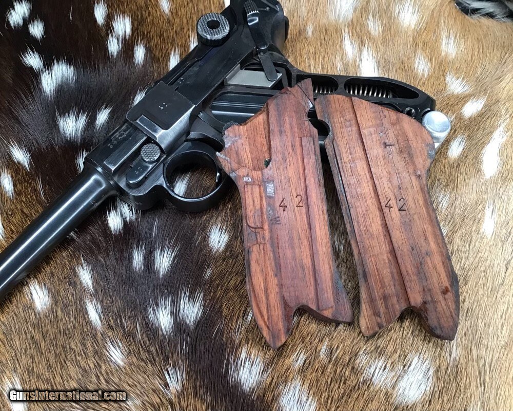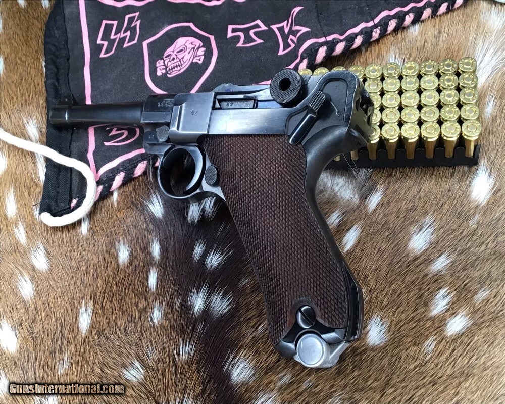 Description: 1937 WWII GERMAN MAUSER S/42 MODEL P.08 9mm PISTOL | 1937 German Mauser S/42 Model P.08 9x19mm Semi Automatic Pistol. Matching serial stamped on the chamber, barrel, frame, toggle, magazine,grips and small components Chamber is stamped "1937". The toggle is stamped "S/42". Blued finish. Checkered number match walnut grips. one magazine. Fixed sights. | Caliber / Gauge: 9x19mm | Barrel Length: 3.75" | Serial Number: 3442 . Gorgeous 90% or better condition on a WWII Mauser Luger with all visible numbers matching. God Bless America from a proud American, and a Viet Nam Vet , thankful for our freedoms.. paid for by the Blood ,Sweat and Tears of our brave men and women in uniform. Ten Below Firearms is a Veteran owned and operated business. We specialize in out of production models of high quality firearms. We love to ship! If you are out of state or can't make it to our store, just give us a call! Handguns normally ship for $30 and Long guns for $40 to $65 for extra length long guns. That's 2-3 day USPS Priority shipping, Delivery conformation and with tracking number. Optional Postal insurance is additional $1.70 per $100 and highly recommended. SOLD Curio/Relic: Yes Handgun Caliber: 9x19mm Parabellum (9mm Luger, 9x19mm NATO) Manufacturer: Mauser Model: P08 Luger Serial Number: 3442 Barrel Length: 3.75 inch Condition: 90% or better Metal Condition: Very good Wood Condition: Very good Bore Condition: Very good Action: Semi- Auto Finish: Blued Sights: Fixed Manufacture Date: 1937 Item Location: Mn |