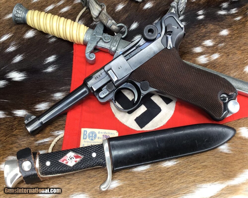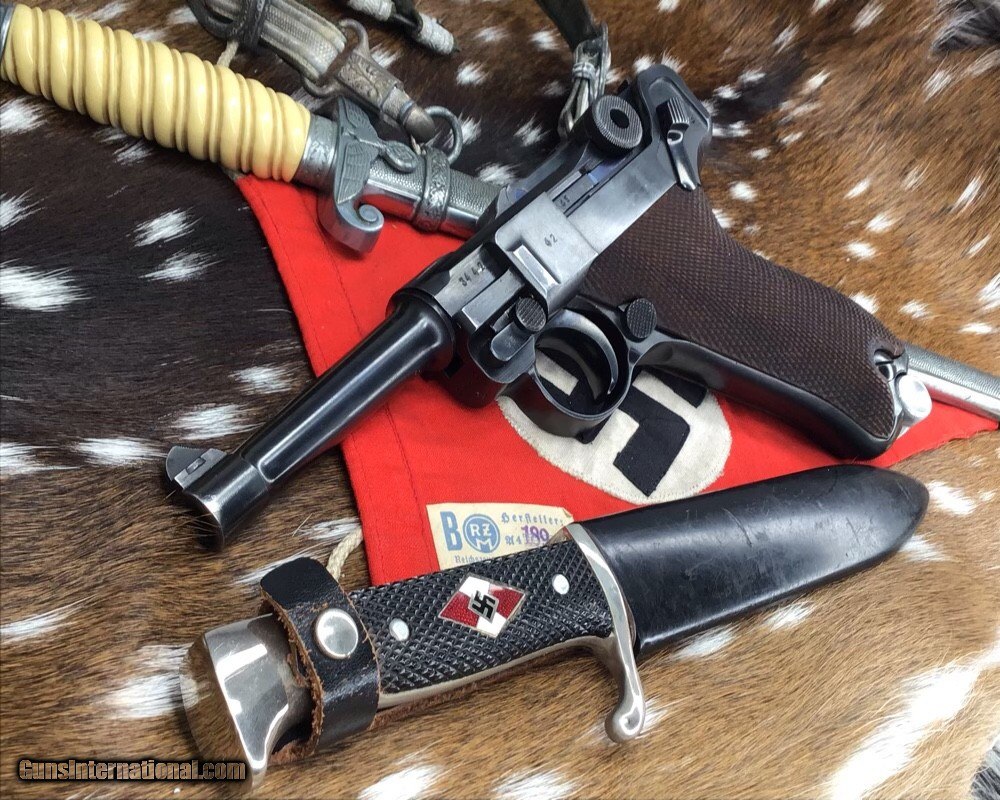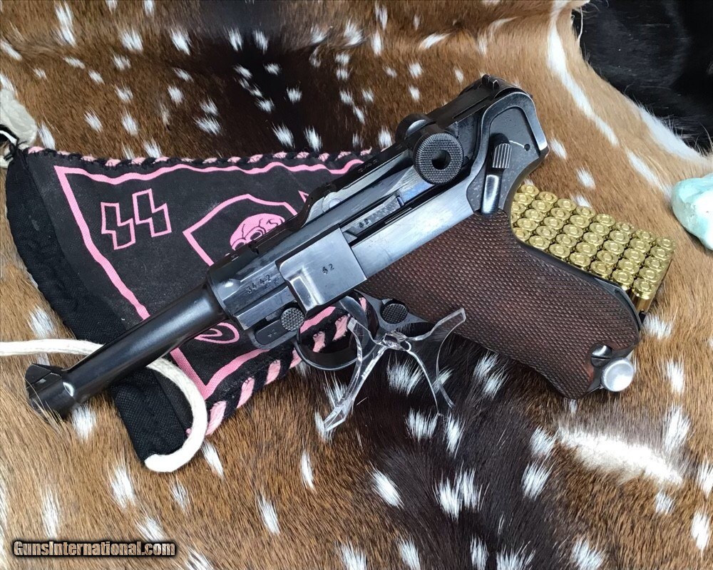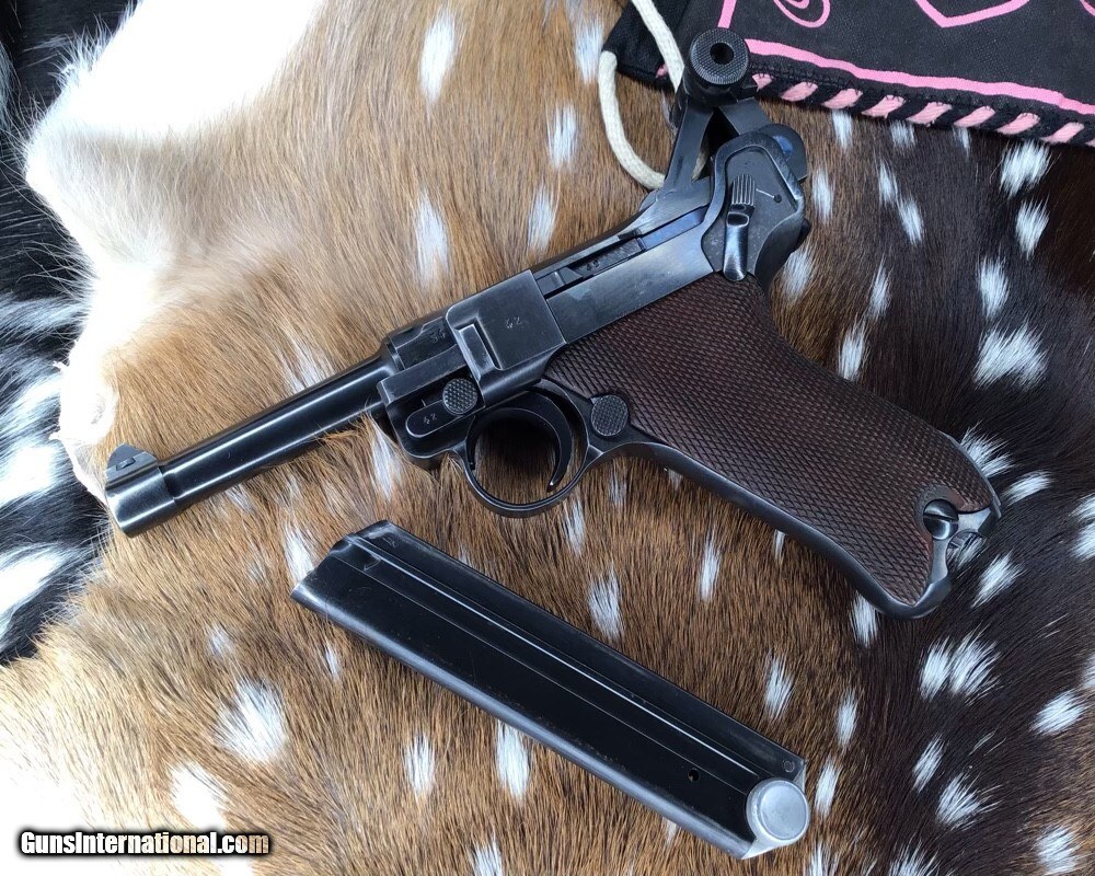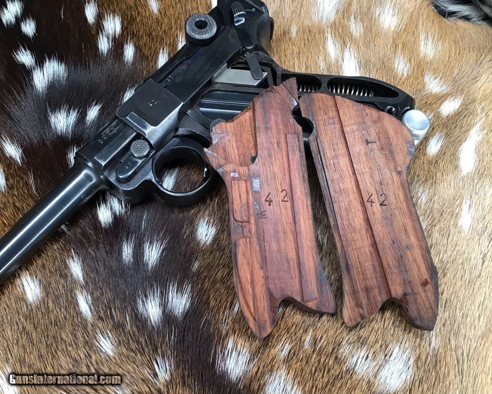 Description: 1937 WWII GERMAN MAUSER S/42 MODEL P.08 9mm PISTOL | 1937 German Mauser S/42 Model P.08 9x19mm Semi Automatic Pistol. Matching serial stamped on the chamber, barrel, frame, toggle, magazine,grips and small components Chamber is stamped "1937". The toggle is stamped "S/42". Blued finish. Checkered number match walnut grips. one magazine. Fixed sights. | Caliber / Gauge: 9x19mm | Barrel Length: 3.75" | Serial Number: 3442 . Gorgeous 90% or better condition on a WWII Mauser Luger with all visible numbers matching. God Bless America from a proud American, and a Viet Nam Vet , thankful for our freedoms.. paid for by the Blood ,Sweat and Tears of our brave men and women in uniform. Ten Below Firearms is a Veteran owned and operated business. We specialize in out of production models of high quality firearms. We love to ship! If you are out of state or can't make it to our store, just give us a call! Handguns normally ship for $30 and Long guns for $40 to $65 for extra length long guns. That's 2-3 day USPS Priority shipping, Delivery conformation and with tracking number. Optional Postal insurance is additional $1.70 per $100 and highly recommended. SOLD Curio/Relic: Yes Handgun Caliber: 9x19mm Parabellum (9mm Luger, 9x19mm NATO) Manufacturer: Mauser Model: P08 Luger Serial Number: 3442 Barrel Length: 3.75 inch Condition: 90% or better Metal Condition: Very good Wood Condition: Very good Bore Condition: Very good Action: Semi- Auto Finish: Blued Sights: Fixed Manufacture Date: 1937 Item Location: Mn |