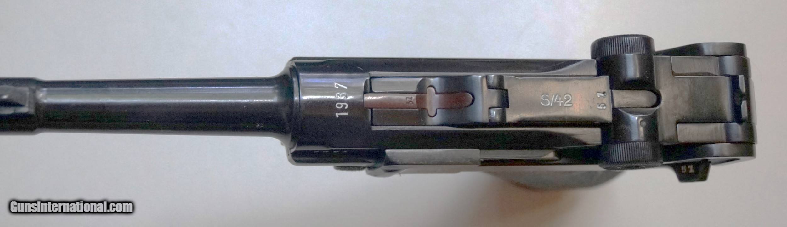 Description: THIS IS A 1937 S/42 (MAUSER) NAZI MILITARY GERMAN LUGER RIG, 9MM. THE LUGER IS IN VERY GOOD CONDITION. ALL ORIGINAL, NUMBER MATCHING INSIDE AND OUT (INCLUDES BOTH GRIPS), VERY GOOD BORE AND GRIPS, MECHANICALLY CORRECT. THE RIG CONSISTS OF THE LUGER, 2 ORIGINAL NAZI MARKED FXO MAGAZINES, ONE ORINGINAL NAZI MARKED HOLSTER AND A LOADING TOOL A VERY NICE WWII NAZI MILITARY GERMAN LUGER RIG. SOLD Curio/Relic: Yes |