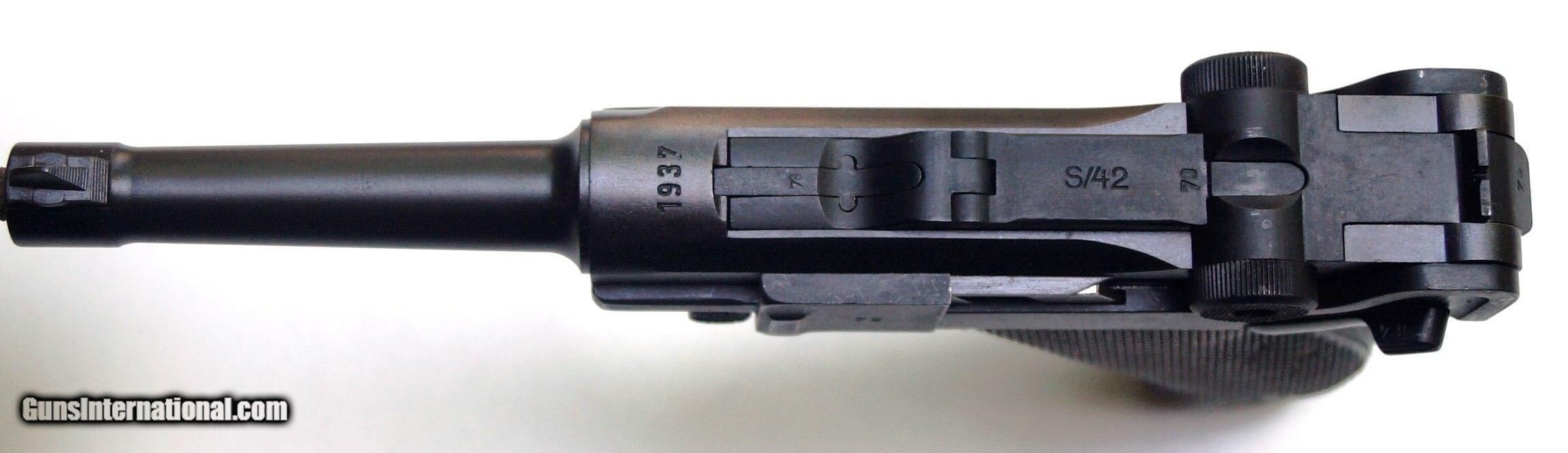 Description: THIS IS A 1937 S/42 (MAUSER) NAZI MILITARY GERMAN LUGER, 9MM. THE LUGER IS IN VERY GOOD CONDITION, NUMBER MATCHING (THIS INCLUDES THE MAGAZINE), VERY GOOD BORE AND GRIPS, MECHANICALLY CORRECT (THE GUN WILL SHOOT). A VERY NICE WWII NAZI MILITARY GERMAN LUGER. SOLD Curio/Relic: Yes |