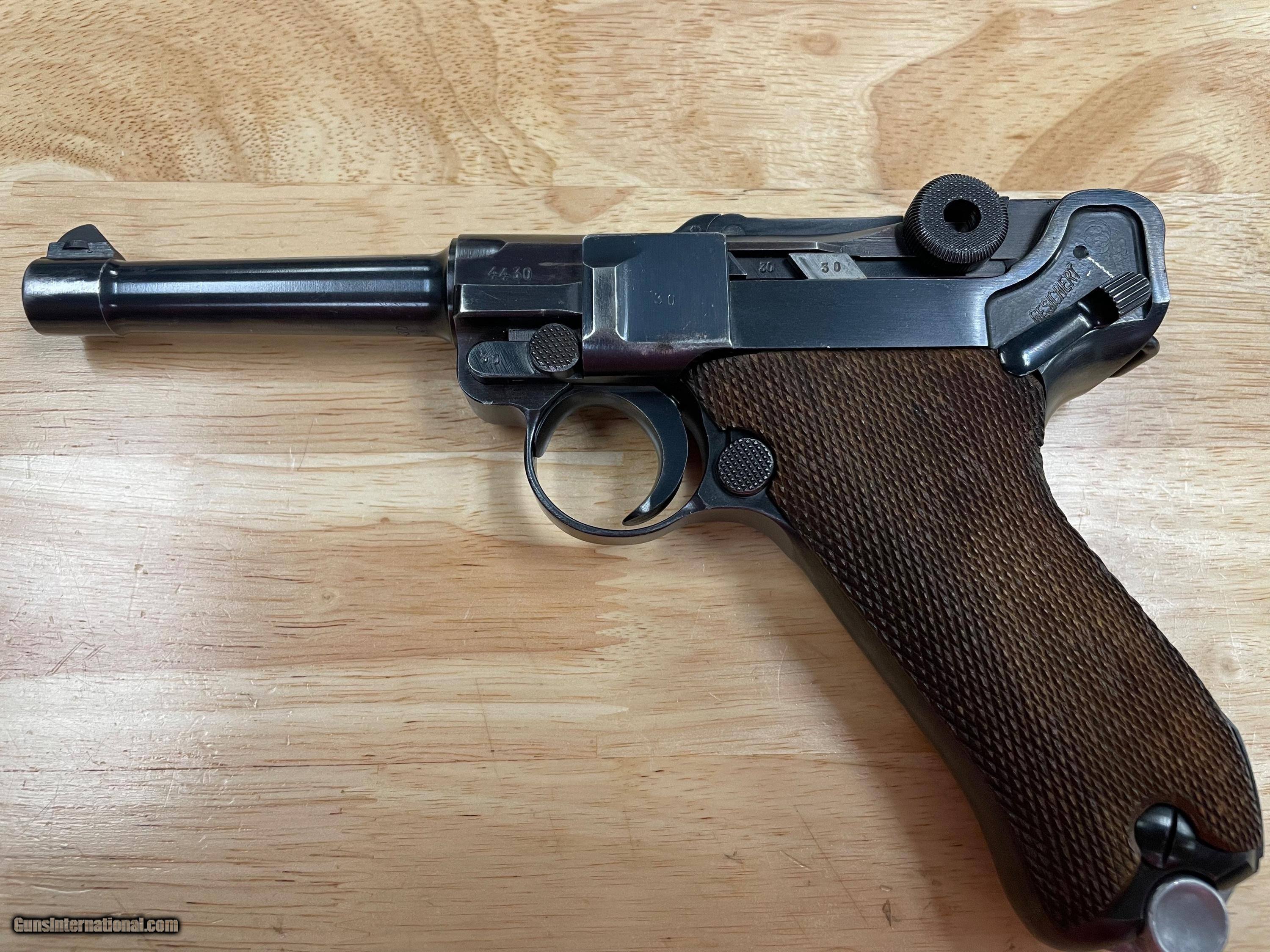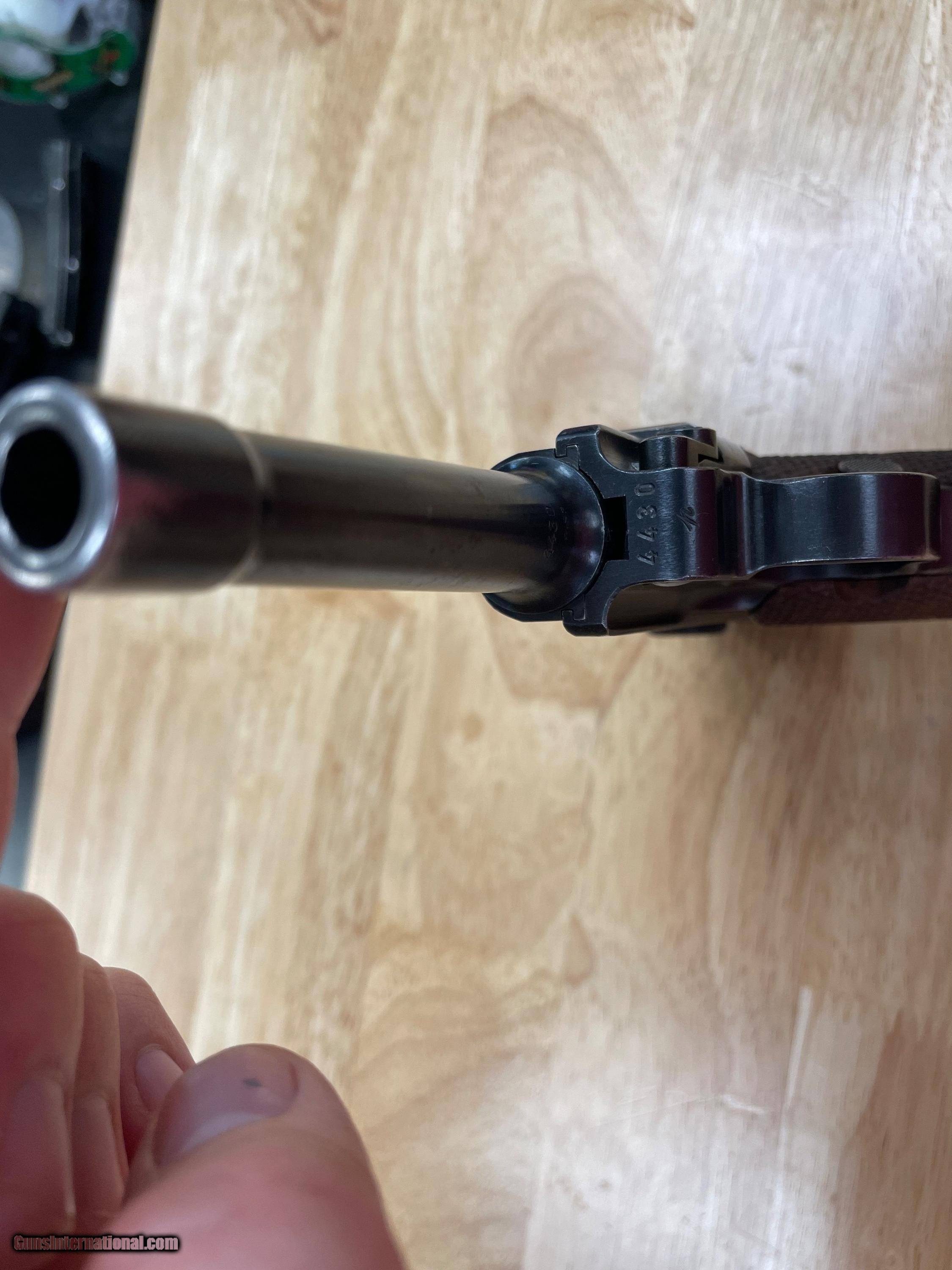Description: 1939 German Luger P08 S/42 code. 4430 serial. WaA64 drapped eagle All matching numbers on it. magazine matches the pistol! very nice piece. some honest holster wear on the high spots. but overall excellent shape. bright shinny bore. Holster is Voegels Köln WaA387 1939 dated. excellent shape. soft leather. no rips or tears. stitching all in tact. take down tool included excellent overal complete rig for the collection. $3100.00 plus actual shipping to your FFL. Mike 607-651-0918 call or text for more info or pics SOLD Curio/Relic: Yes Handgun Caliber: 9x19mm Parabellum (9mm Luger, 9x19mm NATO) |