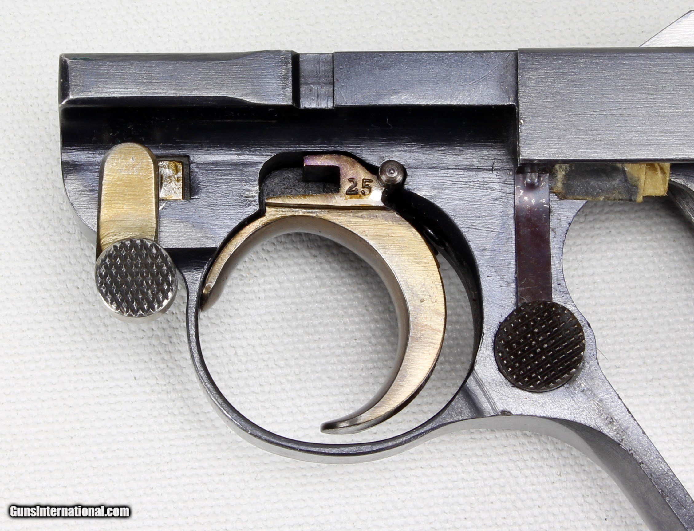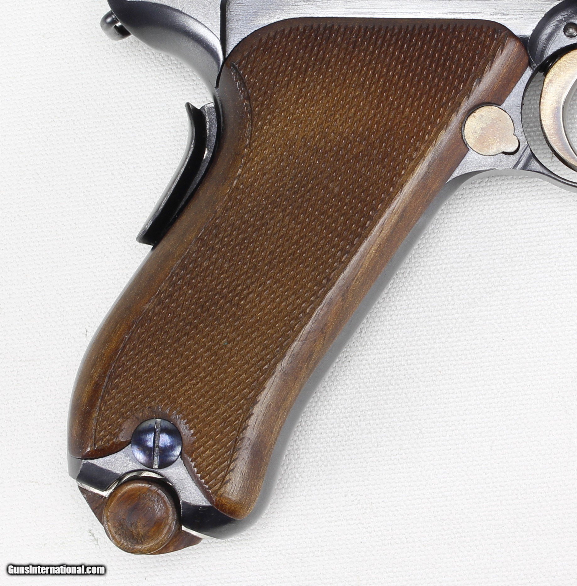 Description: 24/6 SWISS BERN 1906 LUGER, .30LUGER, 7.65MM, 4 3/4" Barrel. Pistol With Original Holster, All Matching Numbers, Excellent Rust Blue W/Beautiful Straw Colors on Trigger, Takedown Lever, Safty and Ejector. Niter Blue on Grip Screws. SN#20225 MFG: 1920. DWM sold the Mfg Rights to the Swiss Government, when they were not allow to manufacture the Luger after WW1, Serial Number Range: 15216 to 33089. This is as nice as you will find. Ships to Lower 48, W/Insurance: $55.00 SOLD Curio/Relic: Yes Manufacturer: SWISS BERN Model: 1906 Serial Number: 20225 Caliber Info: 7.65mm Bore: LNEW Condition: LNEW Metal Condition: LNEW Barrels: 4 3/4 Finish: RUST BLUE |