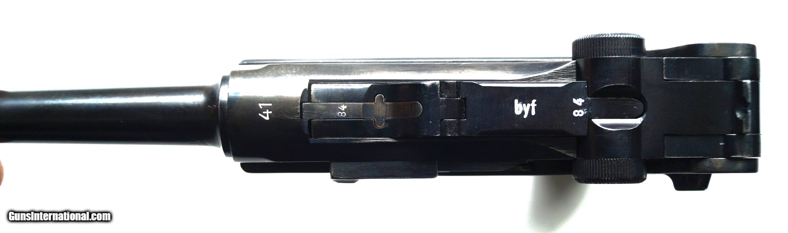 Description: THIS IS A 41 BYF (MAUSER) "BLACK WIDOW" RIG, 9MM. THE LUGER IS IN VERY GOOD CONDITION, ALL ORIGINAL, NUMBER MATCHING, VERY GOOD BORE AND GRIPS, MECHANICALLY CORRECT (THE GUN WILL SHOOT). THE RIG CONSISTS OF THE LUGER, 2 ORIGINAL FXO MAGAZINES, 1 ORIGINAL PROOF MARKED HOLSTER AND 1 ORIGINAL PROOF MARKED LOADING TOOL. THEY DON'T COME BETTER THAN THIS. SOLD Curio/Relic: Yes |