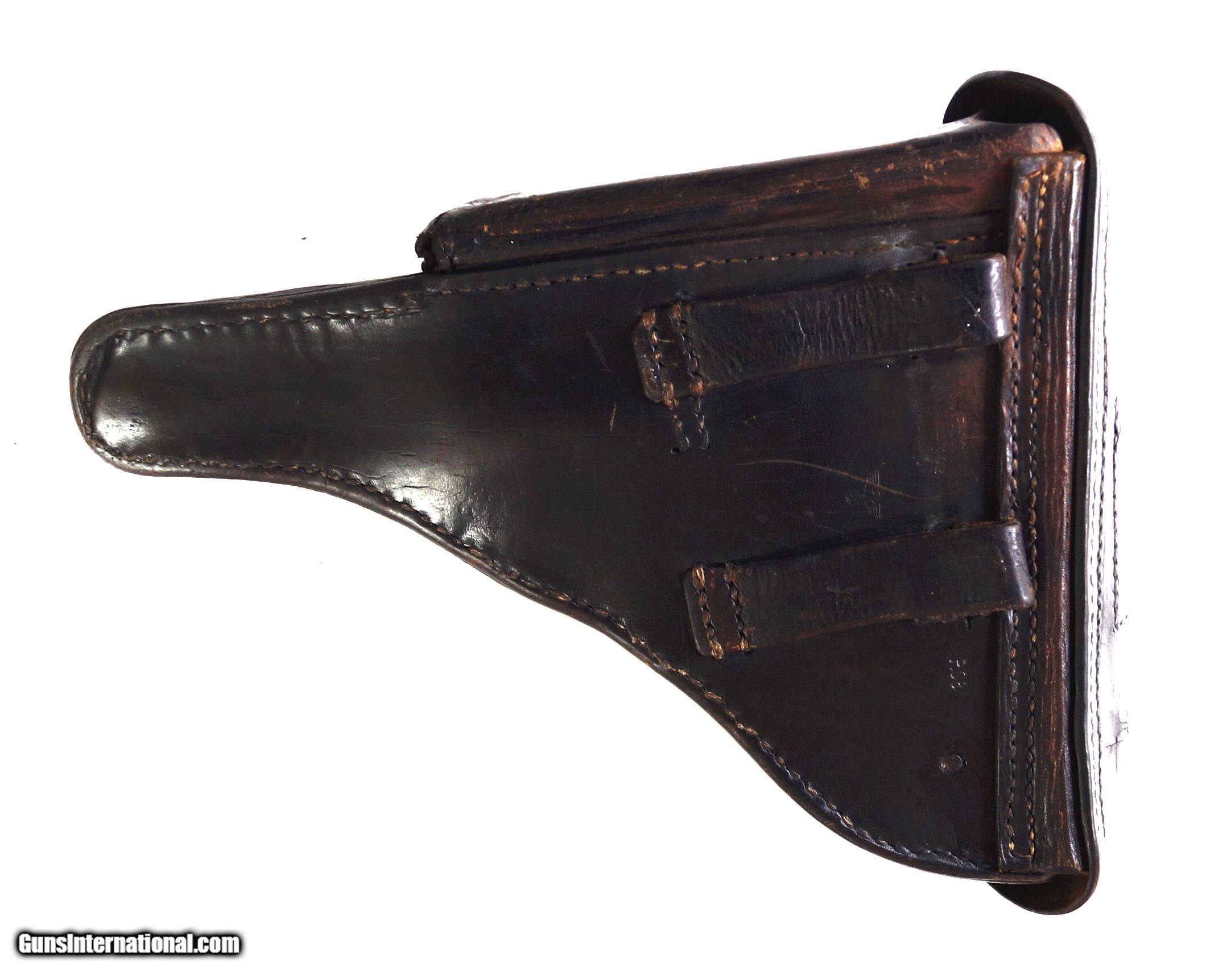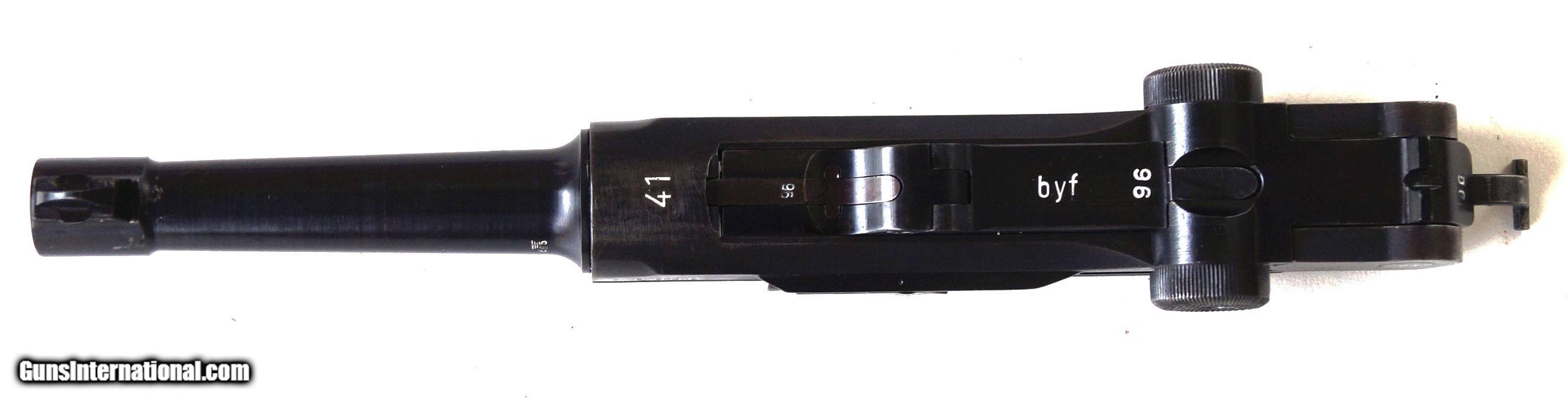 Description: THIS IS A 41 BYF MAUSER "BLACK WIDOW" RIG, 9MM. THE LUGER IS IN VERY GOOD CONDITION, NUMBER MATCHING (INCLUDING BOTH MAGAZINES), VERY GOOD BORE AND GRIPS, MECHANICALLY CORRECT. THE RIG CONSISTS OF THE LUGER, 2 MAGAZINES, 1 ORIGINAL 1941 DATED HOLSTER AND 1 PROOF MARKED LOADING TOOL. IT WOULD BE HARD TO FIND A BETTER LUGER RIG. SOLD Curio/Relic: Yes |