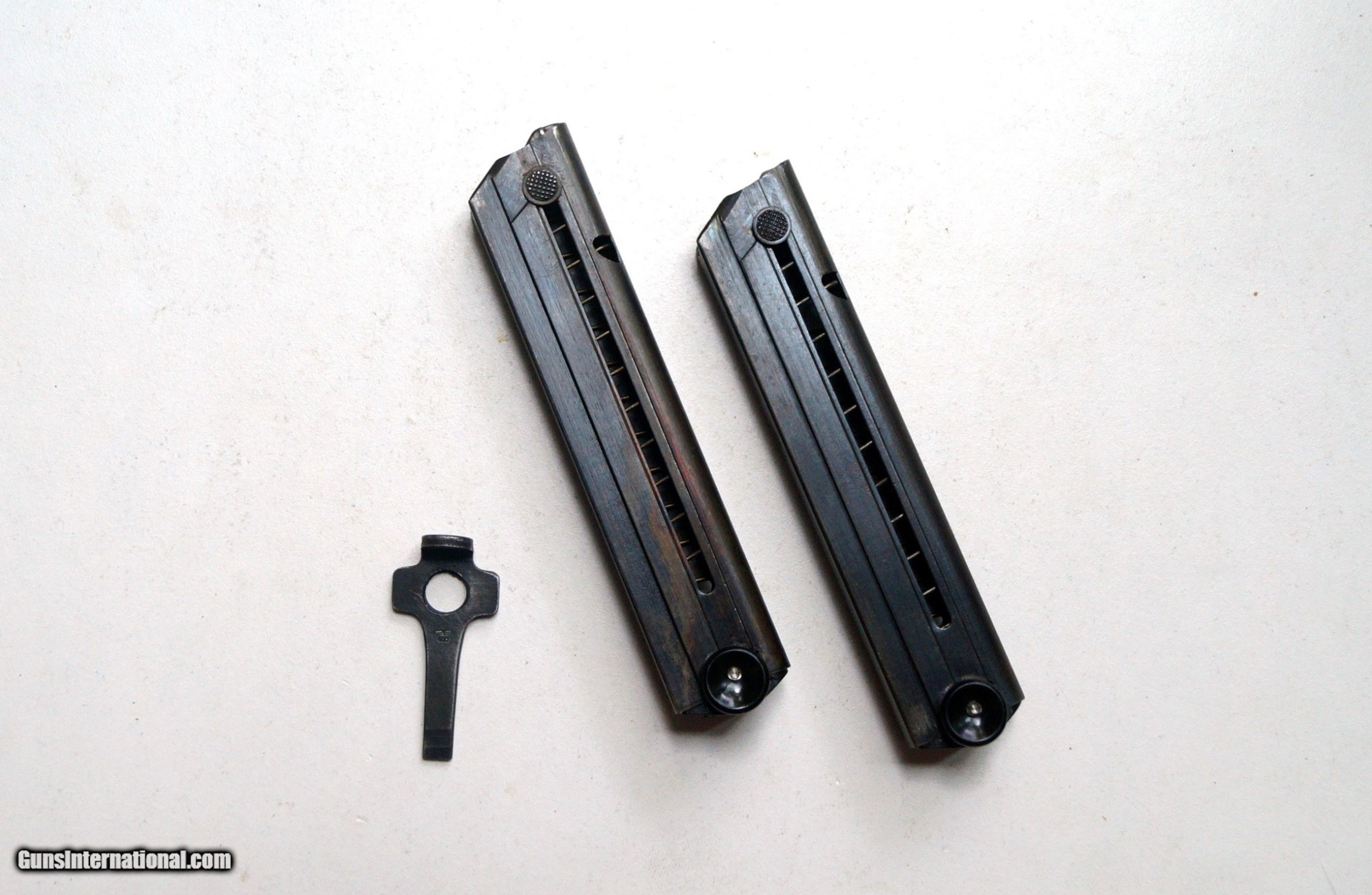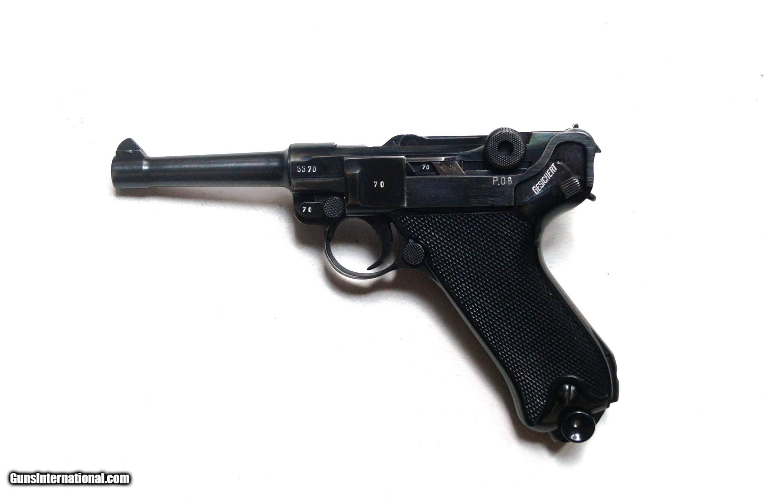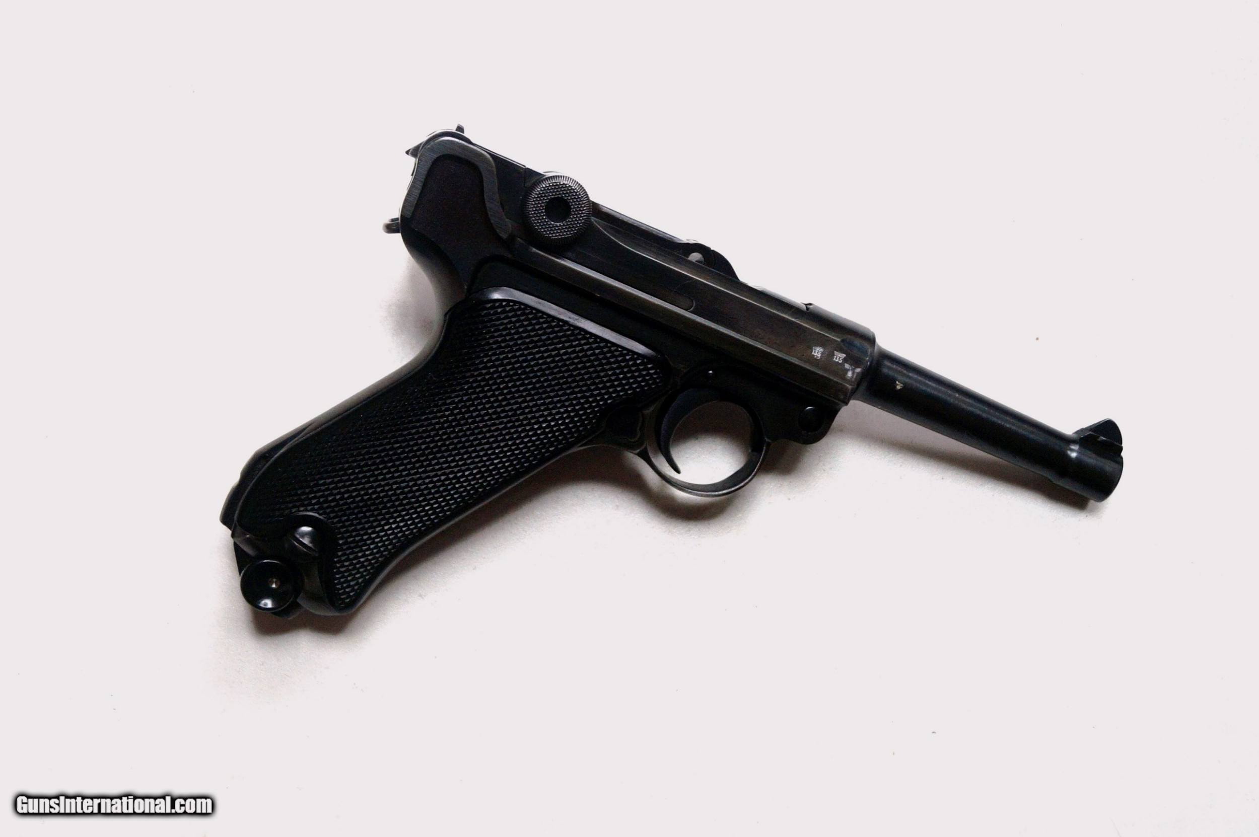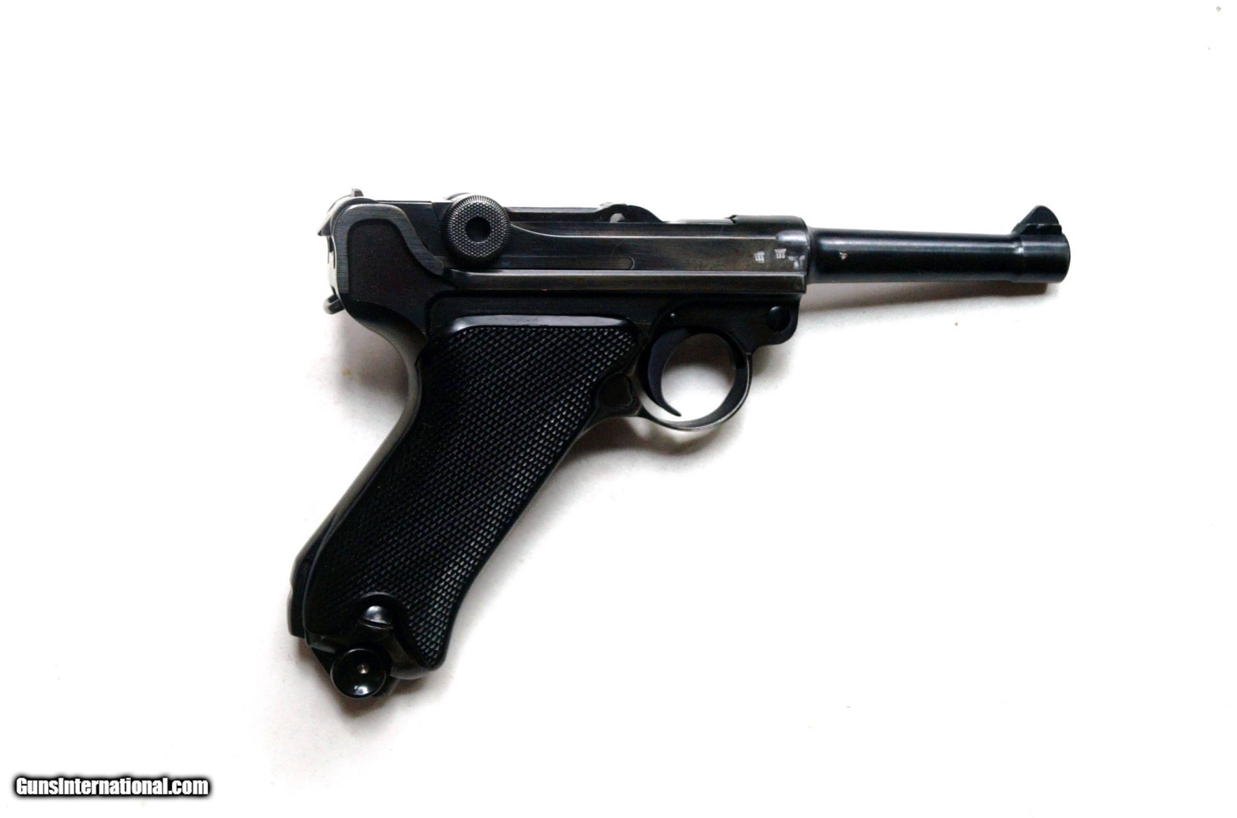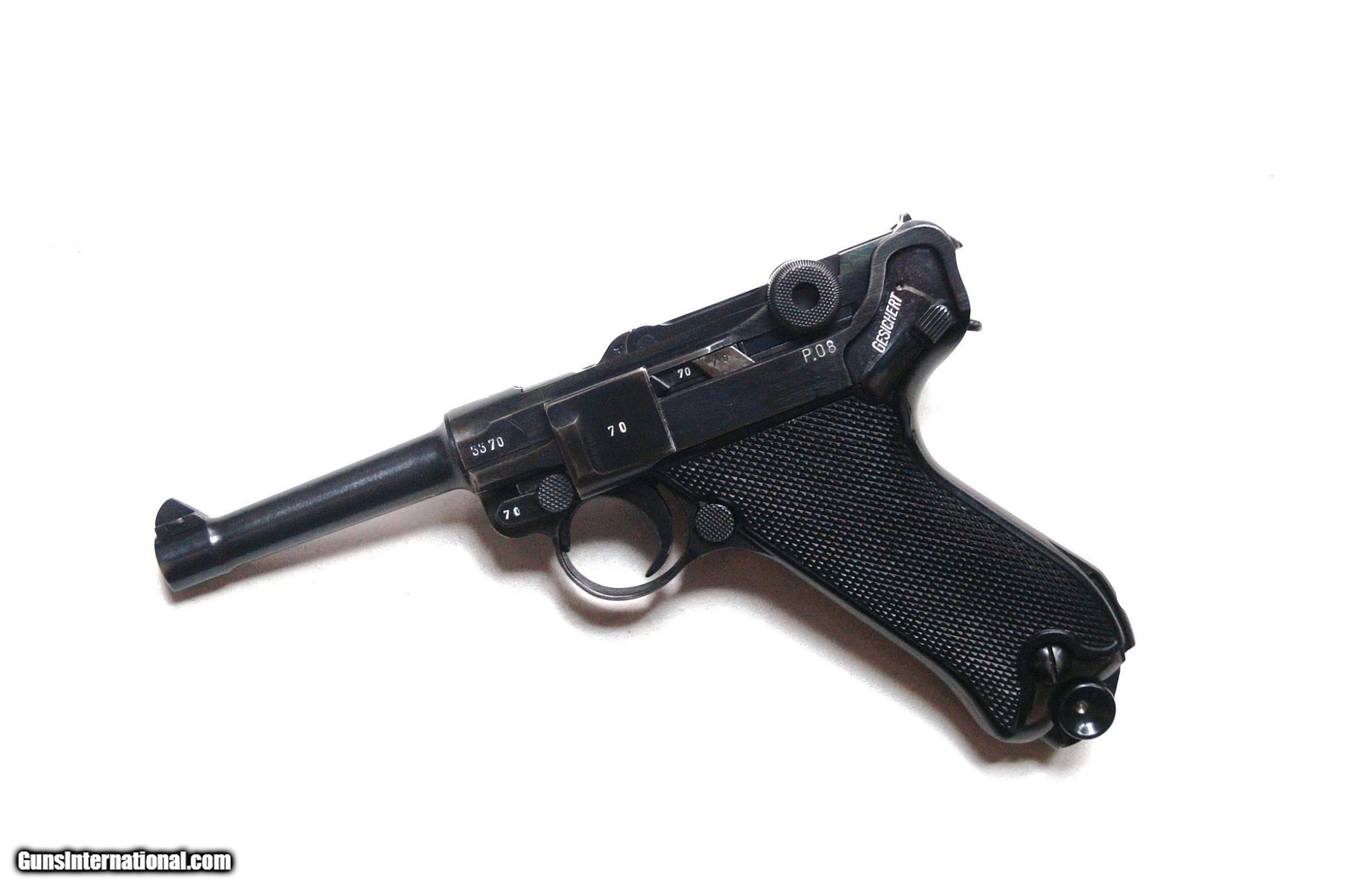 Description: THIS IS A 42 BYF (MAUSER) "BLACK WIDOW" NAZI GERMAN LUGER RIG, 9MM. THE LUGER IS IN VERY GOOD CONDITION. ALL ORIGINAL, NUMBER MATCHING, VERY GOOD BORE AND GRIPS, MECHANICALLY CORRECT AND TIGHT. THE RIG CONSISTS OF THE LUGER, 2 ORIGINAL NAZI MARKED FXO MAGAZINES, 1 ORIGINAL NAZI MARKED HOLSTER AND 1 NAZI MARKED LOADING TOOL A VERY NICE WWII NAZI BLACK WIDOW RIG. SOLD Curio/Relic: Yes |