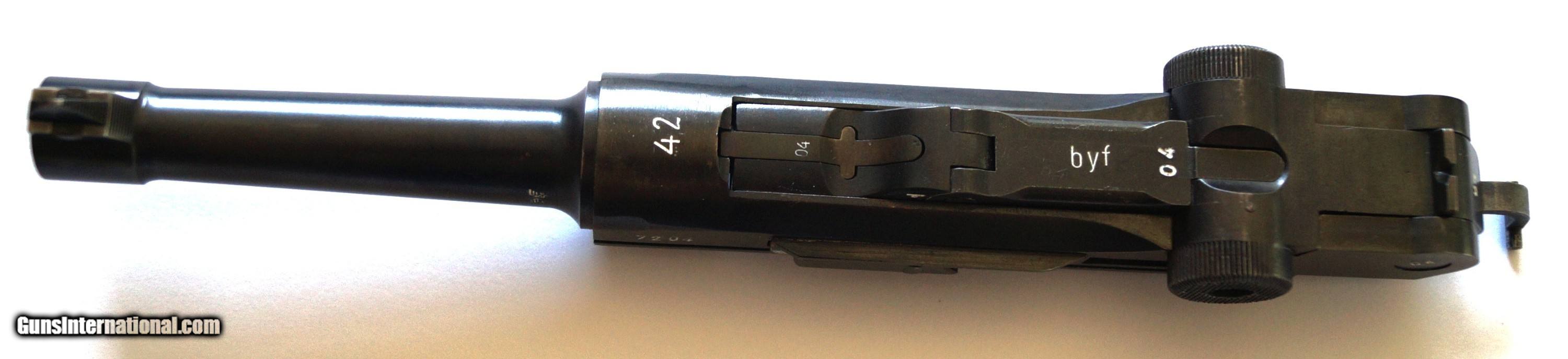 Description: THIS IS A 42 BYF (MAUSER) "BLACK WIDOW" MILITARY GERMAN LUGER, 9MM. THE LUGER IS IN VERY GOOD CONDITION, ALL ORIGINAL, NUMBER MATCHING, VERY GOOD BORE AND GRIPS, MECHANICALLY CORRECT. THEY DON'T COME BETTER THAN THIS. SOLD Curio/Relic: Yes |