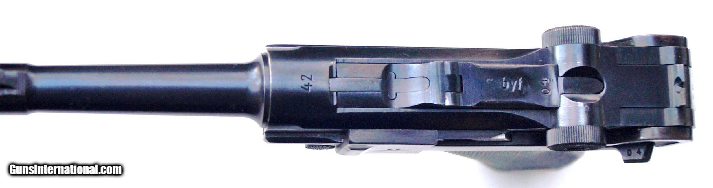 Description: THIS IS A 42 BYF (MAUSER) "BLACK WIDOW" NAZI MILITARY GERMAN LUGER, 9MM. THE LUGER IS IN VERY GOOD CONDITION. ALL ORIGINAL (THIS INCLUDES BOTH GRIPS), NUMBER MATCHING, VERY GOOD BORE AND GRIPS, MECHANICALLY CORRECT (THE GUN WILL SHOOT). THEY DON'T COME BETTER THAN THIS. SOLD Curio/Relic: Yes |