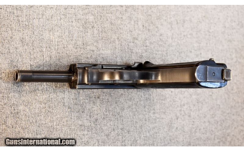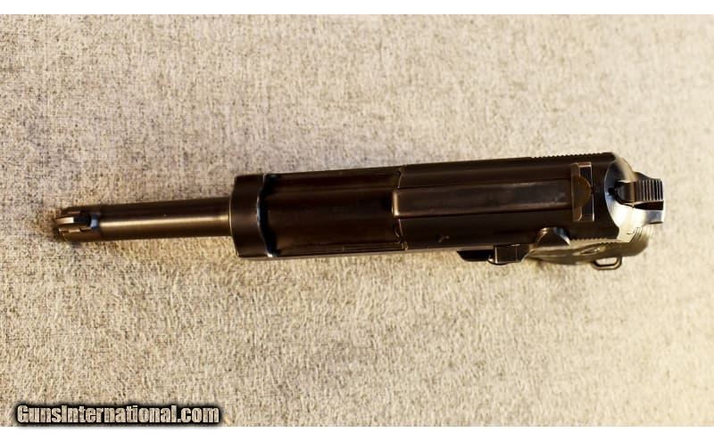 Description: This is a pre-owned BYF 43 model P 38 in 9mm Luger with eagle over 135 proofs on the left side of the frame and the right side of the slide plus an eagle over what could be a swastika on the right side of the slide 9mm Luger SOLD Metal Condition: Approximately 75% to 80% of the blue remains with no major flaws Wood Condition: Good overall condition with some handling wear Bore Condition: Slightly dark with good lands Barrels: 5 Triggers: DA/SA Butt Pad: Grooved plastic grips Weight: 2 lbs. Sights: "Blade front, U-notch rear Item Location: Glendale, AZ |
