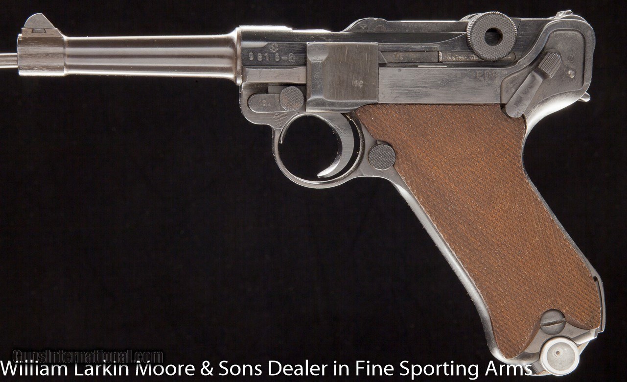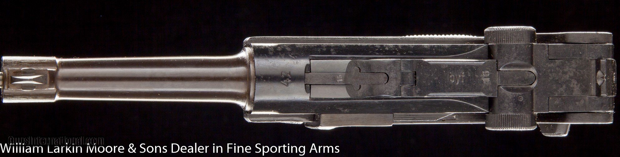 Description: ID # 7677 Make BYF Mauser Model Luger P. 08 byf 42 Configuration Semi-Auto Pistol Gauge / Caliber 9mm para Price $1,800.00 Serial # 9816 Country of Origin Germany Barrel Length (in Inches) 4 Stock Configuration checkered walnut grips(likely replacement) Receiver Finish Blue Engraving Type None Other Options All matching numbers including magazine Condition EXC. Condition SOLD Curio/Relic: Yes |