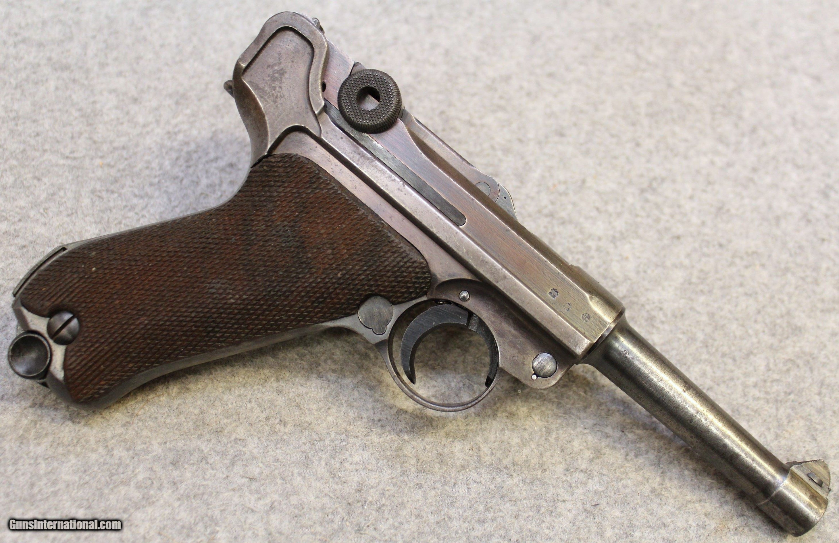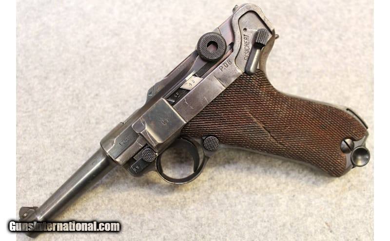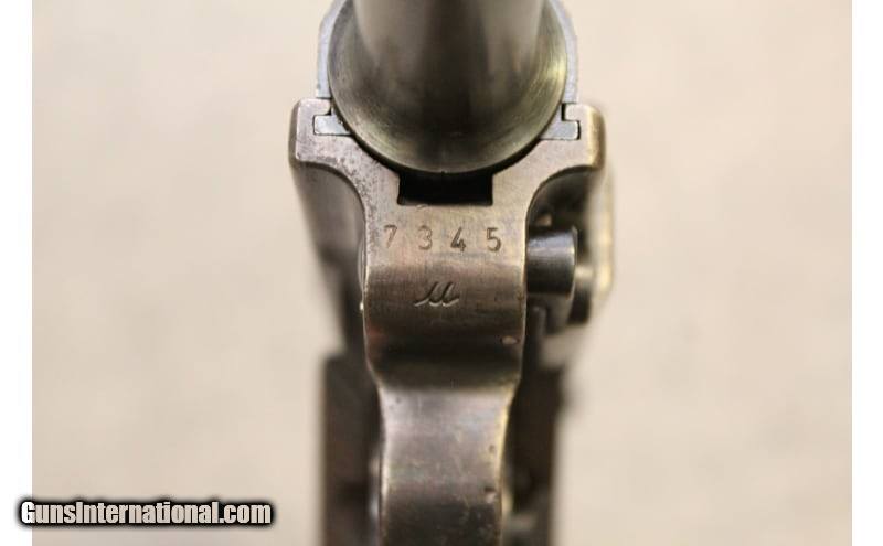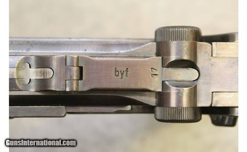 Description: This byf P.08 chambered in 9mm Luger is in good shape. The finish has wear throughout mainly on the front and backstrap with some patina. The bore is bright with no pitting, and the wood grips have no cracks or splits. 9mm Luger SOLD Metal Condition: Good Wood Condition: Good Bore Condition: Bright Barrels: 3.75 Weight: 2 lbs Item Location: Hoffman Estates, IL |