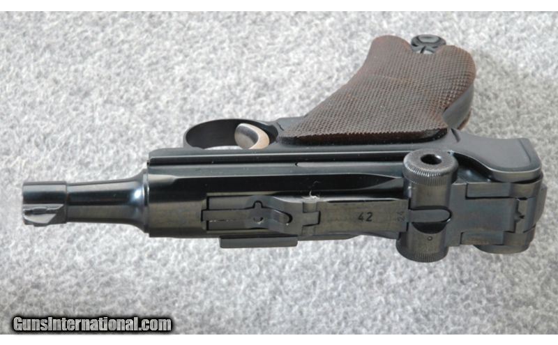 Description: This Mauser “42” Luger has been customized by shortening the grip frame and barrel. We don’t know who did the work but it is in the style of a John Martz custom. The serial numbers do not match. SOLD Caliber Info: 9mm Para. Metal Condition: Excellent Wood Condition: Very good Bore Condition: Very good bright and sharp Barrels: 2 3/8 inch Stock: Checkered walnut shortened grip panels Weight: 29 oz. Sights: V notch rear, blade front Item Location: Lehi, UT |