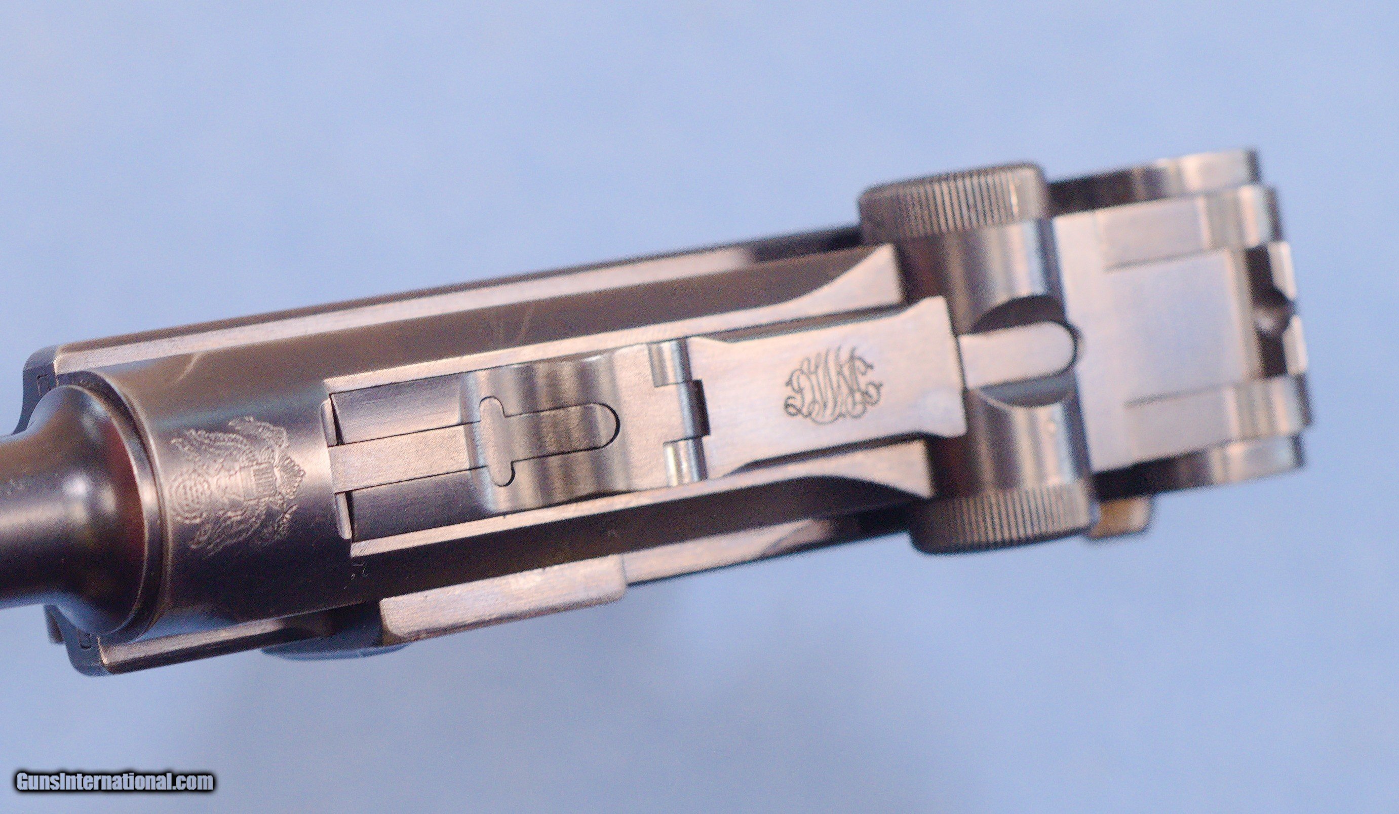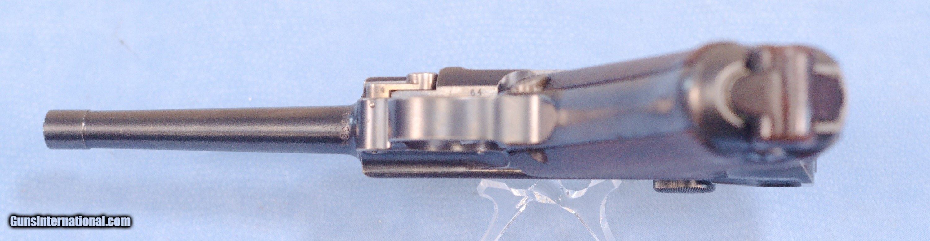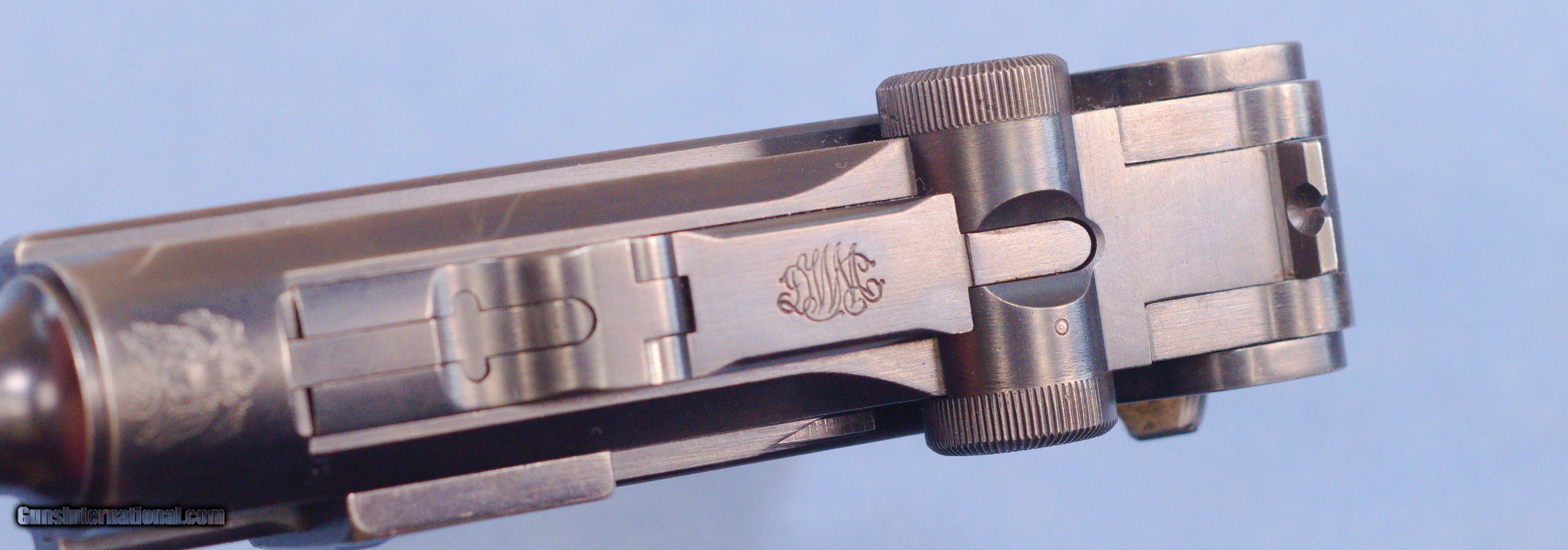 Description: This is an excellent DWM 1906 American Eagle Luger pistol in .30 Luger caliber. The Pistole Parabellum or Parabellum-Pistole (Pistol Parabellum), commonly known as just the Luger or Luger P08, is a toggle-locked recoil-operated semi-automatic pistol. The Luger was produced in several models and by several nations from 1898 to 1949. The design was first patented by Georg Luger. It was meant to be an improvement of the Borchardt C-93 pistol, and was initially produced as the Parabellum Automatic Pistol, Borchardt-Luger System by the German arms manufacturer Deutsche Waffen- und Munitionsfabriken (DWM). The first production model was known as the Modell 1900 Parabellum. It was followed by the "Marinepistole 1904" for the Imperial German Navy. These pistols went to the US retail market and the manufacturers at DWM realized that nation-based crests increased sales of these Lugers, so that is why you find the American Eagle over the chamber. This is also why you see GERMANY marked on the frame, denoting these were exported for commercial sale. This example is in very good condition exhibiting some high edge and muzzle wear but nothing serious. The DWM and American Eagles on top of the pistol are sharp and clear. The barrel has a very good bore with strong rifling. Grips are free of cracks or chips. One magazine comes with the pistol. This is a very nice Luger that be a strong addition to a collection or an outstanding start to a new collection. PRICE: $2395.00 Plus Shipping We are Antique & Modern Firearms in Lexington, KY, a dealer of fine firearms since 1974. To Inquire please call PH. 859-276-1419 We Buy, Sell, and Trade Firearms & Knives. Have an Individual Firearm, Firearms Collection, or Firearms Estate to sell, let us know, and we can buy or consignment sell it for you. NOTE: No additional fee for a Credit Card payment SOLD Handgun Caliber: 7.65x22mm Parabellum (7.65x22mm Luger, .30 Luger) Manufacturer: DWM Model: American Eagle Luger Serial Number: 48964 Barrel Length: 4.7 Condition: Very Good Metal Condition: very good Wood Condition: Very Good Bore Condition: Very Good strong rifling Action: Semi Automatic Item Location: Kentucky |