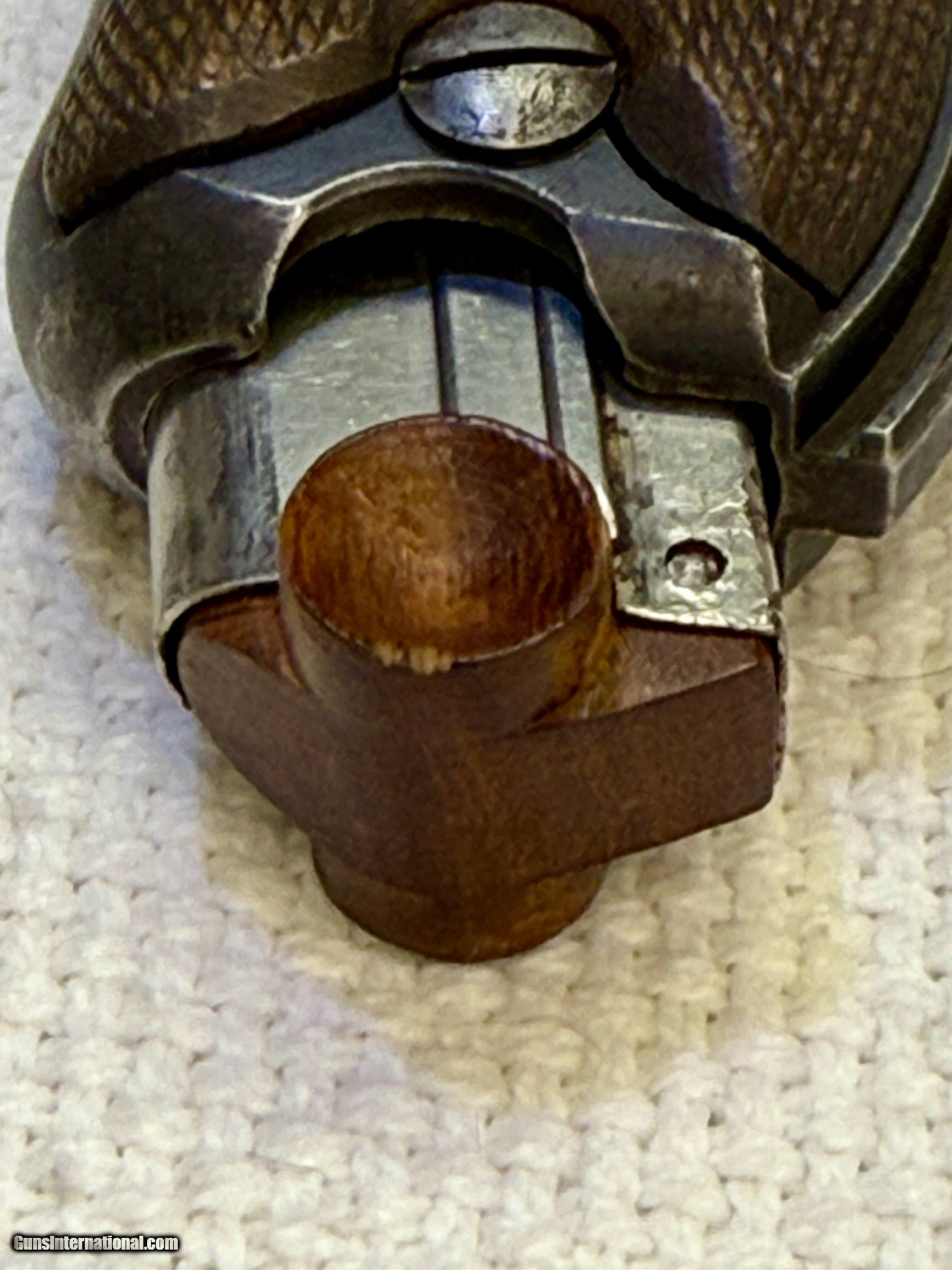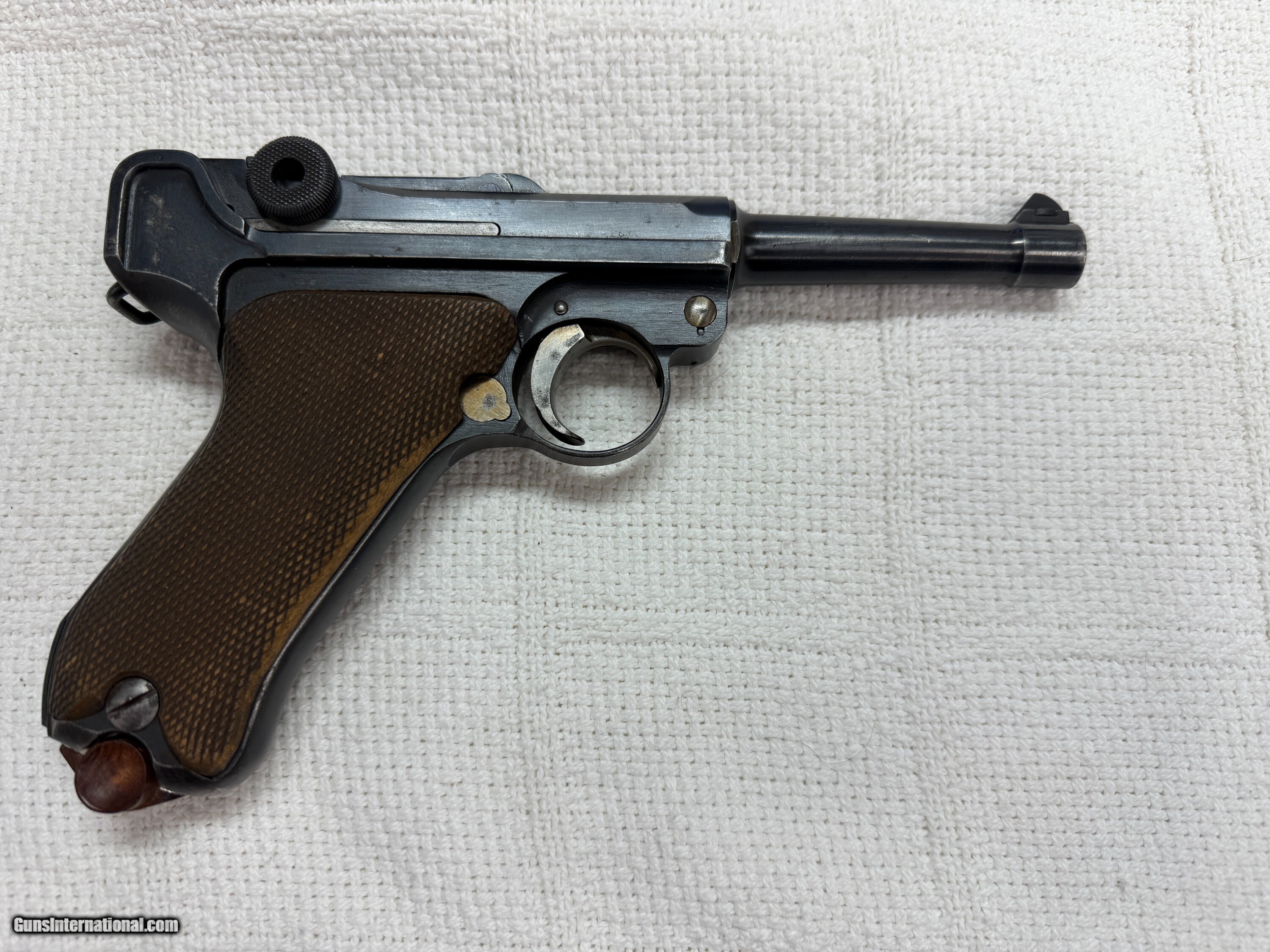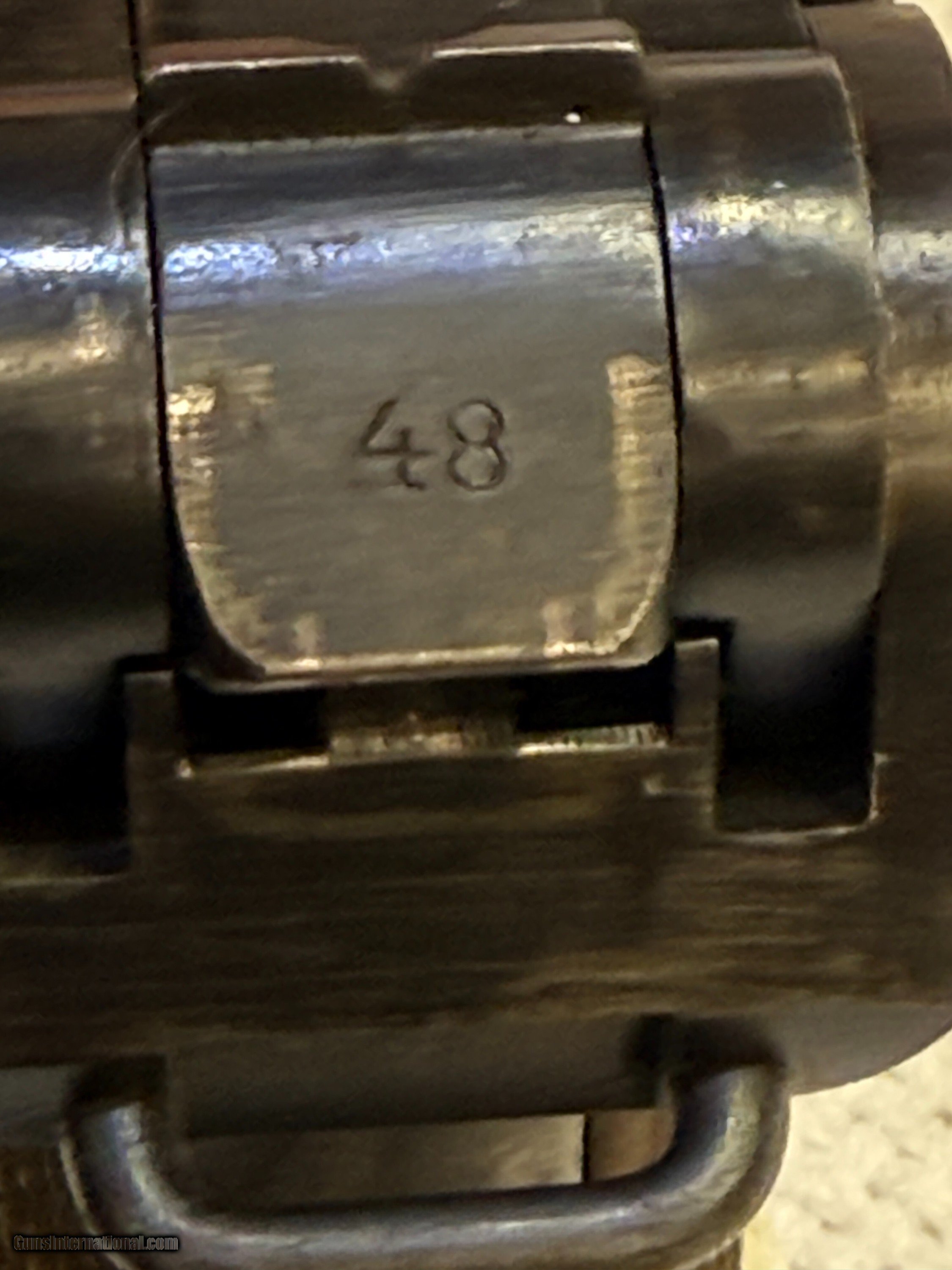 Description: Here we have a DWM commercial sales 9mm luger, clean, shiny bore, still has good rifling, retains 70-80% of its origional bluing. This luger would be a nice addition to a collection. Curio/Relic: Yes Handgun Caliber: 9x19mm Parabellum (9mm Luger, 9x19mm NATO) Manufacturer: DWM Model: Luger Serial Number: 4148 Barrel Length: 3.9 Bore Info: Good Condition: Good Metal Condition: Good Wood Condition: Good Bore Condition: Good Price: $1,250.00 Contact Seller |
