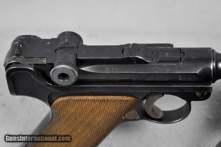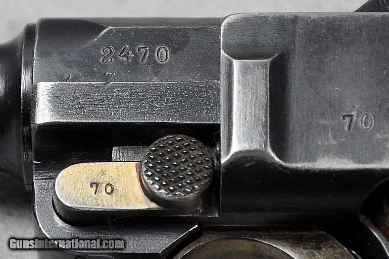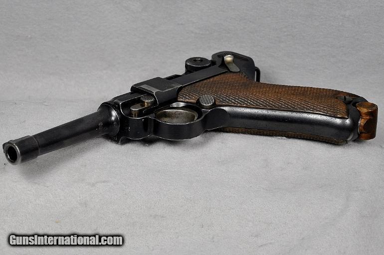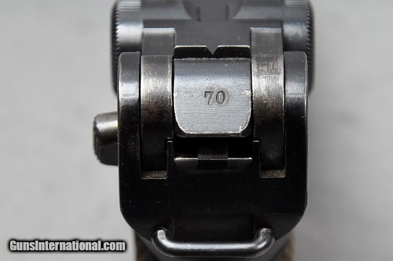 Description: DWM (Deutsche Waffen-und Munitionsfabriken), Germany, Model P.08 (Luger), MODEL 1917 (WWI), caliber 9mm, s/n 2470a, mechanically excellent, 4" barrel, MINT BORE, stock lug, retains about 95% or better of original blue with minor handling wear in a couple of places (see photos), straw is strong on trigger and safety, PISTOL IS ALL ORIGINAL AND MATCHING INCLUDING THE GRIPS AND MAGAZINE, the matching serial number on the magazine is somewhat disfigured, due to whatever, but is definitely readable and original to the pistol, clear serial numbers and proof marks all over, ORIGINAL GRIPS ARE NUMBERED AND EXCELLENT, ONE OF THE MOST FREQUENTLY ENCOUNTERED WWI MILITARY LUGERS AND WHILE NOT MINT IS CERTAINLY A FINE EXAMPLE FOR A SERIOUS MILITARY COLLECTOR OR GUY WHO JUST WANTS A NICE ORIGINAL LUGER, Retail value $2500.00, Sale priced at $2149.00 We cater to first time GI buyers. Don't worry, we are real. We provide our phone number as part of our response to your first inquiry. You can purchase from us with total ease and confidence. We will guide you through the purchasing process if need be. We are a Platinum dealer and Verified Seller on GI having placed over 3500 listings so far. GI is the only site on which we advertise. We strive to describe all our sale items accurately and fully and include professional quality photos of each one. Although we offer a 3-day, no questions asked, return policy it has rarely been used the entire 56 years (since 1960) we have been in business under the same ownership. The first potential buyer who states that he definitely wants an item gets it. Those having questions who do not definitely commit to purchase in their first inquiry will have their questions answered but may lose the sale if another buyer e-mails after they do and definitely commits to purchase before we can get back to the first inquirer to answer their questions. This happens almost daily and disappoints a lot of people. If you see something you want- state a definite committment to buy it. You will not be disappointed. WANT TO VISIT A VIRTUAL GUN SHOW ANYTIME RIGHT ON YOUR COMPUTER? The easiest way is to click on the box up in the top right hand side of this ad labelled "SEE ALL LISTINGS BY MARYLAND ARMS COMPANY". Over 100 guns and related items we currently have listed on GI will come up with photos and complete descriptions that are available for purchase right now. USA SALES ONLY. Thank you SOLD Curio/Relic: Yes |