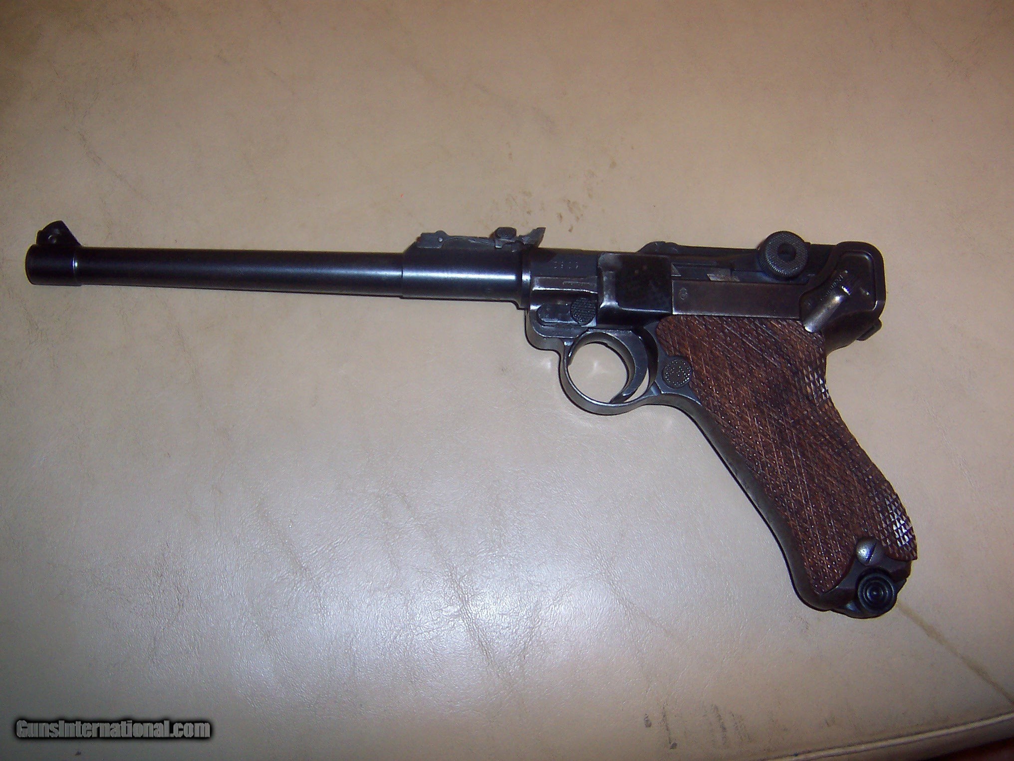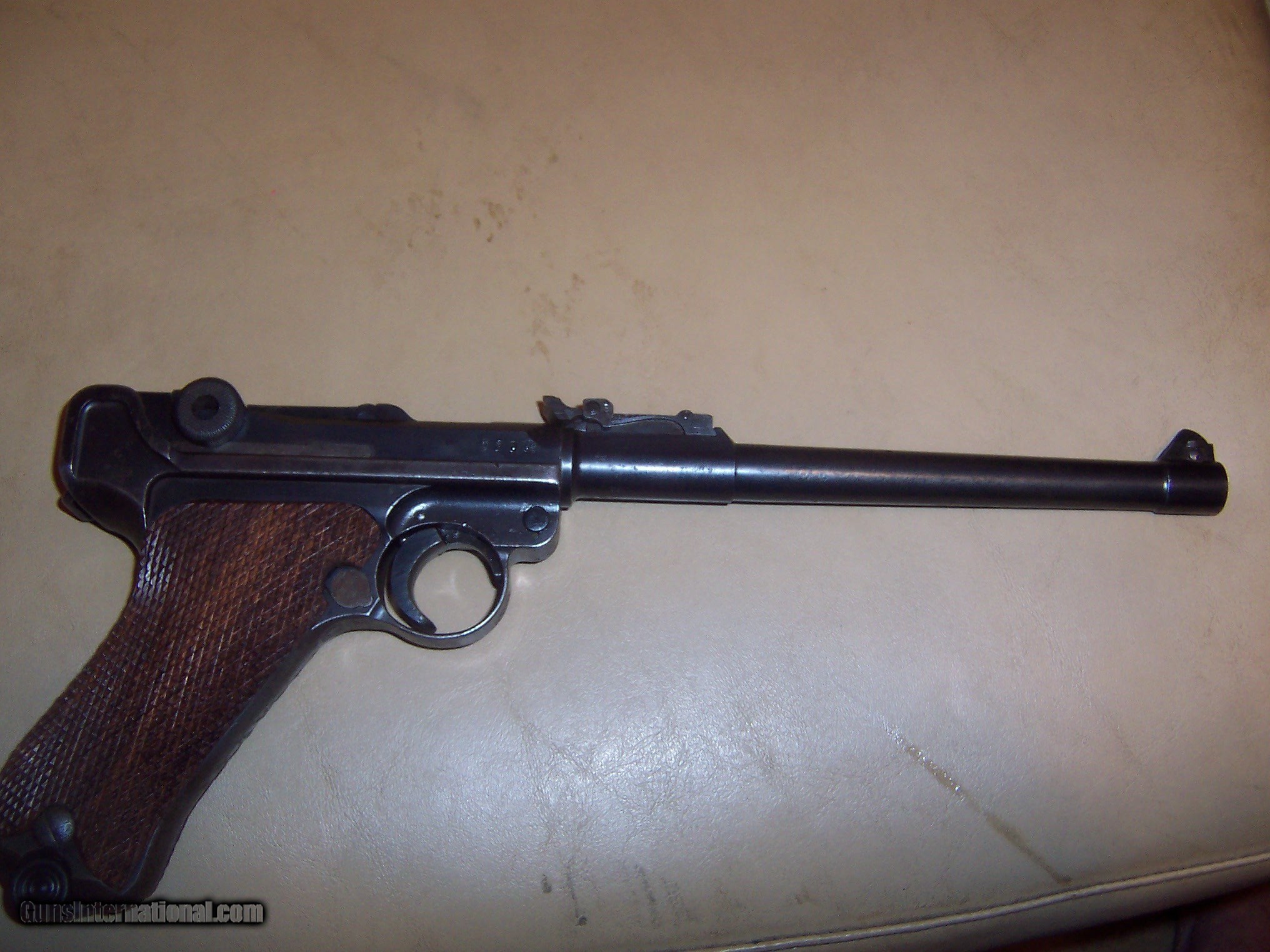 Description: ARTILLERY LUGER top half of gun is all matching serial #2900, has 95% original blue vg bore some freckling on barrel this part is all original and complete the part i am selling is the barrel and toggle part, it has adjustable windage on rear and front sight ,THE RESTOF GUN IS FREE INCLUDES bottom half frame and grip part is free has has all the parts original and repo NO RETURNS PLEASE UNLESS BADLY DESCRIBED SOLD Curio/Relic: Yes |