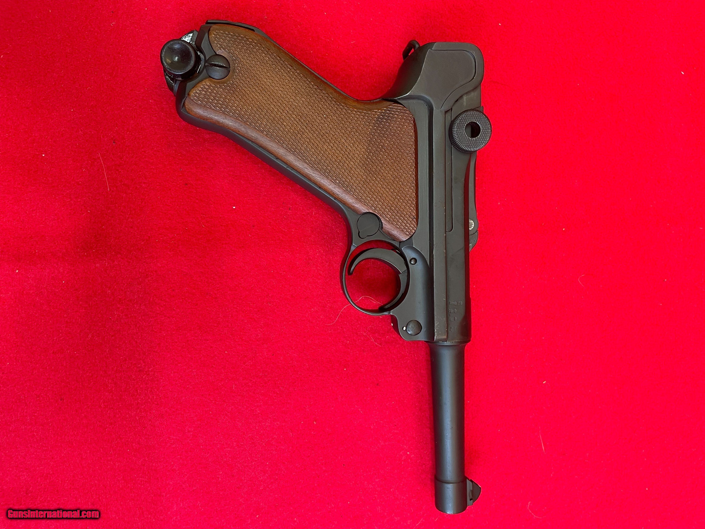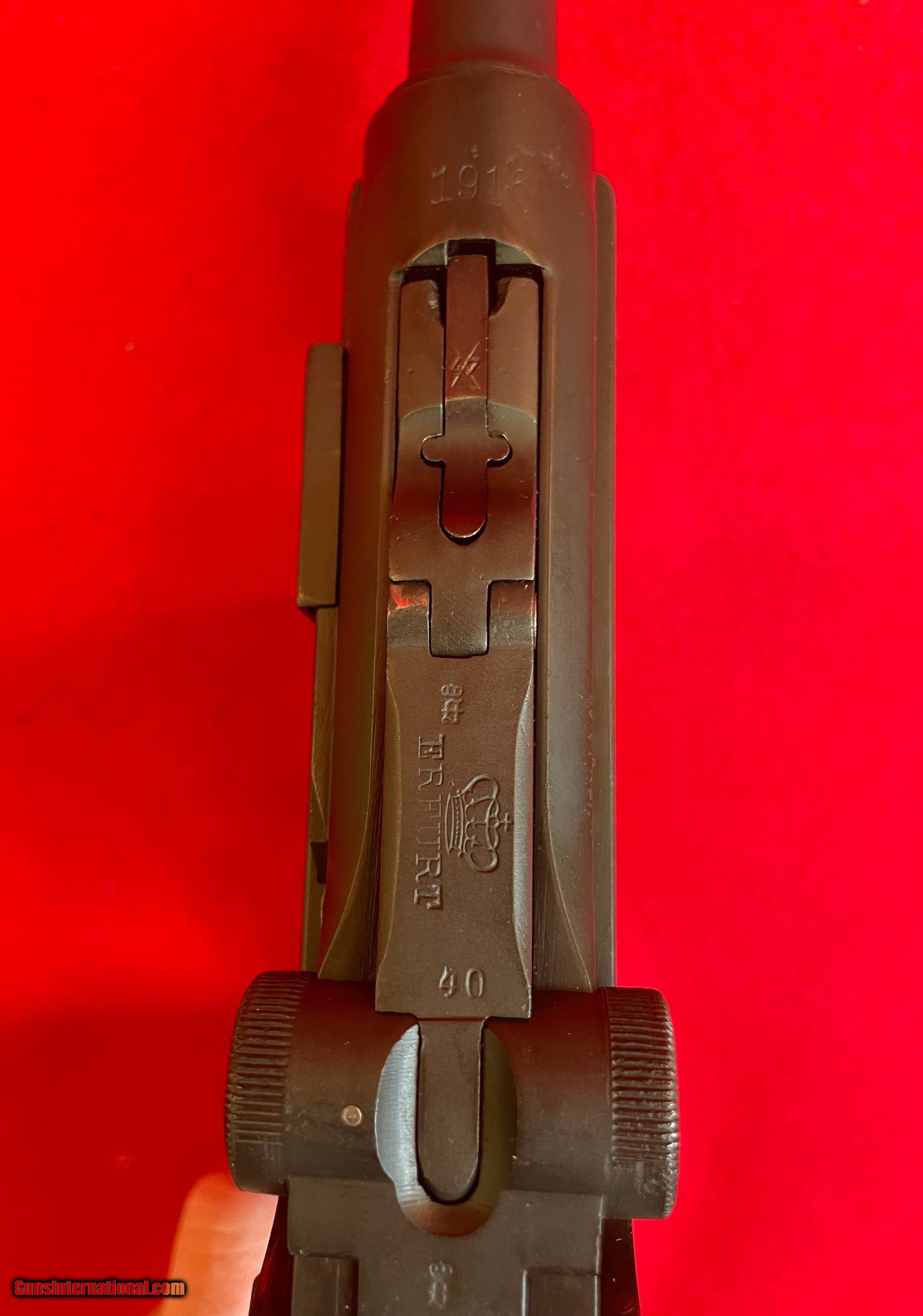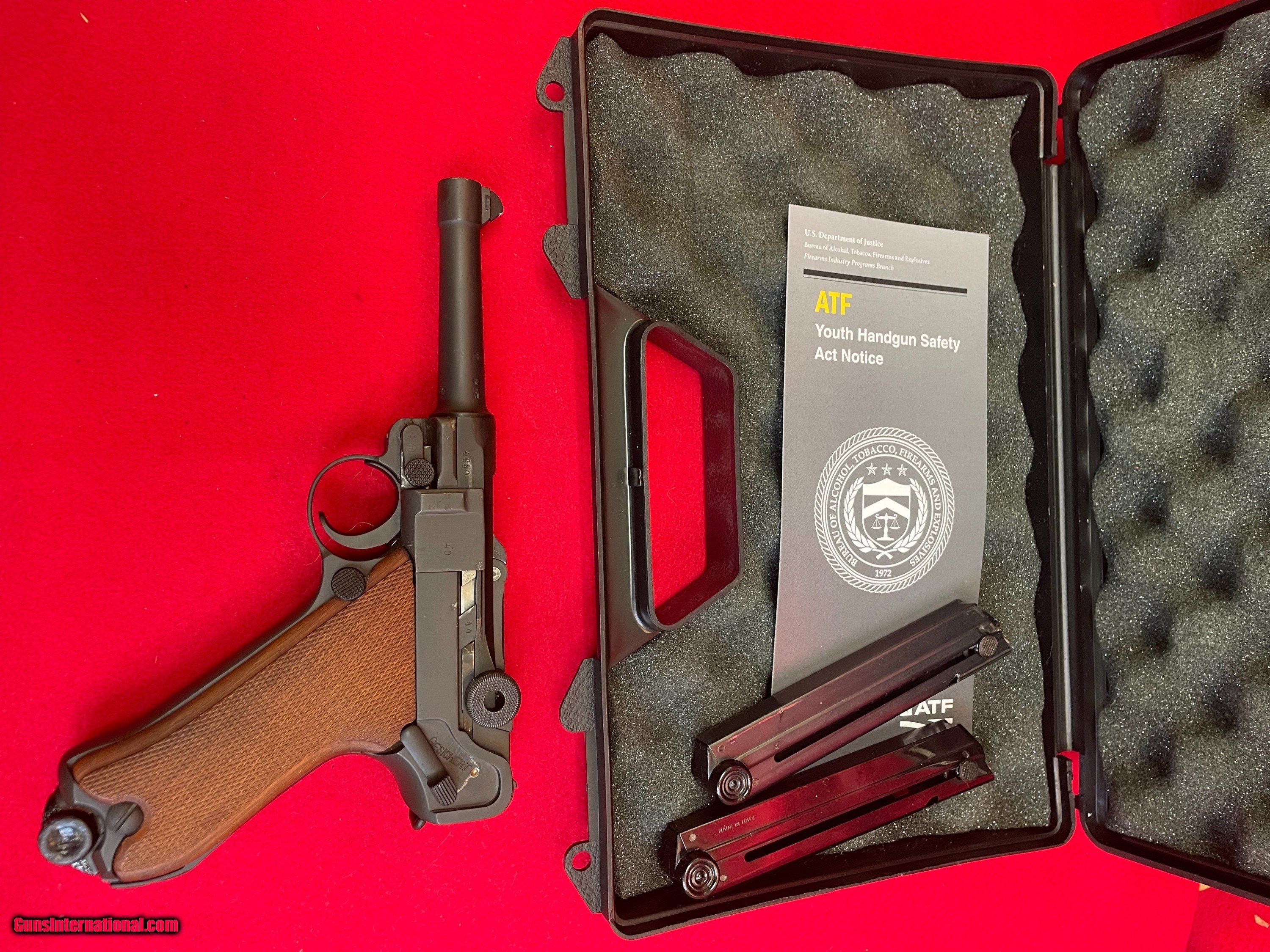 Description: USED 1916 luger it has been reblued extractor is not numbers matching grips are not original. has 3 magazines that are aftermarket. comes with a hard case. The extractor replacement caused a few chips on on the toggle, nothing that will efect function shown in image. SOLD |