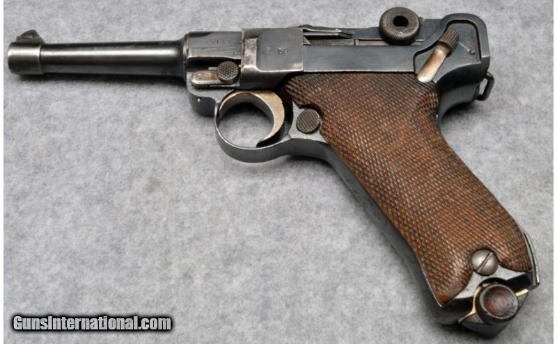 Description: SOLD Curio/Relic: Yes Manufacturer: 1918 Caliber Info: 9MM LUGER Metal Condition: VERY GOOD Wood Condition: VERY GOOD PLUS Bore Condition: VERY GOOD Barrels: 4 INCHES Weight: 2.0 POUNDS Sights: FIXED SIGHTS Extras: COMES WITH PERIOD HOLSTER Item Location: Fort Mill, SC |