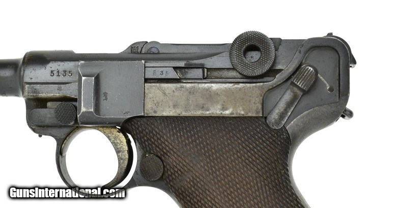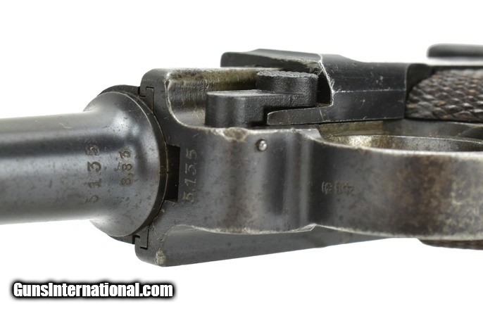 Description: Erfurt Luger 9mm caliber pistol. 1913 Issue German Military Luger. Serial numbers are matching, except for the magazine. Bore has strong rifling with corrosion. Good overall condition.
