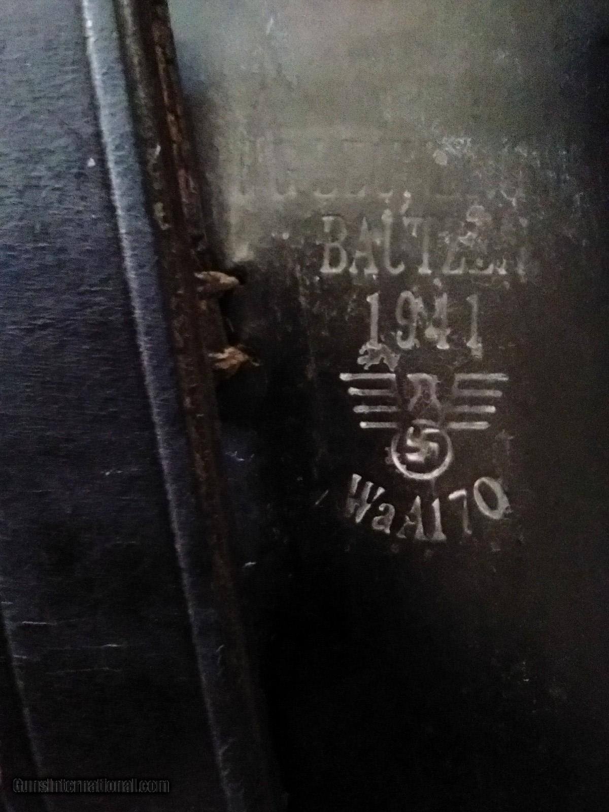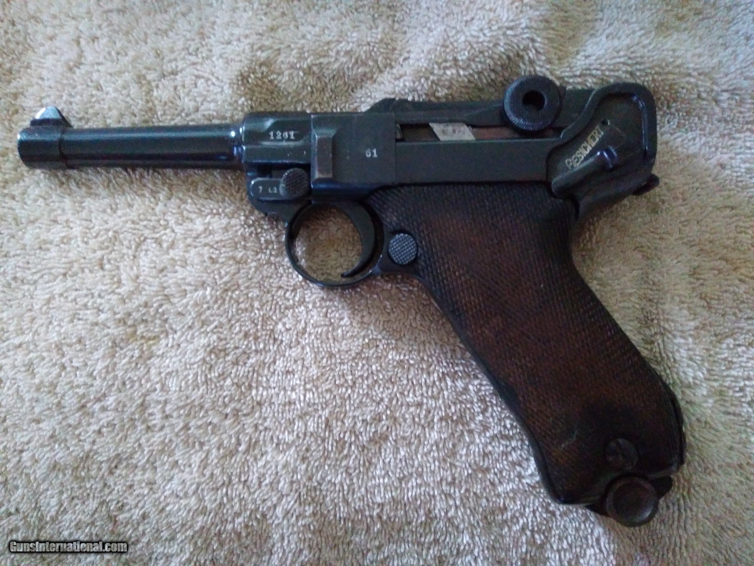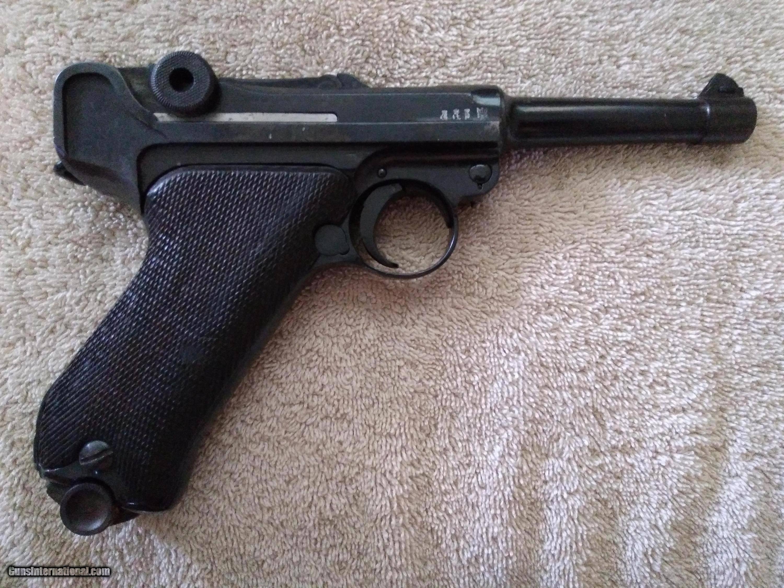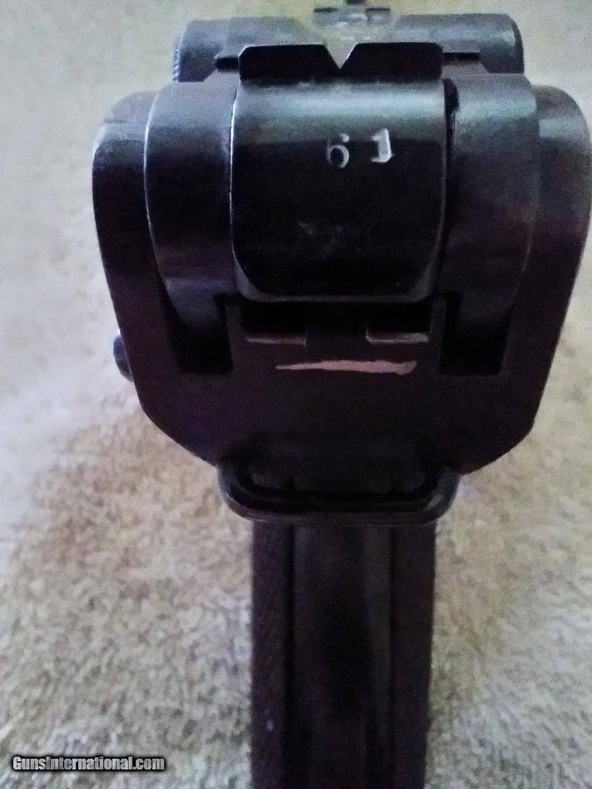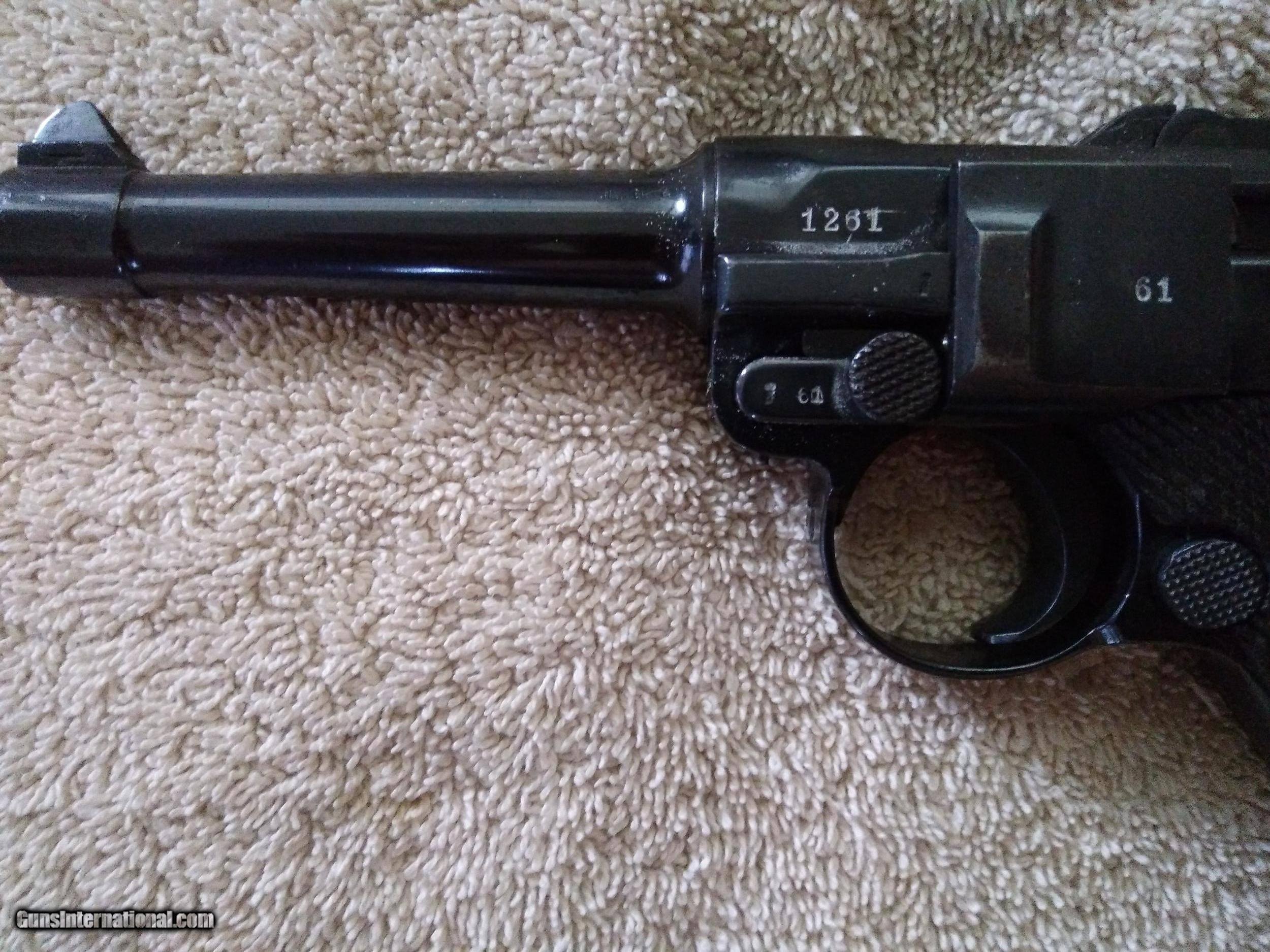 Description: WWI 1917 ERFURT P08 LUGER 9mm S/N 1261 VERY EARLY 1917 MATCHING SERIAL NUMBERS ON BARREL, RECEIVER, LOCKING BOLT, TRIGGER SIDE PLATE, SAFETY BAR, TOGGEL LINK, FORWARD TOGGEL LINK, EXTRACTOR, FRAME AND INSIDE BOTH GRIPS. OVER ALL CONDITION IS EXCELENT BLUING IS 92% OVER ALL SOME THINNING ON SIDE PLATE AND TIP OF LEFT AND RIGHT SIDE RAILS LIGHT PITTING ON SIDE PLATE TOP OF TOGGEL LINK TOP RIGHT OF RECEIVER CHAMBER IS DATED 1917 TOGGEL HAS CROWN OVER ERFURT LOGO BORE IS EXCELLENT STRONG RIFLING BOTH GRIPS ARE DARK WITH CRISP CHECKERING BOTH GRIPS HAVE A MARRED SPOT ALONG INSIDE FRONT OF LOWER EDGE SARCO REPRODUCTION TOOL AND A HOLSTER MARKED F G LECNERGmbH BALTZEN 1941 EAGLE OVER WaA170 TWO SARCO REPRODUCTION MAGAZINES SHOULDER STOCK LUG DOUBLE MAGAZINE HOLDER INCLUDED C&R FFL OR FFL $20.00 SHIPPING SOLD Curio/Relic: Yes Handgun Caliber: 9x19mm Parabellum (9mm Luger, 9x19mm NATO) Manufacturer: ERFURT Model: MODEL 08 Serial Number: 1261 Barrel Length: 4 in Bore: STRONG RIFLING Condition: Excellent Metal Condition: Excellent Wood Condition: Excellent Bore Condition: Excellent |