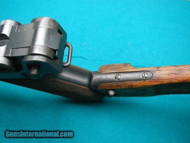 Description: THIS IS A VERY NICE 1917 DWM ARTILLERY LUGER RETAINING 95+% OF IT'S ORIGINAL BLUE ALONG WITH IT'S ORIGINAL MATCHING # BOARD STOCK . IT HAS EXCELLENT MATCHING # GRIPS AS WELL. BORE IS MINT. FINE ADJUSTABLE FRONT AND REAR SIGHTS. THE WOOD BOTTOM MAG IS UN- NUMBERED AND IS IN LIKE NEW CONDITION. AN EXCELLENT OVERALL RIG. SOLD Curio/Relic: Yes |
