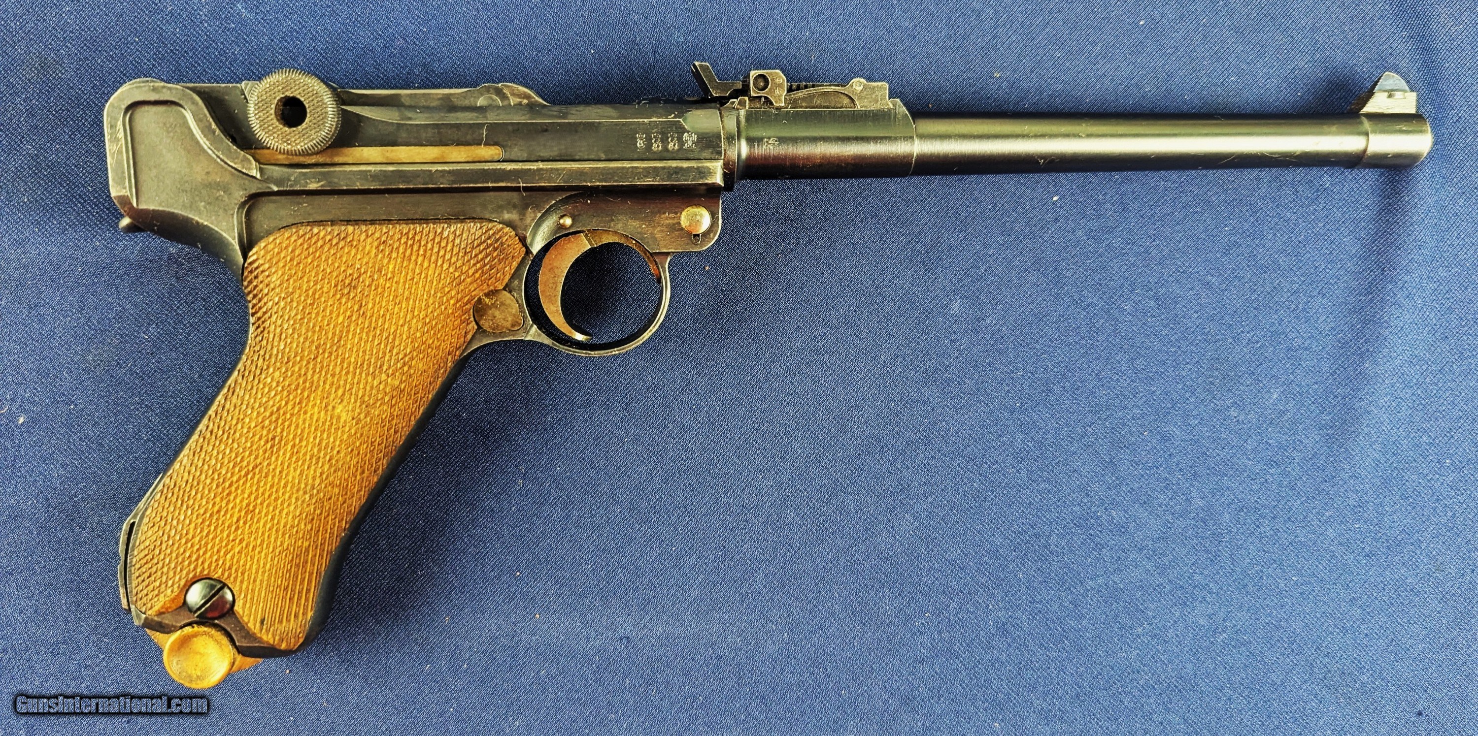 Description: Excellent WWI DWM 1918/1920 Double Date 9MM Luger Regimentally Mkd. Offered here for sale and just acquired is an excellent and scarce WWI period collectible DWM artillery luger with 1918-1920 double date which is additionally WWI regimentally stamped – a rare and fascinating piece. The significance of the “double date” (“1918?1920”) is well known to German luger collectors. The "1920" stamp is not a manufacture date—it's a Weimar Republic property mark indicating the pistol was formally accepted into Reichswehr (military) service following the Treaty of Versailles, distinguishing it from clandestine or surrendered arms . The original 1918 date marks its manufacture during WWI for Imperial German service. The subsequent "1920" shows it was retained and officially accounted for post?war . These “double?date” artillery Lugers are not just reworks—they are historically significant artifacts, bridging Imperial and Weimar military periods. After WWI, many Lugers were inspected, officially rechambered, or modified and then stamped with "1920" when issued to police or military, often with added safety features. This applied to even artillery models (with 8?" barrels), though less commonly seen. Serial Number “5894a” is typical of Luger serial numbering which ran from 1–9,999, then 1a–9,999a, etc., after reaching the initial numeric sequences. The suffix “a” suggests your pistol was made after one full cycle—so likely around mid?1918 or later. Combined with the 1918 date, it's consistent with late?war production. In addition the inner grip strap is marked: “4.1.A.4.43.” This appears to be a unit or regimental marking, potentially denoting something like 4th Battery, First Field Artillery Regiment 4, Gun number 43. Research from the Great War Forum online notes this unit may be the Field Artillery Regiment Prinz August von Preuben.- Af far as specs are concerned this specimen has an 8" barrel as artillery model—rarer and desirable compared to standard 4" service pistols. It retains 97-98% original finish, all matching parts except the magazine, with a correct period wooden thumb?piece—excellent condition. The chamber is again marked with 1918 doubled by 1920, with intact Imperial proofs and the property mark. The Unit marking is on the inner grip strap, adding provenance and historical context. For the collector this pistol stands out as a scarce artillery (long?barrel) Luger with surviving double?date provenance. Historically significant, embodying Imperial, Weimar, and possibly police use transitions. In excellent original condition, vastly increasing appeal to collectors. L416 Thanks for your bid. Shipping for this item is $42 however final shipping amount is based upon geographical area. Handling is $18.00 for longarms only. We gladly accept money orders, bank checks and personal checks. Credit card orders (VISA AND MASTER CARD ONLY) charged 3.95% additional for use. PLEASE CALL DALIA AT 203-257-5256 TO GIVE CREDIT CARD INFORMATION. Also, please view our at hansenguns. Click on "Online Catalog" and see All OF OUR ITEMS LISTED CONSECUTIVELY on or search online on that site with the ID “lope”...... OFFERED ONLINE AND AVAILABLE IN OUR RETAIL GALLERY IN SOUTHPORT, CT. Visit us also on Facebook at ://facebook/hansenguns/?fref=ts. We also own and/or operate Hansen Cartridge Co. and the Ruger Collectors Assc.(RCA). Hansen & Hansen wishes to expedite each order received, however we ship 80-100 items weekly, therefore orders paid by money orders or bank checks are cleared for shipping 5-7 days after deposited funds show in our account. Shipping date is scheduled ONLY AFTER VERIFICATION TAKES PLACE AND FFL/C&R IS RECEIVED (IF APPLIES). This is 5-7 days after WE receive order by mail - NOT customer date mailed and postmarked and after credit card funds are posted. Credit card orders exceeding $500 must be cleared through customer’s bank before shipping. Personal checks are accepted but orders are held UP TO 3 WEEKS after deposit of funds before items released for shipping. IF you have special instructions or require overnight or expedited shipping please advise at time of ordering and we will gladly prioritize shipping FOR AN ADDITIONAL CHARGE. THIS IS OUR POLICY and we encourage s to PLEASE READ AND UNDERSTAND OUR POLICY BEFORE . We would be pleased to answer ANY questions by phone (our toll free number is 1-800-571-7337 or e-mail cwlopiaol. SOLD Curio/Relic: Yes Handgun Caliber: 9x19mm Parabellum (9mm Luger, 9x19mm NATO) |
