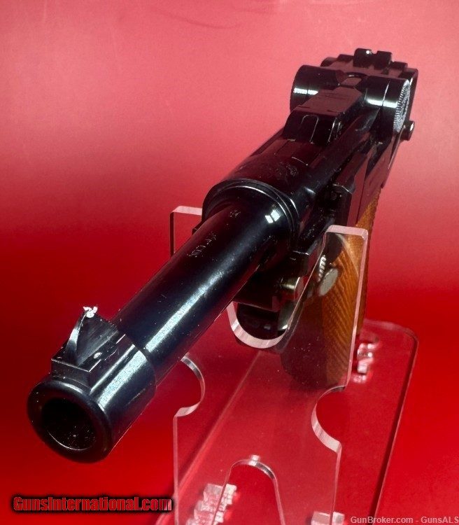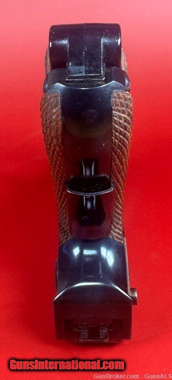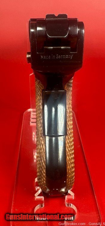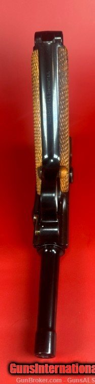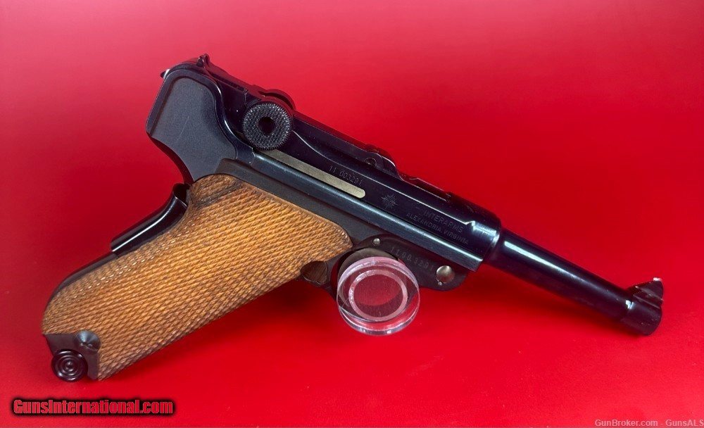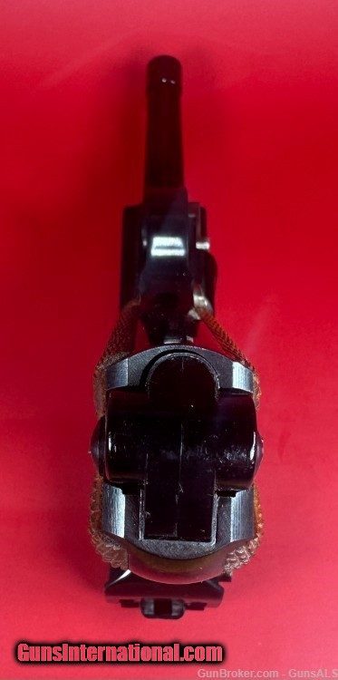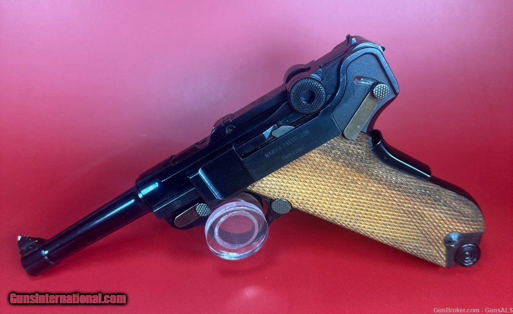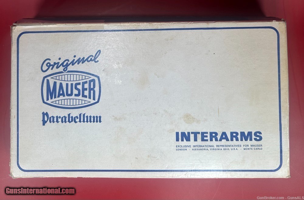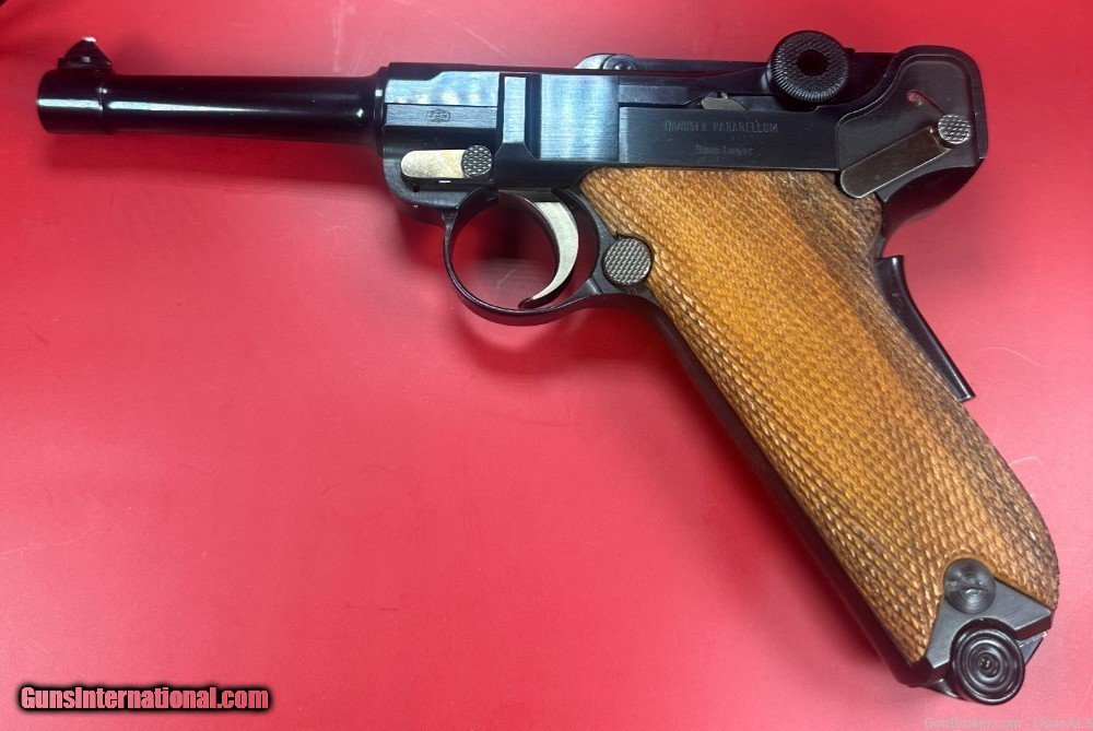 Description: After WWII, the demand for Luger pistols gradually picked back-up and copies of the original Luger pistols were made by Mauser as well as Stoeger. This pistol was made by Mauser and imported by Interarms. It has a grip safety as well as a manual safety and an American Eagle seal stamped on the top of the chamber ring. For sale Mint condition West German made Mauser-Werke “Original Mauser” Parabellum 9MM pistol with original matching box, manual, test target, two magazines and tools. Perfect original high polish blue finish with perfect mechanics and shiny bore. Box is numbered and matches the pistol. This gun will make a great addition to any collection. Manufacturer: Mauser-Werke A.G. Oberndorf a.N Caliber: 9mm Luger Finish: Blue Barrel Length: 4" Optics/Sights: Serrated Ramp Front with U-Notch Rear Stock/Grips: Fully Checkered Walnut Grips Action: Semi-Automatic Markings: Standard / The top of the frame is stamped with the American Eagle Seal. The left side of the frame is stamped “Mauser Parabellum 9mm Luger”. The left side of the frame is also stamped with an “FBM” proof mark. The top of the barrel is stamped “9mm Luger” with the “FBM” proof mark. The toggle is stamped "Original Mauser". The right side of the frame is stamped “Interarms Alexandria, Virginia”. The rear of the frame is stamped “Made In Germany”. The fore strap of the grip frame is marked “MAUSER-WERKE A.G. Oberndorf a.N Layaway and no interest payment plan are available. SOLD Handgun Caliber: 9x19mm Parabellum (9mm Luger, 9x19mm NATO) |