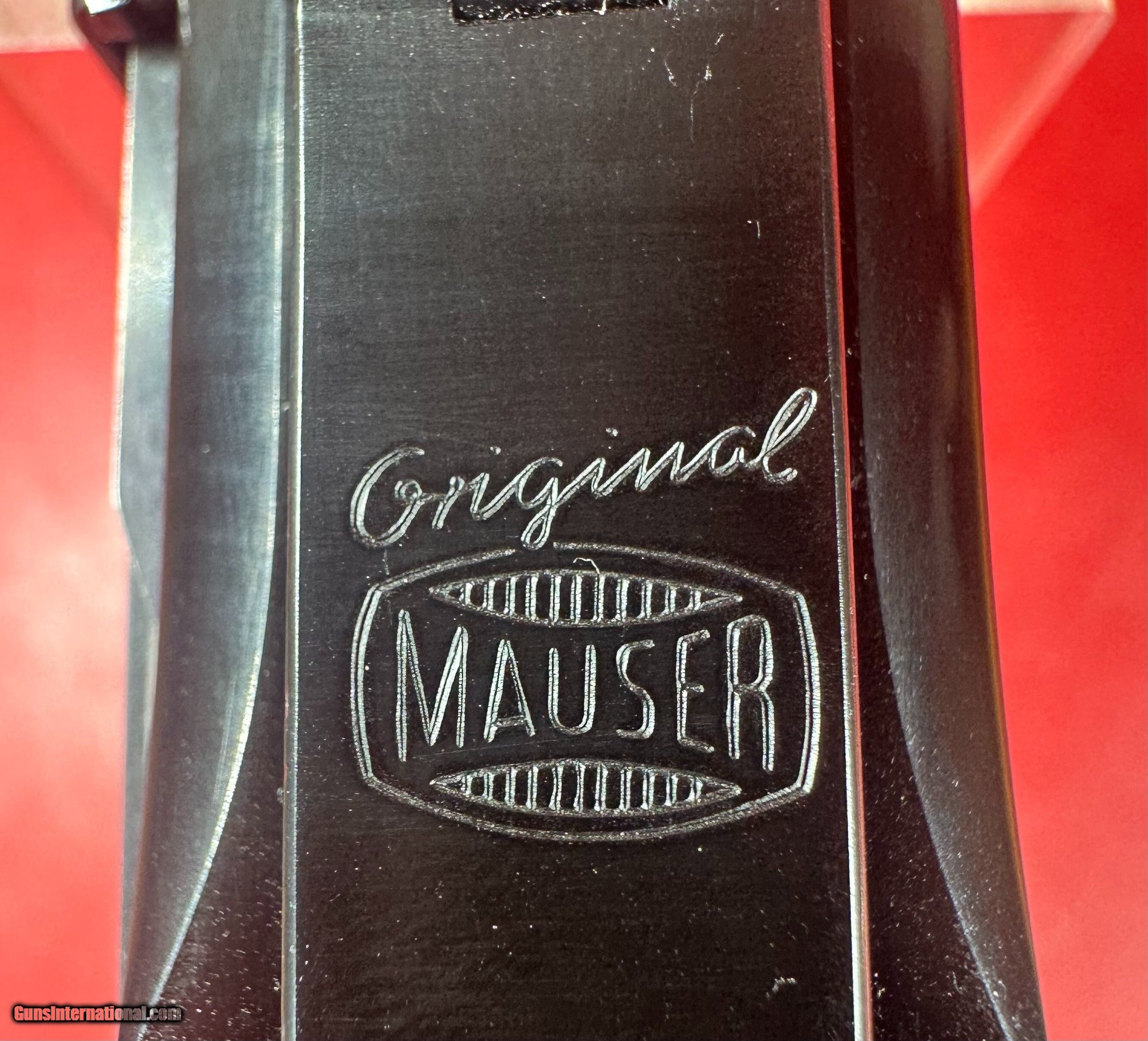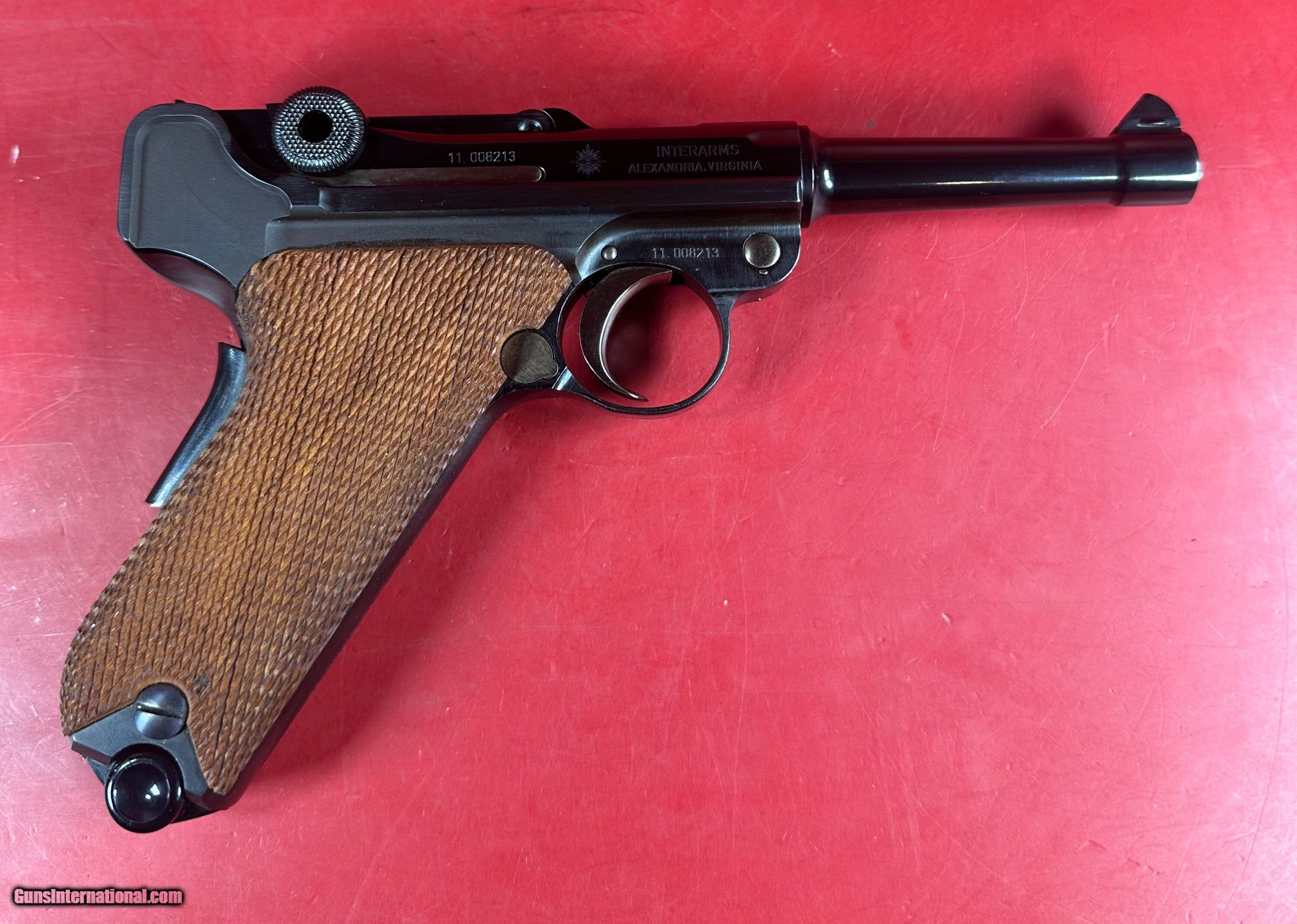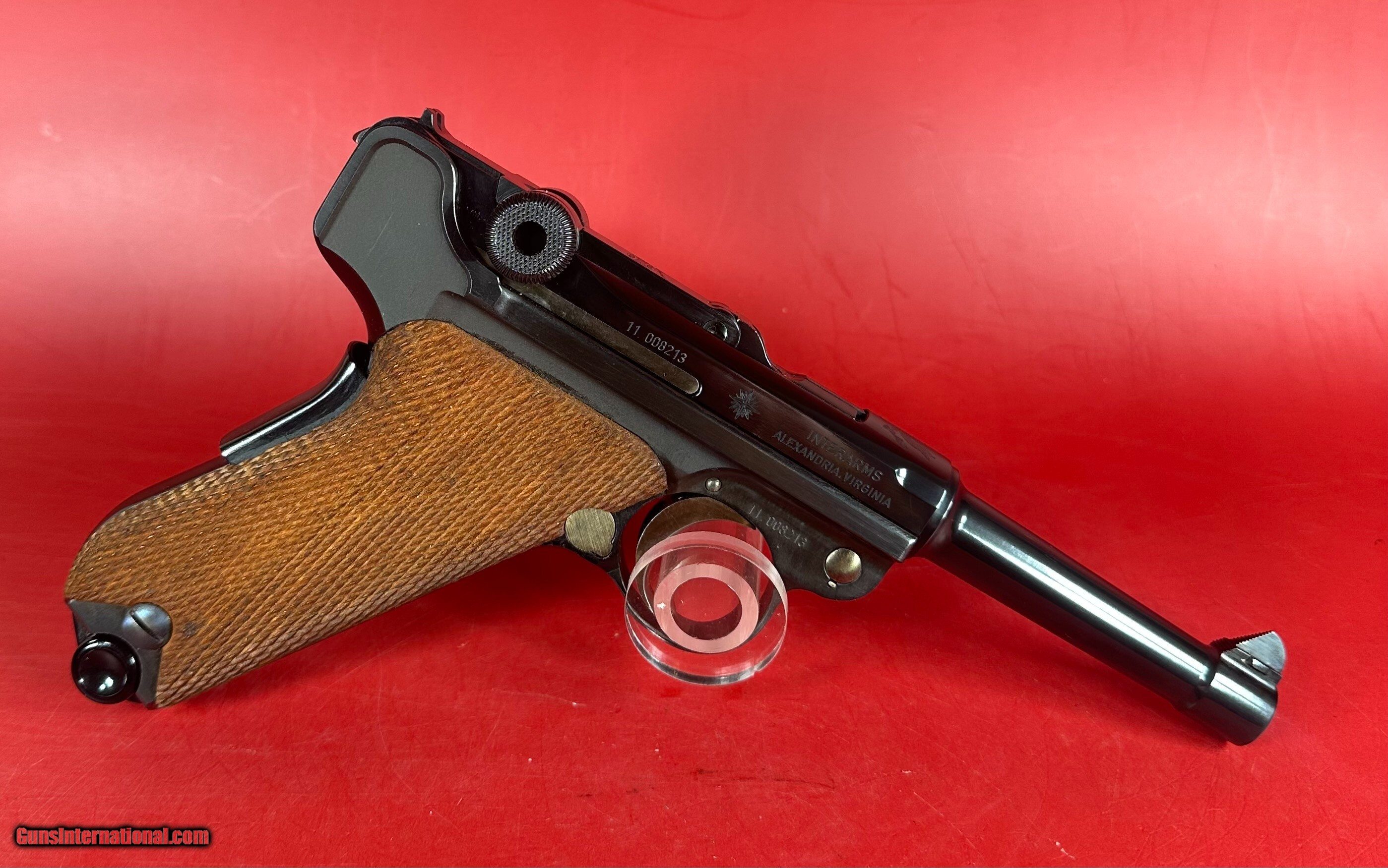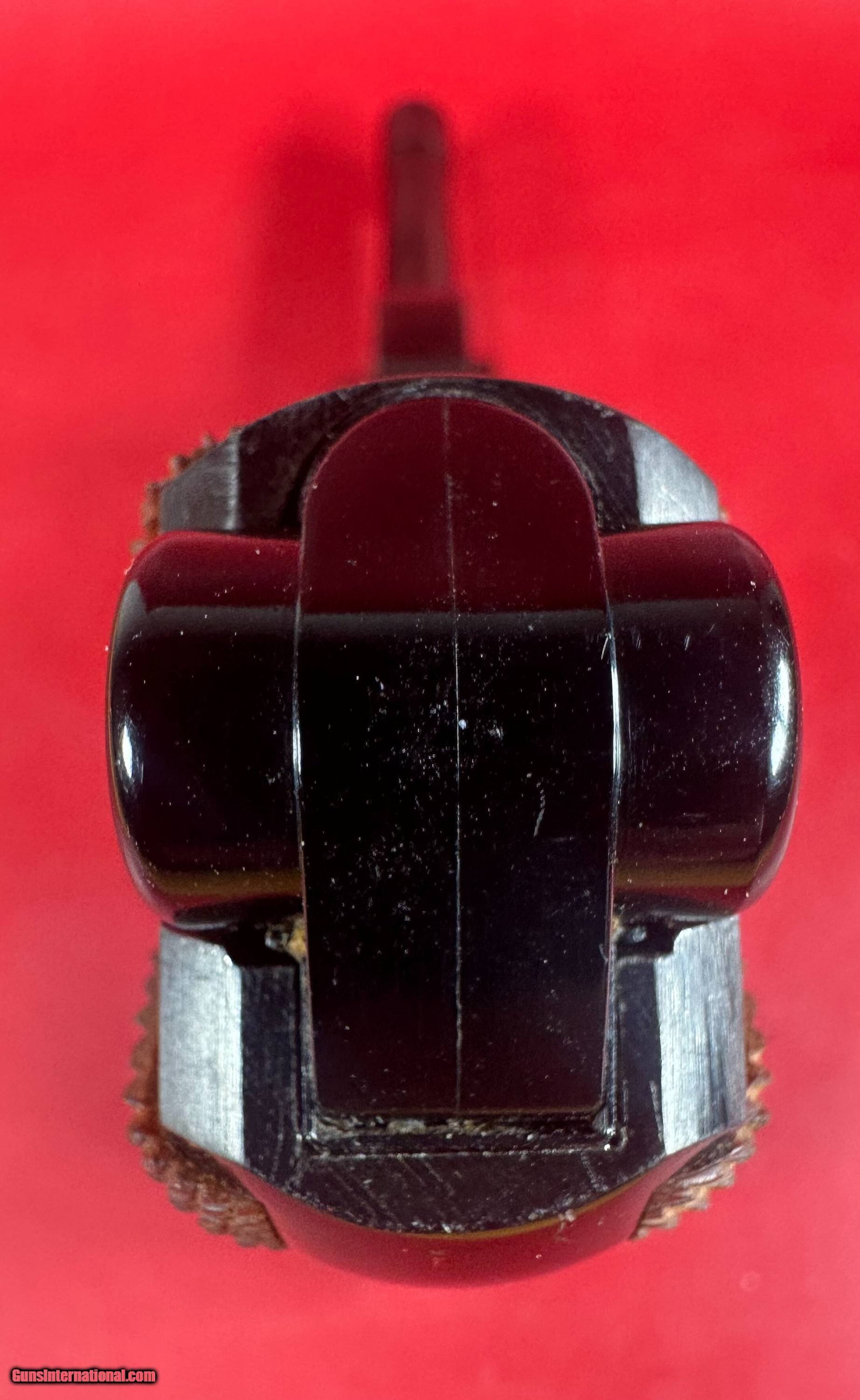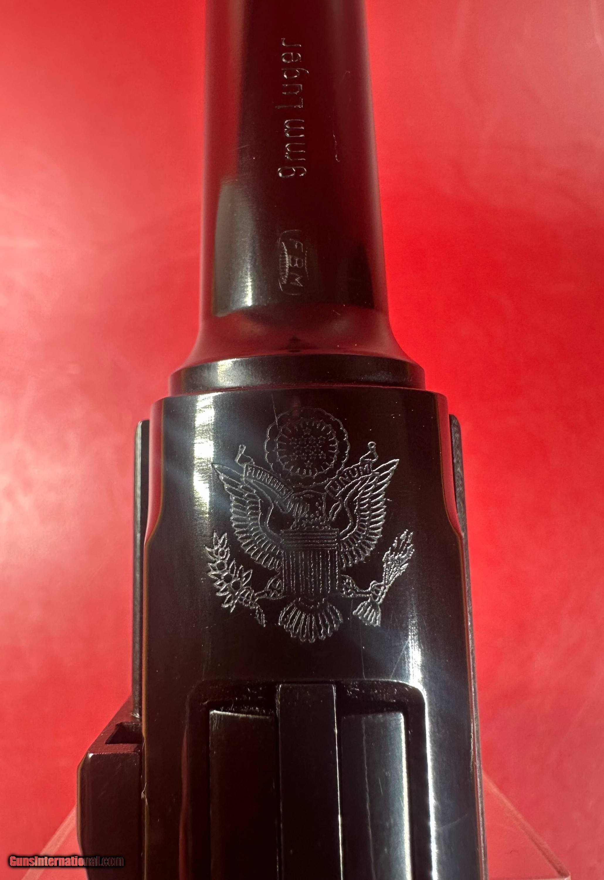 Description: After WWII, the demand for Luger pistols gradually picked back-up and copies of the original Luger pistols were made by Mauser as well as Stoeger. This pistol was made by Mauser. For sale Near Mint condition West German made Mauser-Werke “Original Mauser” American Eagle Parabellum 9mm Luger pistol 4" BBL with original matching box, manual, two magazines and tools. It has a grip safety as well as a manual safety. Perfect original high polish blue finish with perfect mechanics and shiny bore. Finish and grips are about 99%. Box is numbered and matches the pistol. This gun will make a great addition to any collection. C&R eligible. Manufacturer: Mauser-Werke A.G. Oberndorf a.N Caliber: 9,mm Luger Finish: Blue Barrel Length: 4" Optics/Sights: Serrated Ramp Front with U-Notch Rear Stock/Grips: Fully Checkered Walnut Grips Action: Semi-Automatic Layaway and no interest payment plan are available. SOLD Handgun Caliber: 9x19mm Parabellum (9mm Luger, 9x19mm NATO) |