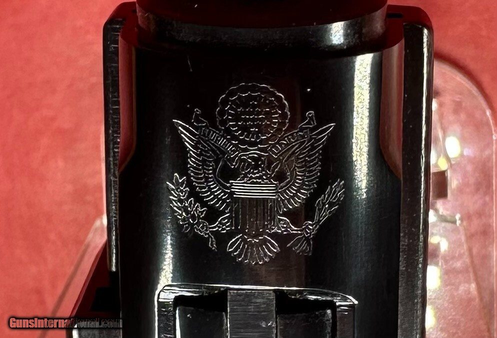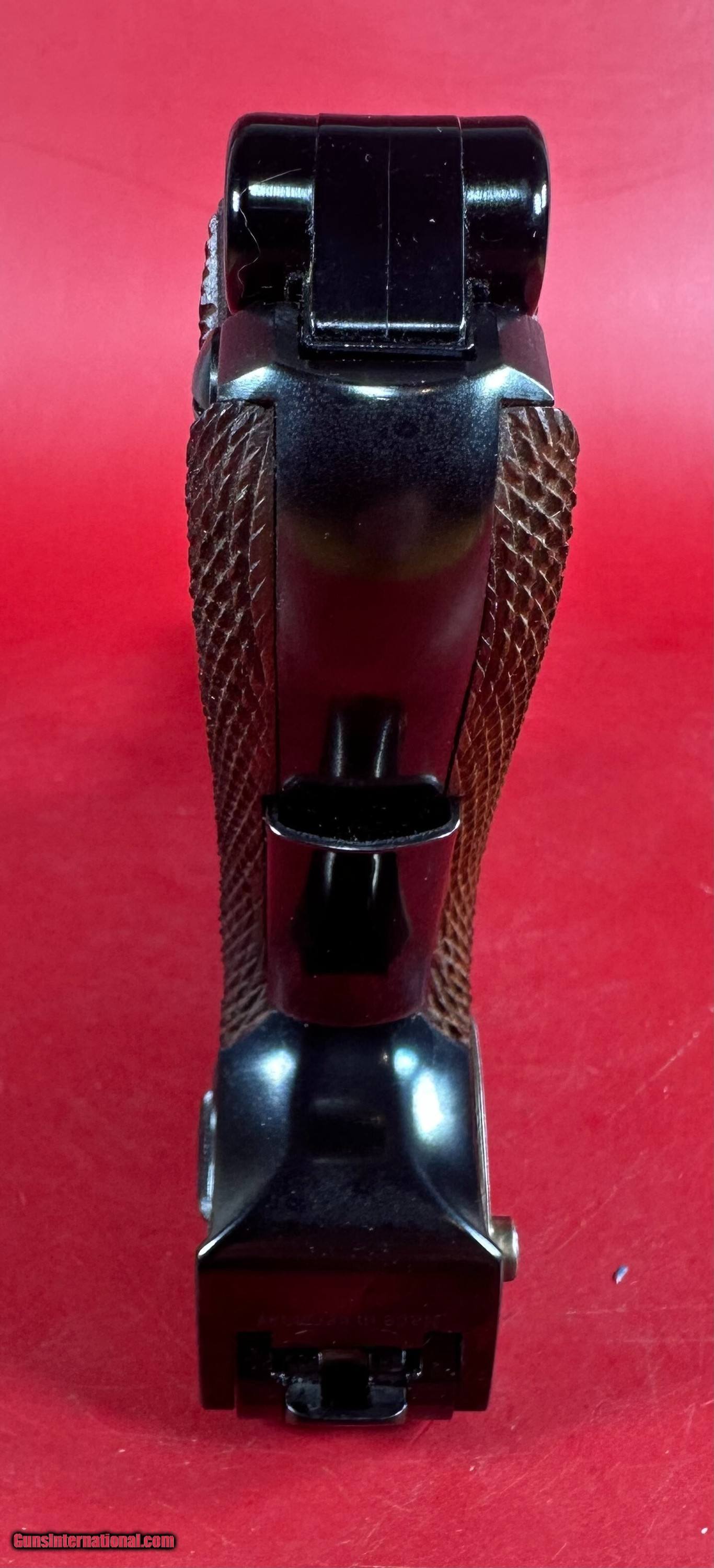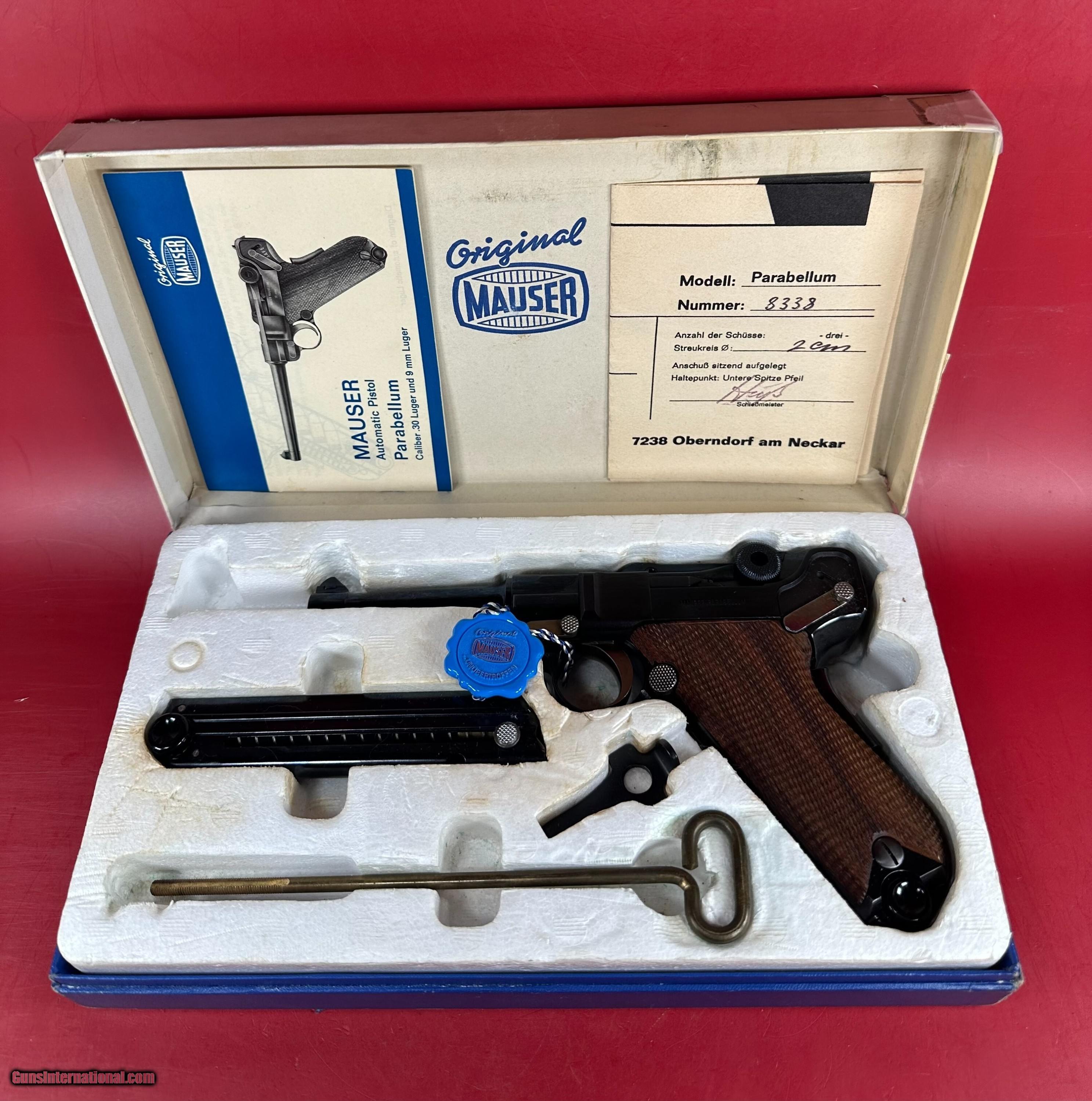 Description: After WWII, the demand for Luger pistols gradually picked back-up and copies of the original Luger pistols were made by Mauser as well as Stoeger. This pistol was made by Mauser. For sale Near Mint condition West German made Mauser-Werke “Original Mauser” American Eagle Parabellum 9mm Luger pistol 4" BBL with original matching box, manual, test target, two magazines and tools. It has a grip safety as well as a manual safety. Perfect original high polish blue finish with perfect mechanics and shiny bore. Finish and grips are about 99%. Box and target are numbered and matches the pistol. This gun will make a great addition to any collection. C&R eligible. Manufacturer: Mauser-Werke A.G. Oberndorf a.N Caliber: 9,mm Luger Finish: Blue Barrel Length: 4" Optics/Sights: Serrated Ramp Front with U-Notch Rear Stock/Grips: Fully Checkered Walnut Grips Action: Semi-Automatic Layaway and no interest payment plan are available. Curio/Relic: Yes Handgun Caliber: 9x19mm Parabellum (9mm Luger, 9x19mm NATO) Price: $2,299.00 Shipping: $39.00 Contact Seller |