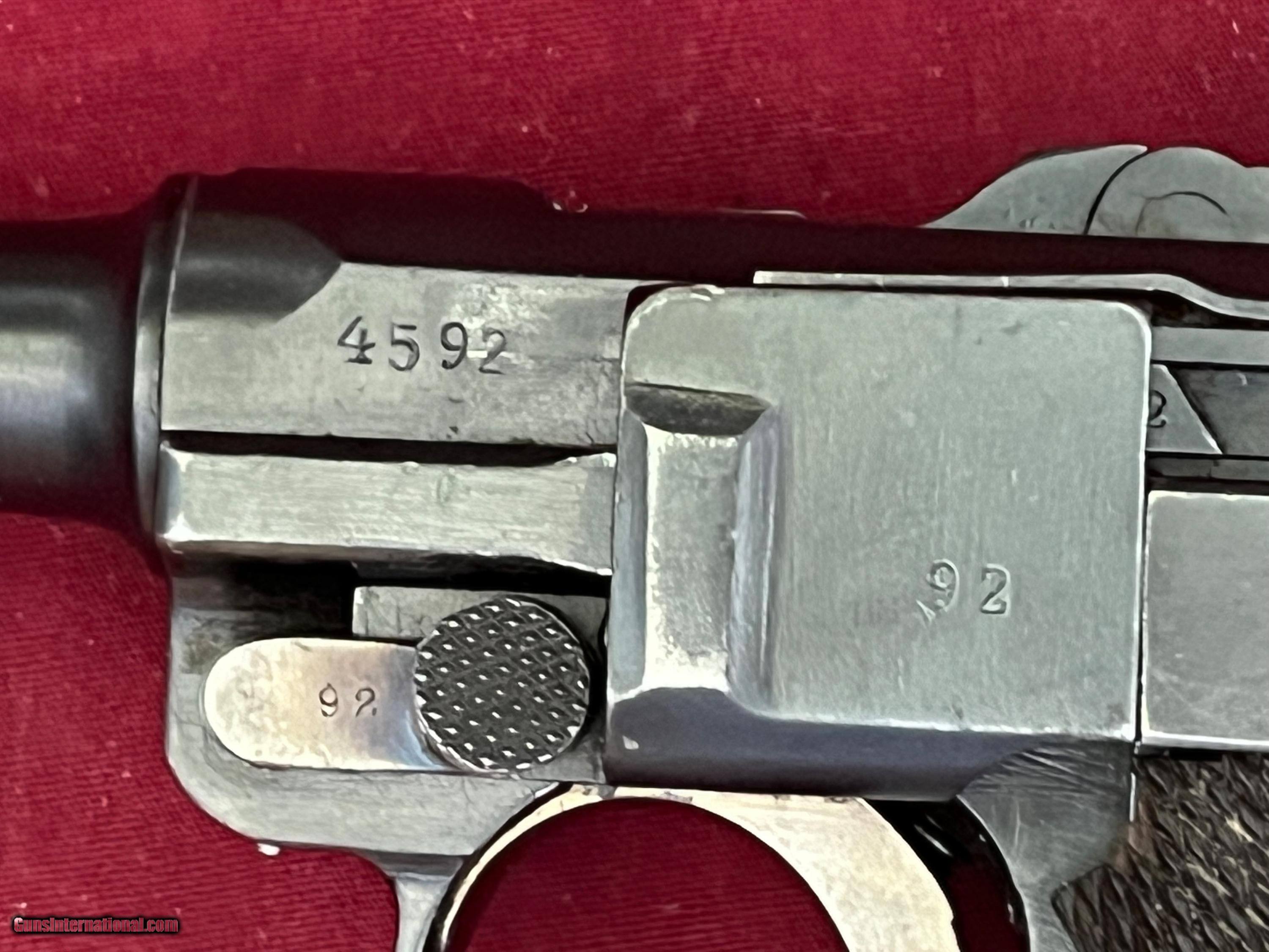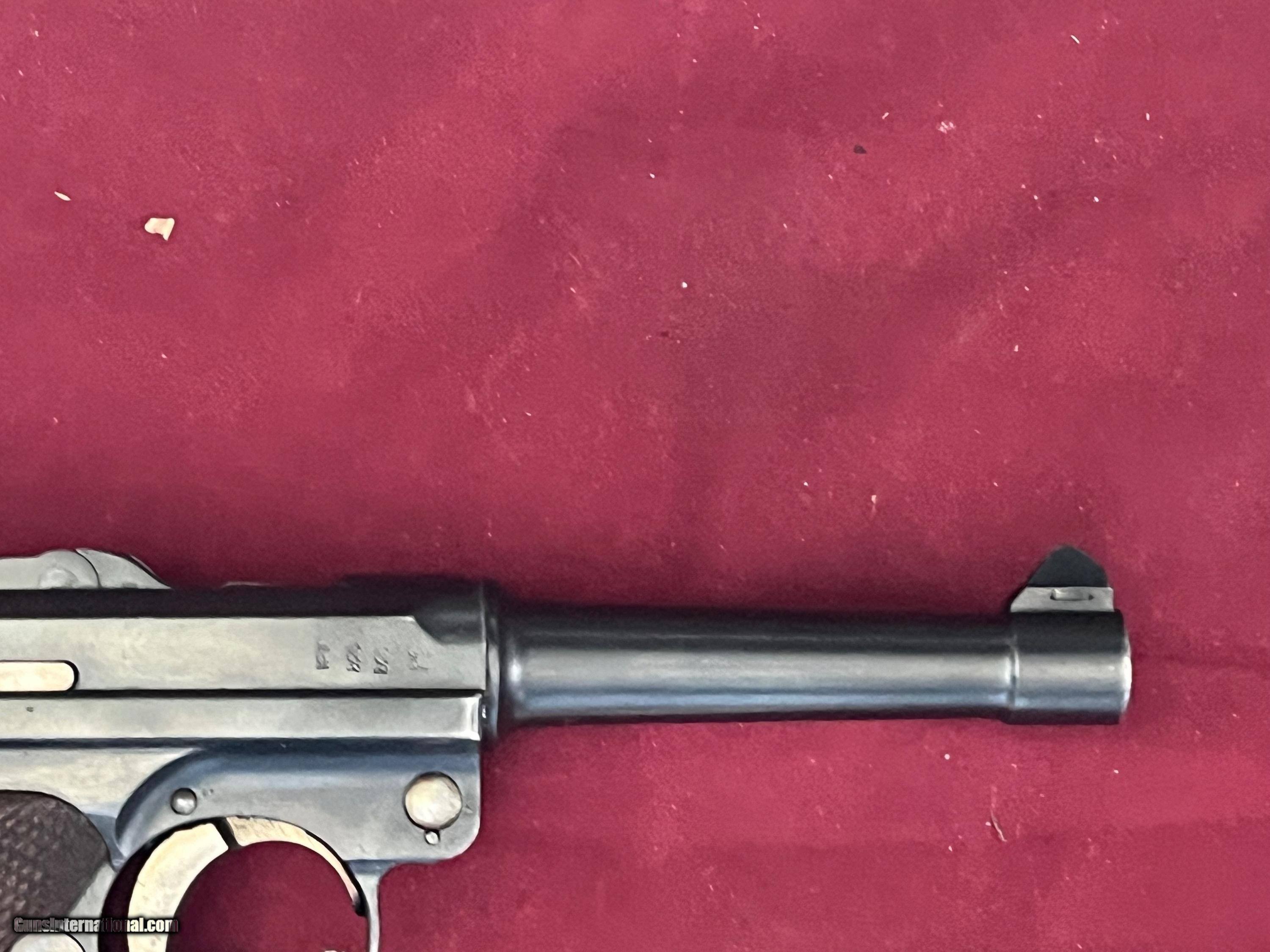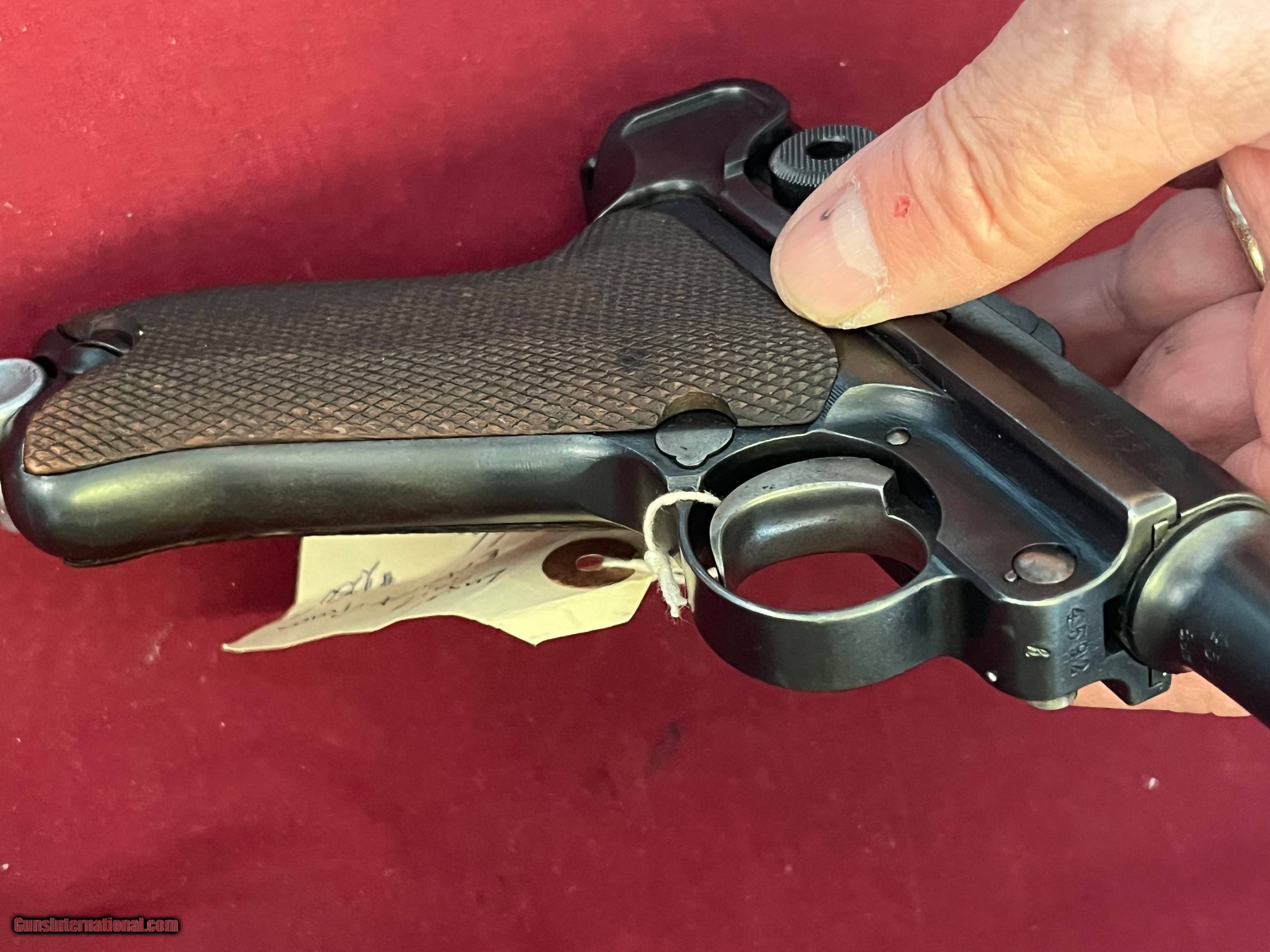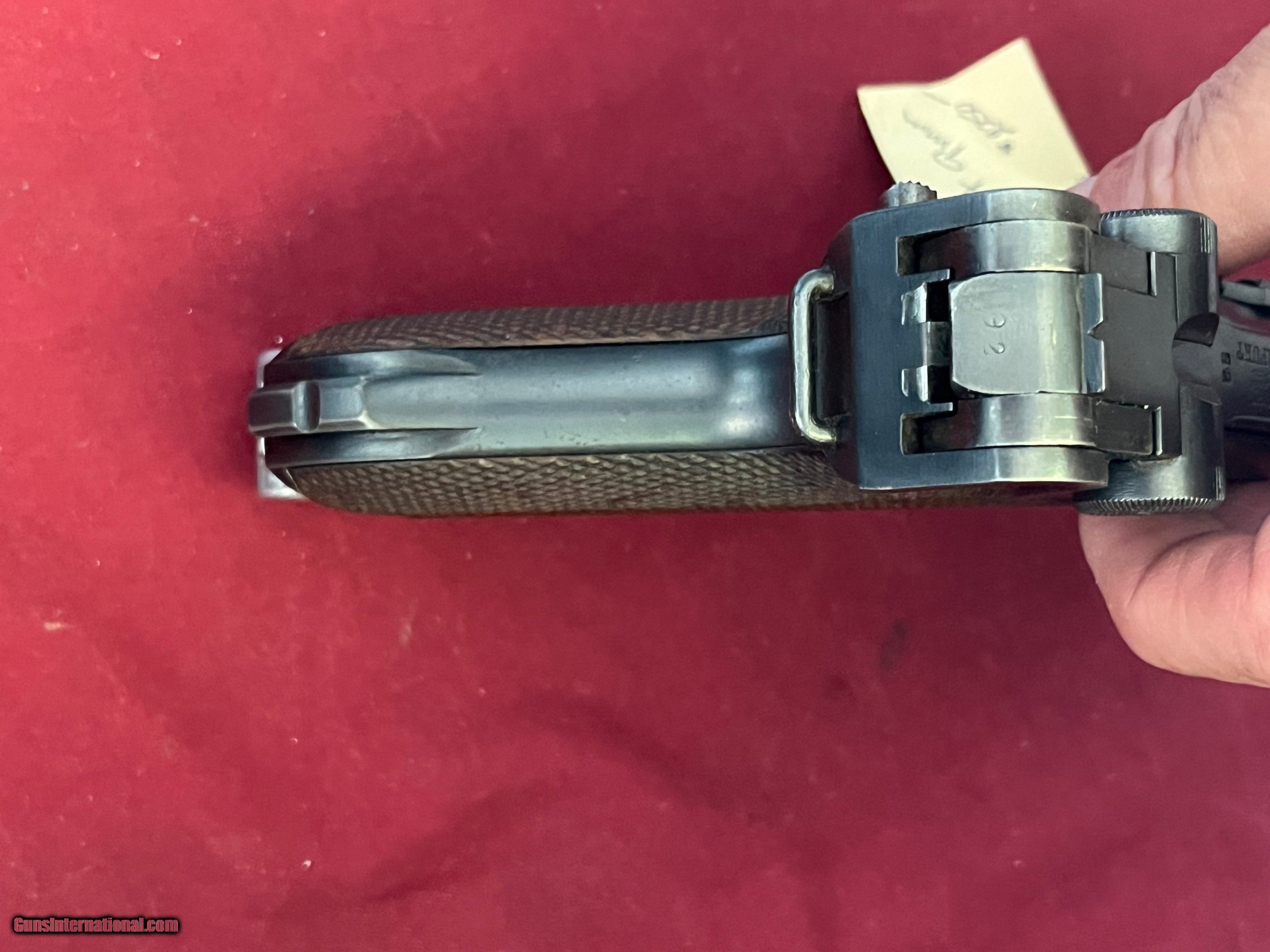 Description: GERMAN WWI ERFURT P08 LUGER SEMI AUTO PISTOL , SER# 4592h ( MATCHING NUMBERS) . CALIBER 9MM, VERY GOOD BORE, ORIGINAL BLUE FINISH. GOOD SOLID GRIPS WITH A SMALL CHIP LEFT SIDE TOP FRONT CORNER, ALUMINUM MAGAZINE WITH ALUMINUM POMMEL NUMBERED 4592. VERY GOOD TIGHT ACTION THAT FUNCTIONS FINE. EASTERN BRANCH FIREARMS ADD 50.00 SHIPPING – NEXT DAY AIR SHIPPING ADD 50.00 SHIPPING – LONG GUNS GROUND OPTIONAL INSURANCE IS AVAILABLE AT 1.25 PER 100.00 Questions e-mail or call Glen at Eastern Branch Firearms 207-215-5021 TERMS – PLEASE READ BEFORE I DO NOT HAVE A LAYAWAY OPTION ( WE ACCEPT CREDIT CARDS ) -- I GET ALOT OF REQUEST FOR TRADES, I WOULD PERFER NOT TO DO TRADES ON MY INTERNET LISTINGS PAYMENT OPTIONS- We accept money orders, cashier’s checks , bank checks. sorry no personal checks. We accept all major credit cards please add 3% to the ’s cash discount price.(Shipping within the state of Florida - Florida Residents must pay sales tax) .Handguns and long guns do need to be shipped separate. PLEASE do not send payment via FED EX . USPS & UPS are fine. Thank you. We include a signed copy of our FFL with each firearm shipped. SAFTY NOTICE- Buyer is solely responsible for determining that a used gun is safe to shoot. The firearms offered have not been test fired but have been given a visual inspection only for purposes. It is a requirement that every used firearm is inspected by a qualified gunsmith before firing. By , the buyer agrees to hold seller harmless against damages, injury, or death caused by defective merchandise. RETURN POLICY- All firearms come with a 3-day non firing , non messing with ( turning srews ,taking apart,removing parts, scoping. firing, cleaning or messing with in anyway) inspection/return privilege.Inspection is based on a visual review of the gun to confirm the gun is in the condition stated. In the case of a return, buyer pays all shipping charges & if paid for with a credit card buyer absorbs the 3% credit card charges . So please ask questions BEFORE you bid. Thanks for Looking and Good Luck!! U.S. sales only, no exports…this includes antiques. I will ship to third party for exporting SOLD Curio/Relic: Yes |