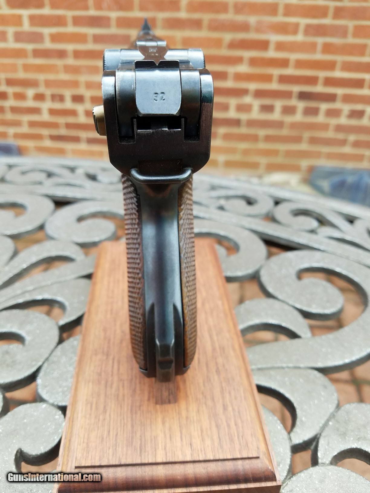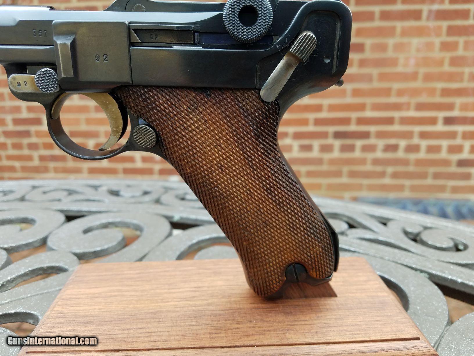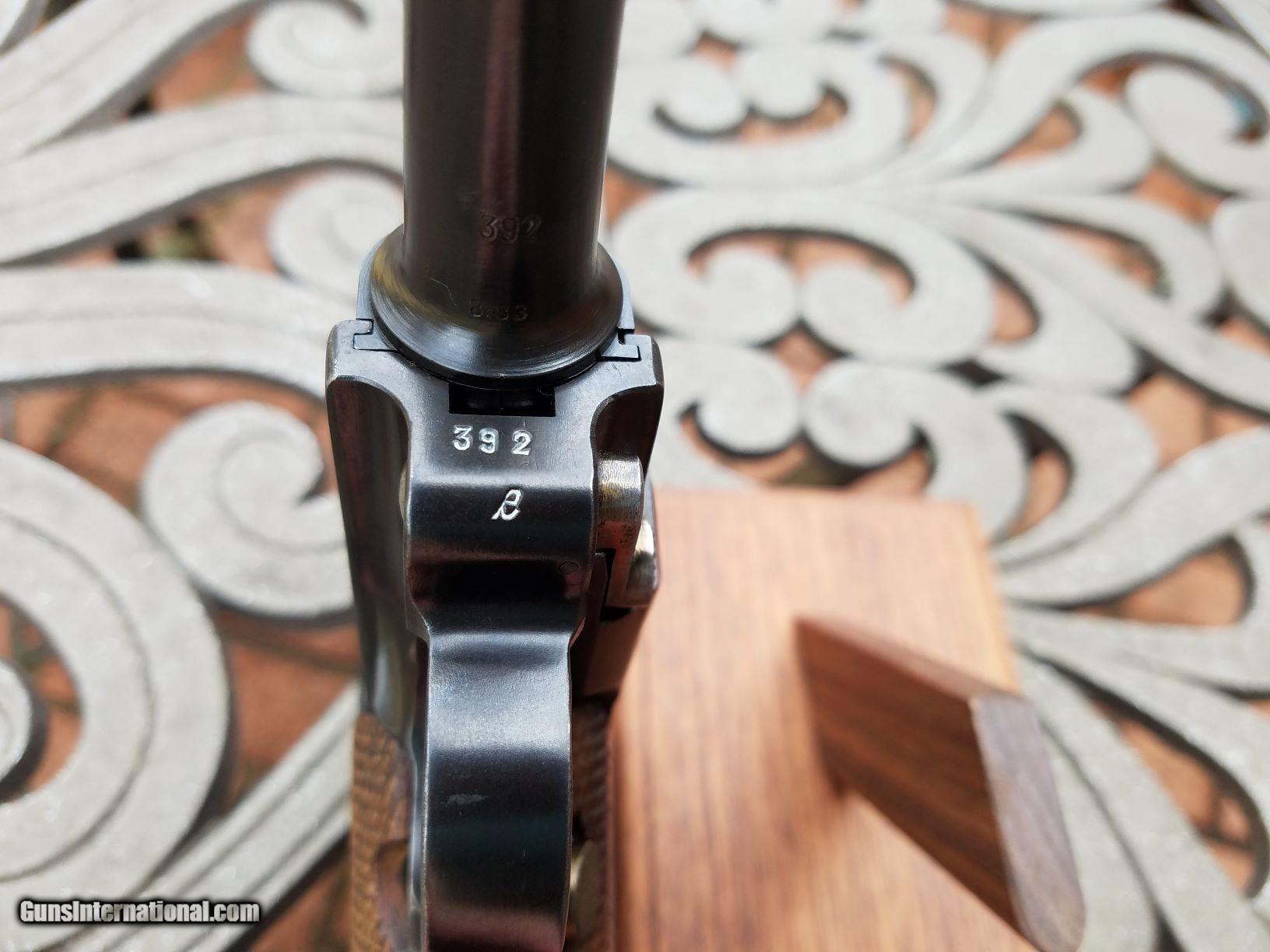 Description: Up for sale a very nice German WWII Luger with a G marked receiver. This is a 1935 production Luger manufactured by Mauser as the Germans began casting off the restrictions of the Versailles Treaty and launching their rearmament campaign. The first two years of Luger production at Mauser used letter codes to identify the year of production, K for 1934 and G for 1935. Only 55,000 Lugers were manufactured in 1935 using letter blocks “a” through “g” making this one of the rarest Lugers next to K date marked guns. Germans numbered production blocks of 1 to 9999 with a letter block, once 9999 was reached it rolled over to the next letter block. These early guns saw a service life of almost 10 years of use in the Wehrmacht including 6 years of war and were by far the most popular GI bring back souvenir at the end of the war. This Luger is from the “e” block making it a late summer production. All parts are matching on the gun except the magazine which is a correct early style magazine but is from the “h” block. The fit, finish and quality of the early guns is exceptionally high and this gun grades very well with only a small amount of holster wear on the high points. Proofs and numbering are clear, action locks up tight, bore is excellent and grip diamonds are very sharp with little wear. A really nice example of an early gun that would be hard to upgrade. If you have any questions or need additional pictures just let me know. Pistol includes a 3-day non-firing inspection period Pistol must ship to an FFL Shipping is $20 for USPS Priority Mail Large Flat Rate box. Insurance is additional. Alaska and Hawaii shipping is at cost. No International Sales. SOLD Manufacturer: Mauser Model: Luger P08 Serial Number: 392e Caliber Info: 9mm |
