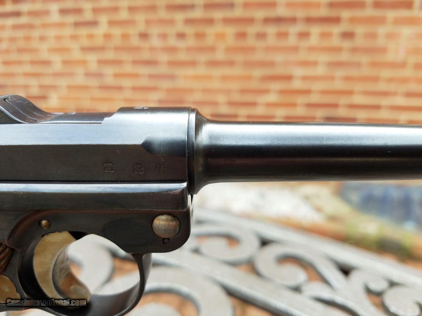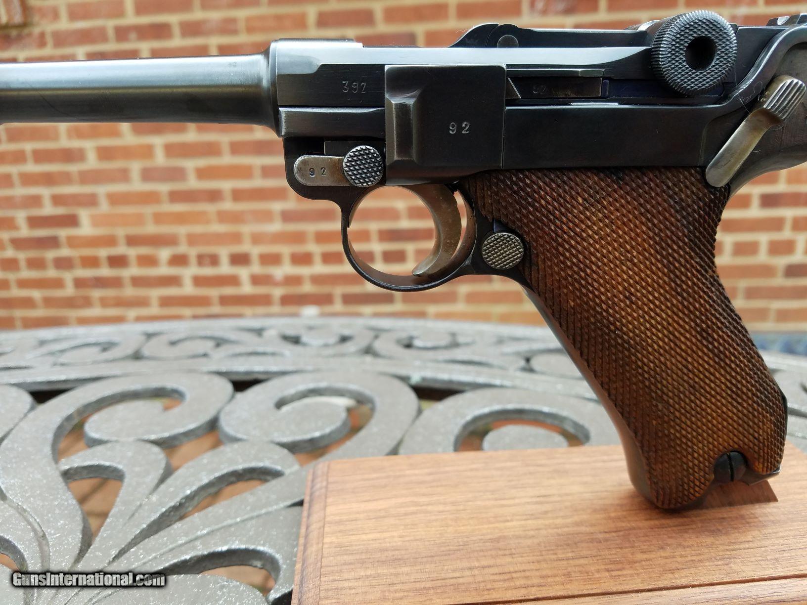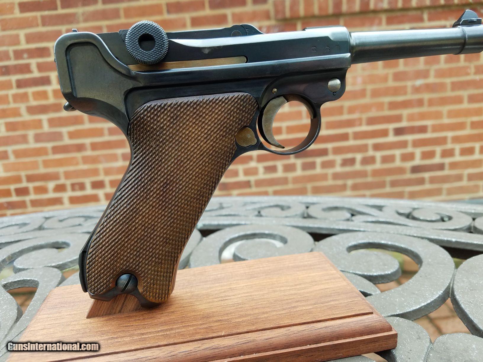 Description: Up for sale a very nice German WWII Luger with a G marked receiver. This is a 1935 production Luger manufactured by Mauser as the Germans began casting off the restrictions of the Versailles Treaty and launching their rearmament campaign. The first two years of Luger production at Mauser used letter codes to identify the year of production, K for 1934 and G for 1935. Only 55,000 Lugers were manufactured in 1935 using letter blocks “a” through “g” making this one of the rarest Lugers next to K date marked guns. Germans numbered production blocks of 1 to 9999 with a letter block, once 9999 was reached it rolled over to the next letter block. These early guns saw a service life of almost 10 years of use in the Wehrmacht including 6 years of war and were by far the most popular GI bring back souvenir at the end of the war. This Luger is from the “e” block making it a late summer production. All parts are matching on the gun except the magazine which is a correct early style magazine but is from the “h” block. The fit, finish and quality of the early guns is exceptionally high and this gun grades very well with only a small amount of holster wear on the high points. Proofs and numbering are clear, action locks up tight, bore is excellent and grip diamonds are very sharp with little wear. A really nice example of an early gun that would be hard to upgrade. If you have any questions or need additional pictures just let me know. Pistol includes a 3-day non-firing inspection period Pistol must ship to an FFL Shipping is $20 for USPS Priority Mail Large Flat Rate box. Insurance is additional. Alaska and Hawaii shipping is at cost. No International Sales. SOLD Manufacturer: Mauser Model: Luger P08 Serial Number: 392e Caliber Info: 9mm |