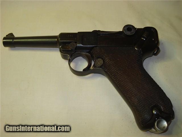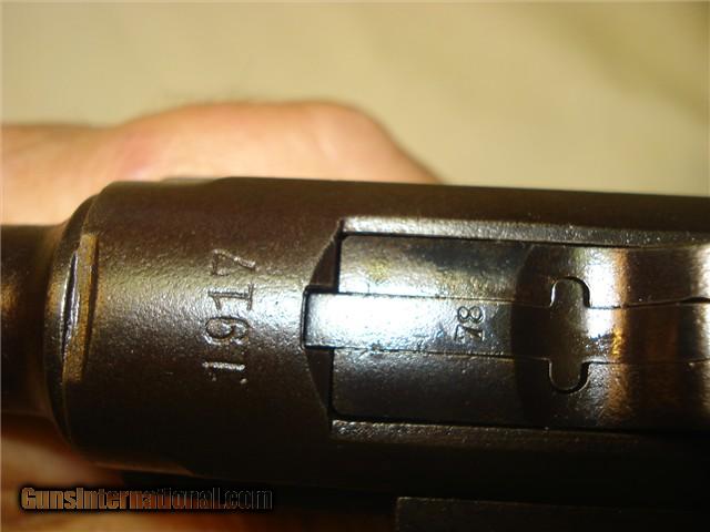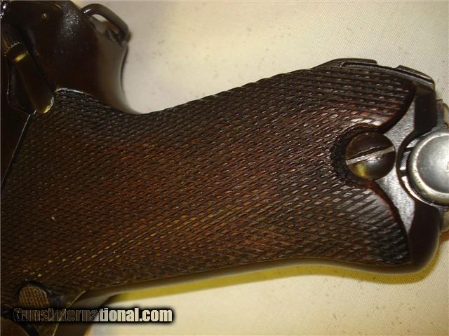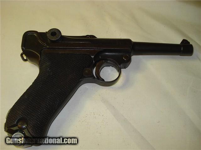 Description: This is a nice early WWI bring back. It is all matching numbers, except for the WWII clip. There is some light salt and pepper corrosion to the finish but it has an overall blue, brown finish. It is a three digit serial number in the T series, 978T. It is marked Erfurt on the toggle and 1917 on top of the chamber. The barrel is bright and shiny. It would fit well in your luger collection or make a fine shooting piece. US only – no International sales. FFL or C&R required! Buyer pays $25.00 shipping. No sales of modern guns to California. Three day inspection allowed if notification is given and item is returned UNALTERED, less shipping. Any weapon you plan to shoot should be inspected by a competent gunsmith before firing. Certified funds only. Please give us a call or email. SOLD Curio/Relic: Yes |