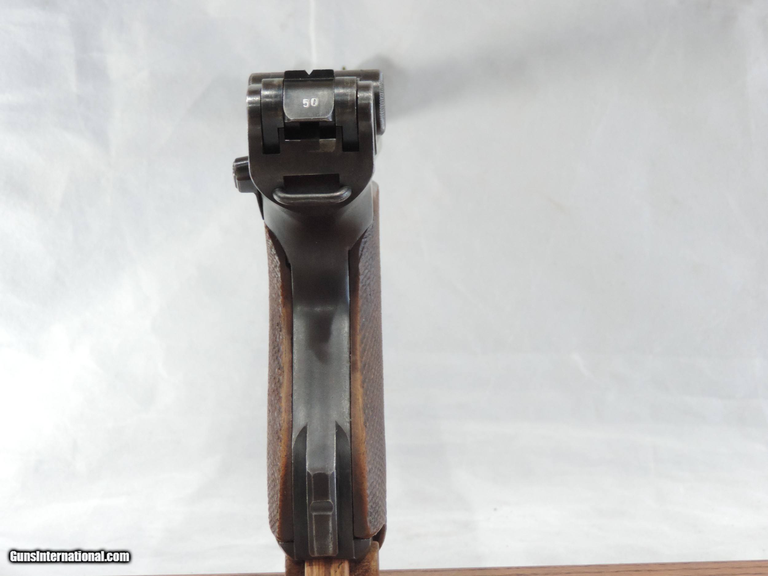 Description: INV. 9356. GREAT, MAUSER LUGER S/42 P-08, CAL 9MM, SER. 7094 o. MFG. 1937. THIS BEAUTY MUST HAVE SPENT IT'S LIFE IN A HOLSTER. IT HAS RETAINED SBOUT 95% OF THE ORIGINAL FINISH. THE LITTLE LOSS THERE IS, IS DUE TO SOME VERY SLIGHT SHARP EDGE SILVERING AND SOME SLIGHT FADING FROM HOLSTER WEAR AND AGE AND THE EVER PRESENT SAFETY LEVER SCRATCH. THE GRIPS STRAPS SHOW NO SIGN OF GRAYING. THE USUAL STRAWED PARTS WERE DISCONTINUED FEBRUARY IN 1937. ALL SERIAL NUMBERS MATCH AND THE GUN HAS THE PROPER WAFFENAMTS. THE GRIP PANELS ARE PERFECT. NO SPLITS, CHIPS, DINGS OR FLATTENED POINTS. THE GRIP SCREWS ARE PERFECT.THE SLIDE RAILS, THE GRIPSCREWS ARE PERFECT. EXTRACTOR, BOLT FACE AND FEED RAMP SHOW LITTLE IF ANY USE. THE BORE IS SUPER LIKE THE REST OF THE GUN, SUNSHINE BRIGHT, WITH RAZOR SHARP RIFLING. NOT A WHISP OF FROST. IT COMES WITH ONE CORRECT MAGAZINE. IF YOU WANT A MINTY P-08 CENTERPIECE FOR YOUR COLLECTION, AS AN INVESTMENT OR FUN AT THE CAMP. THIS GEM IS A REAL FIND, MODESTLY PRICED .....$2495.*** ***1OO% SATISFACTION GUARANTEED. THE HARMLESS WHITE WAX CRAYON IS TO SHOW THE MARKINGS ARE PROPER.. IT IS EASILY REMOVED WITH LIGHTER FLUID AND A BRUSH. WE WILL DO IT ON REQUEST. To purchase this firearm or if you want to request more information contact us at: Email ckguns[at]ymail[dot]com Phone 201-512-0002 Cell 201-575-6838 FAX 201-215-4759 We accept most major credit cards. Prices shown are Discounted 3% for Cash or Check. The buyer must be familiar with all the laws governing the purchase and the ownership of firearms in their own city and state. The Yankee Armorer, Inc is not responsible for any failure to comply with or observe these laws. The Yankee Armorer, Inc will only ship after full payment and receipt of all required documents. Shipping: Add $35.00 for handguns, $45.00 for long guns. New Jersey buyers are subject to a 7% sales tax. The Yankee Armorer, Inc offers a 3 day inspection period with full refund upon return of intact firearm and in the original condition. The Yankee Armorer, Inc offers a no interest lay away program - 25% down; 25% in 30 days; 25% in 60 days; and full payment in 90 days. Any violation of this policy is subject to restocking and forfeiture of all payments. Any variation from this policy must be agreed to in advance. Unshipped Cancelled sales are subject to a 20% restocking fee. Be advised that all firearms sold by The Yankee Armorer, Inc. or the Gun Exchange, LLC (SELLER) are sold as collector’s items. They have not been fired or tested for safety and must be examined by a license gunsmith prior to use. By purchasing any item from the (SELLER), you are agreeing to hold the (SELLER) free from any damages or lawsuits of any nature. Any item left for transfer or storage will be charged to $25.00 per month, per item from the day of its receipt. Any variation from this policy must be agreed to in advance. Store hours 10:00 am to 5:00 pm Tuesday -Saturday. It's always best to call for appointment. Store 201-512-0002, cell 201-575-6838. SOLD |
