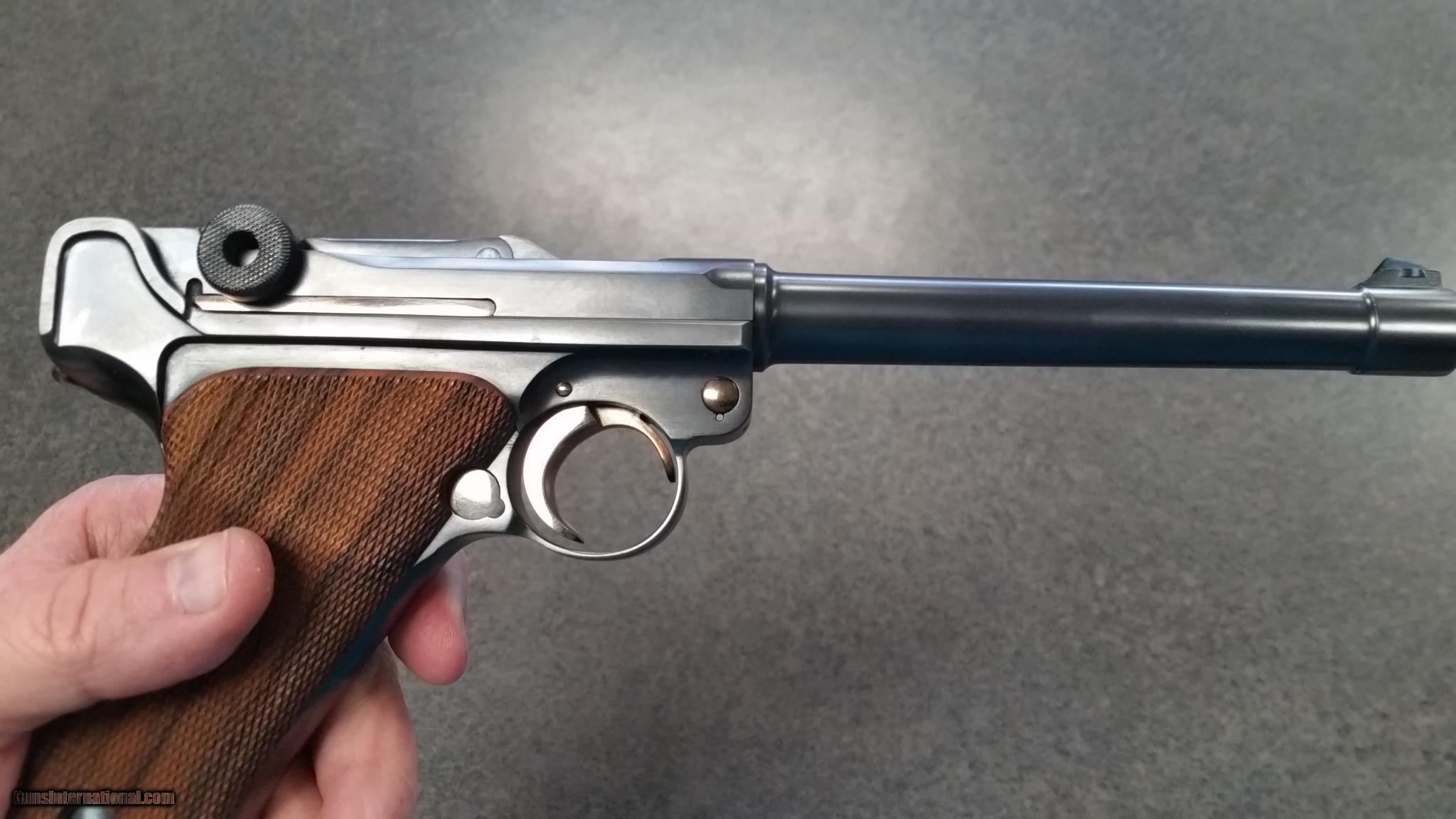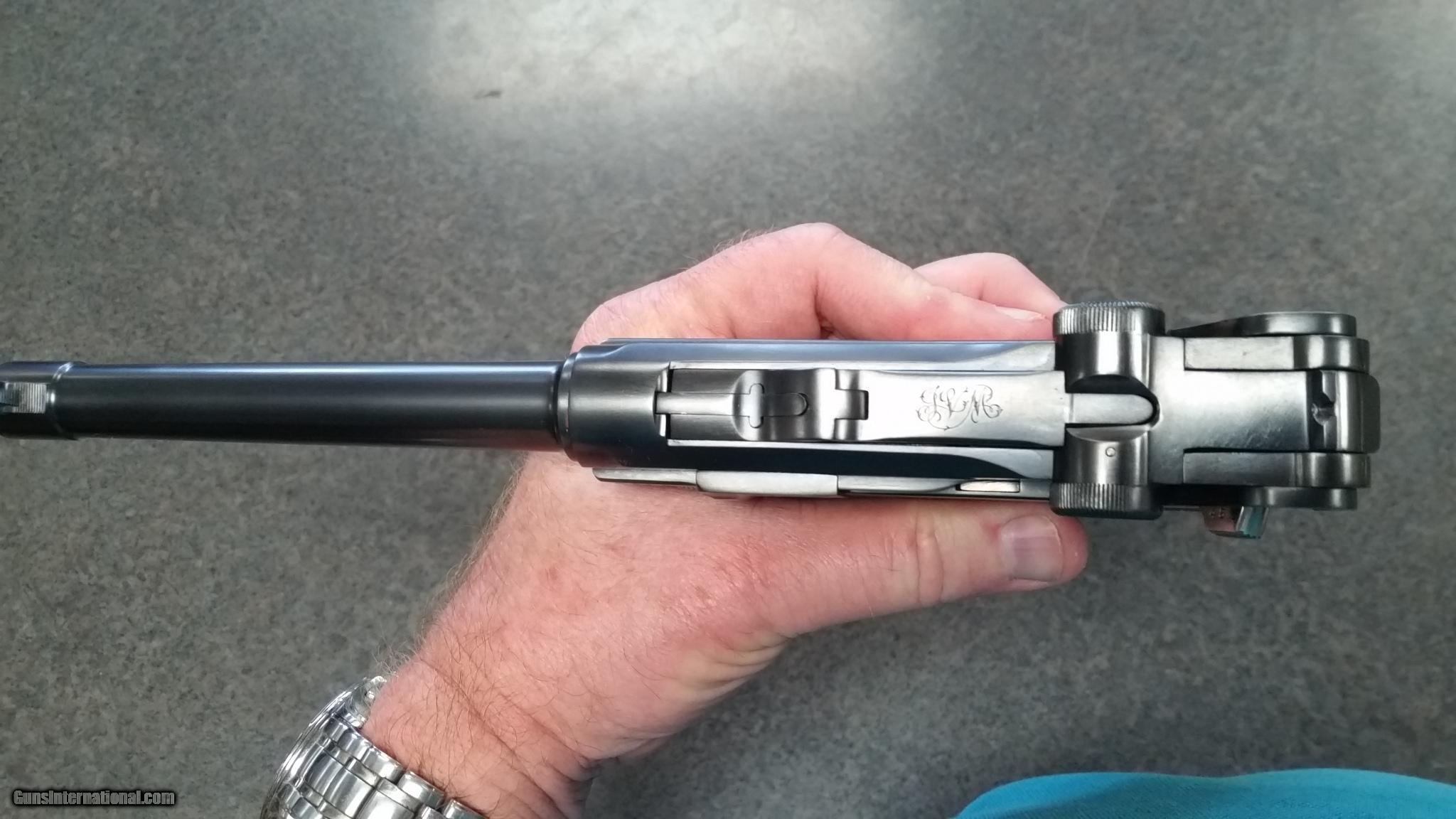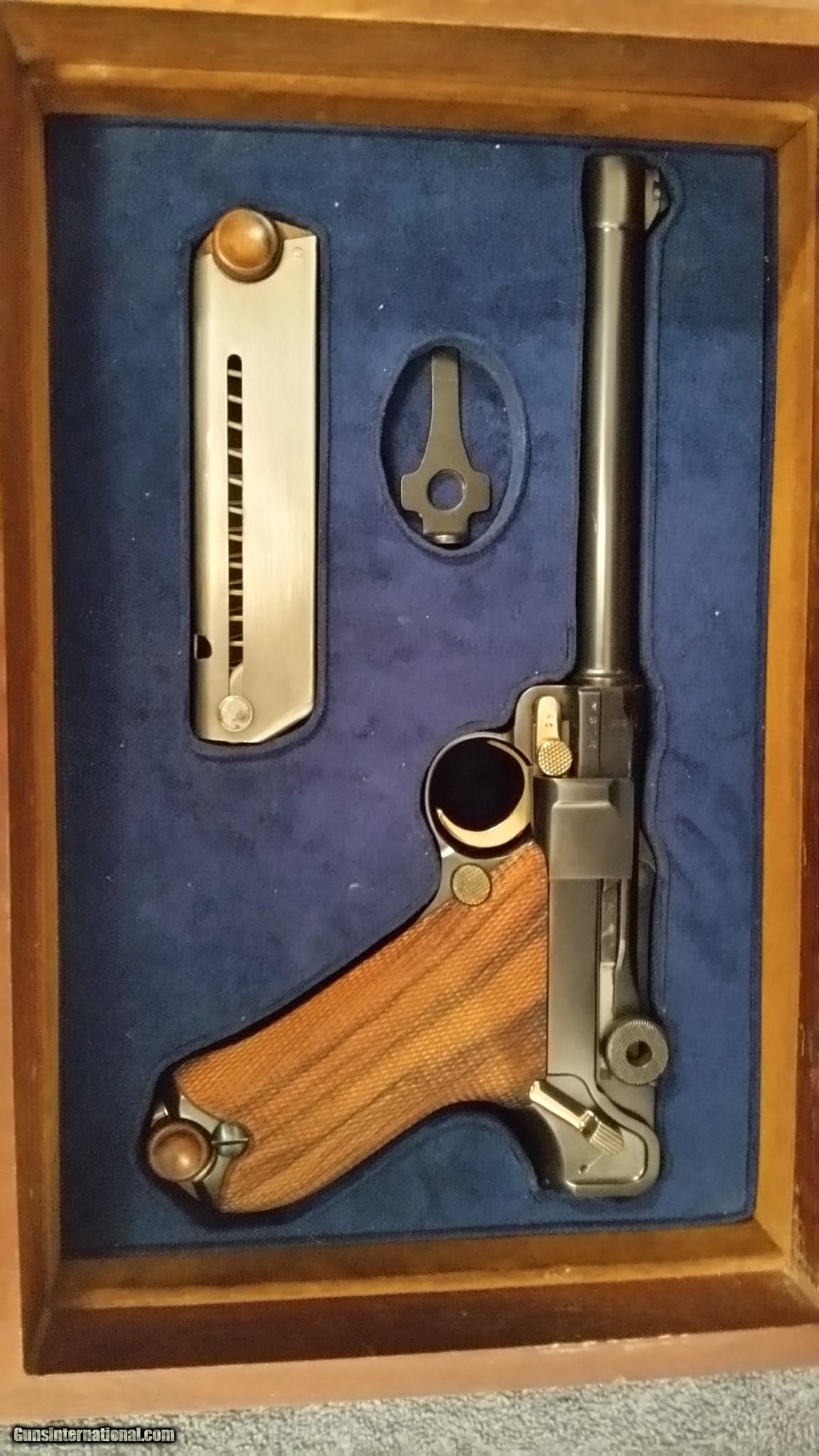 Description: This rare JVM luger is in very nice condition, as the pictures show. comes with the custom case shown. Serial numbers match so far as we can tell. Please give us a call for any questions. Credit card users will be charged 3% premium. Actual shipping costs depend on buyers choice of options and are paid for by buyer. SOLD Manufacturer: DWM Caliber Info: 45ACP |