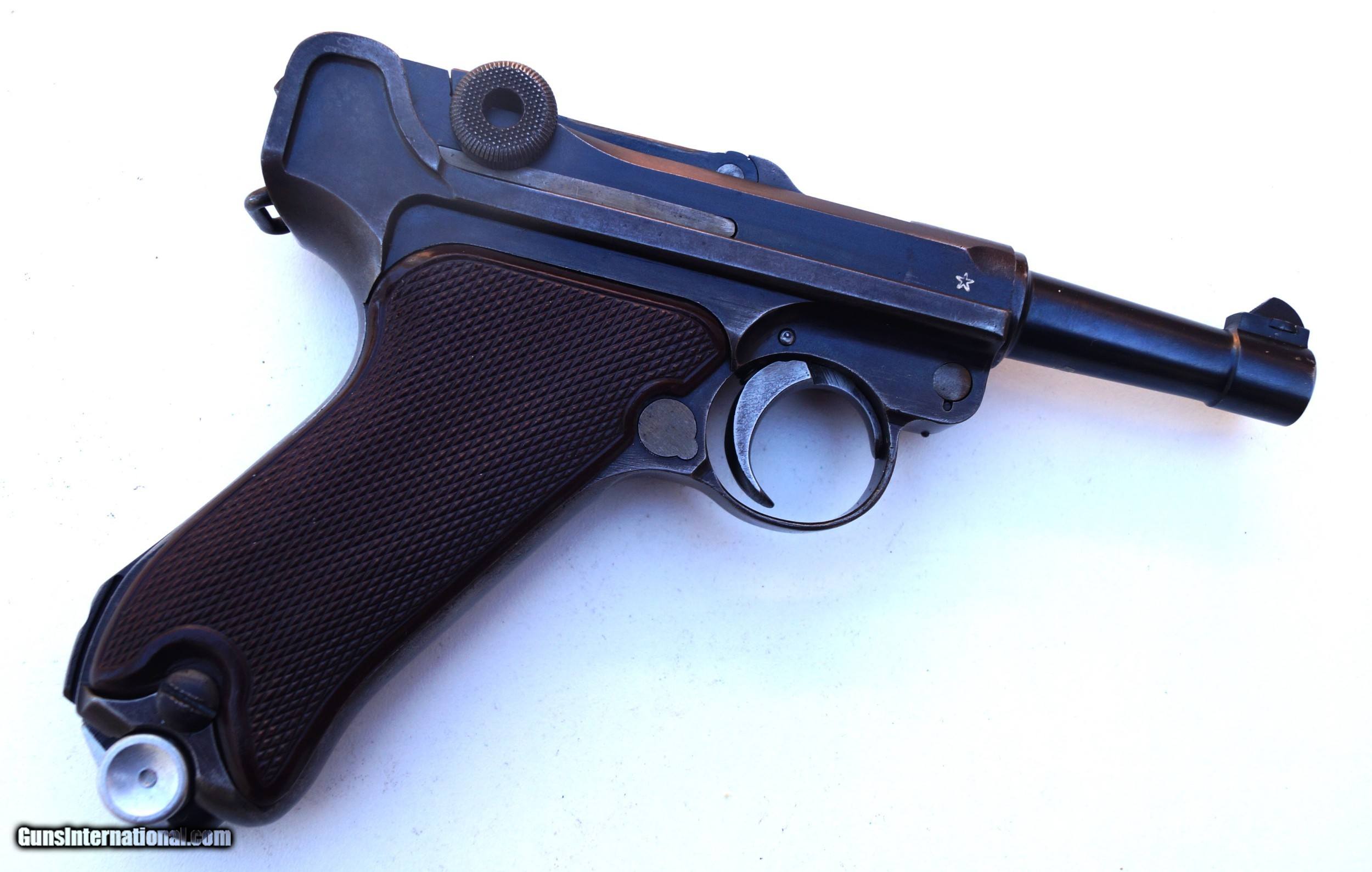 Description: THIS IS A KREIGHOFF COMMERCIAL GERMAN LUGER WITH SHORT BARREL. THE LUGER IS IN VER GOOD CONDITION. ALL ORIGINAL, NUMBER MATCHING, VERY GOOD BORE AND GRIPS, MECHANICALLY CORRECT ( THE GUN WILL SHOOT ). THE METHOD OF SERIALIZING INDICATES MFG. 1935 TO MID 1937. THIS LUGER IS A MUST FOR THE LUGER COLLECTOR, VERY RARE. NOTE: MY SOURCES OF INFORMATION ARE MY OWN KNOWLEDG AND THE BOOKS "THE MAUSER PARBELLUM BY DON R. HALLOCK AND JOOP VAN DE CAMP" PAGES 371-372 & " LUGERS AT RANDOM BY CHARLES KENYON JR." PAGES 316-317. SOLD Curio/Relic: Yes |