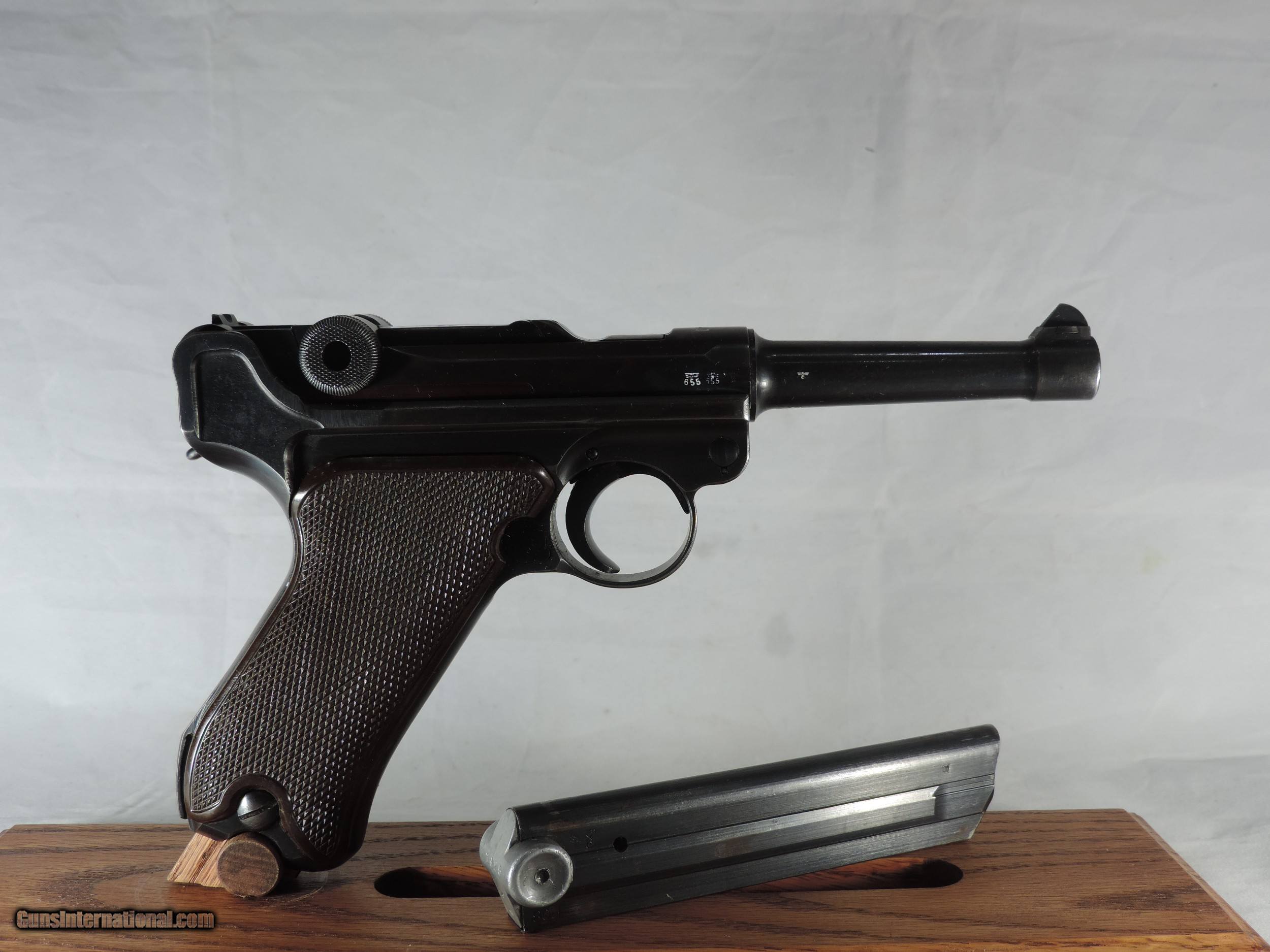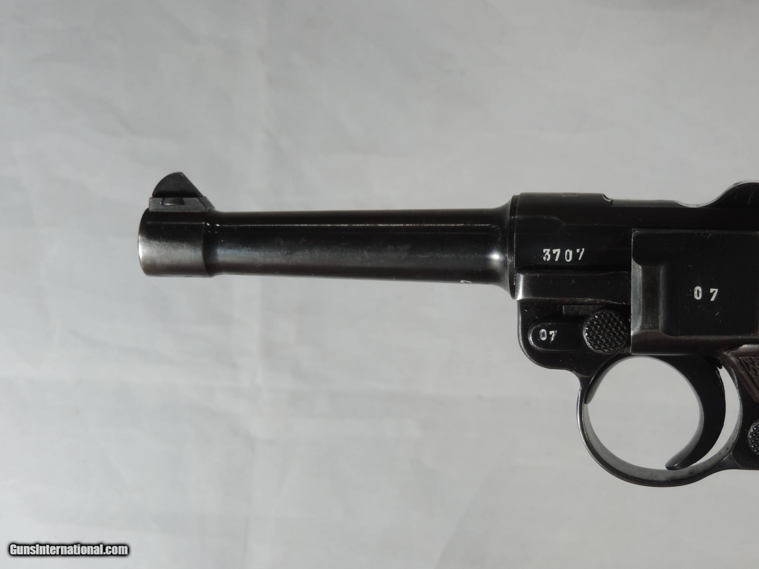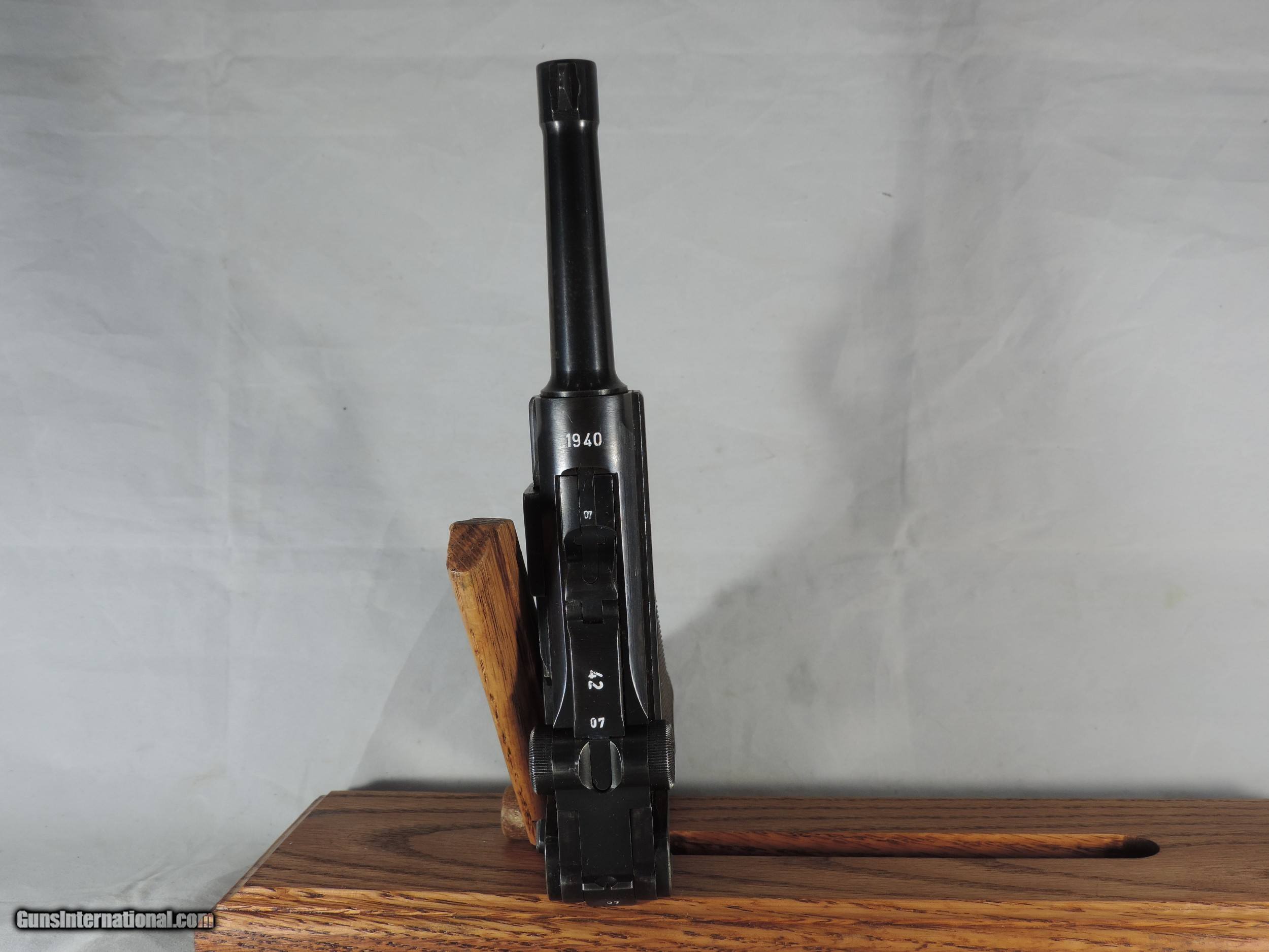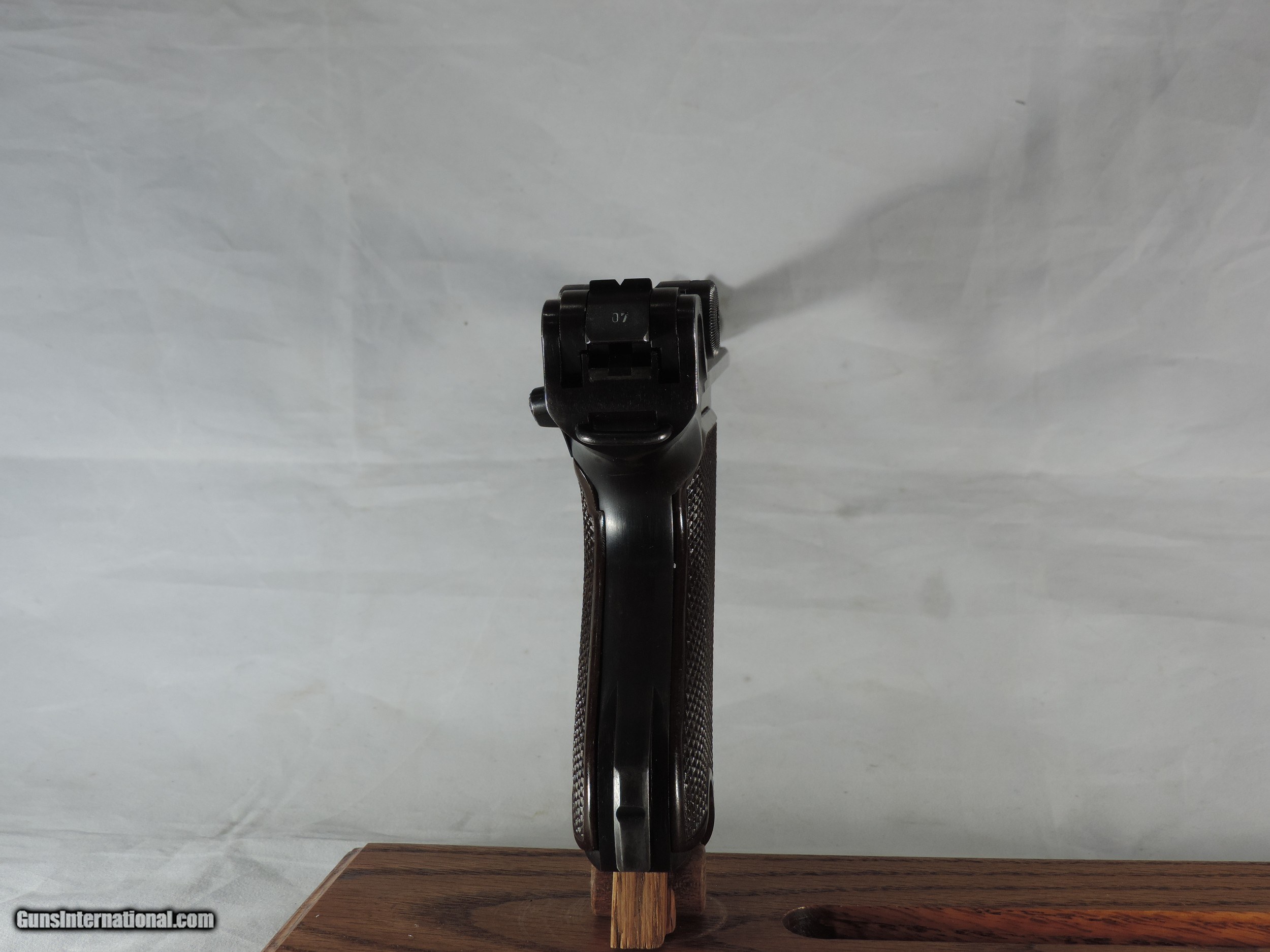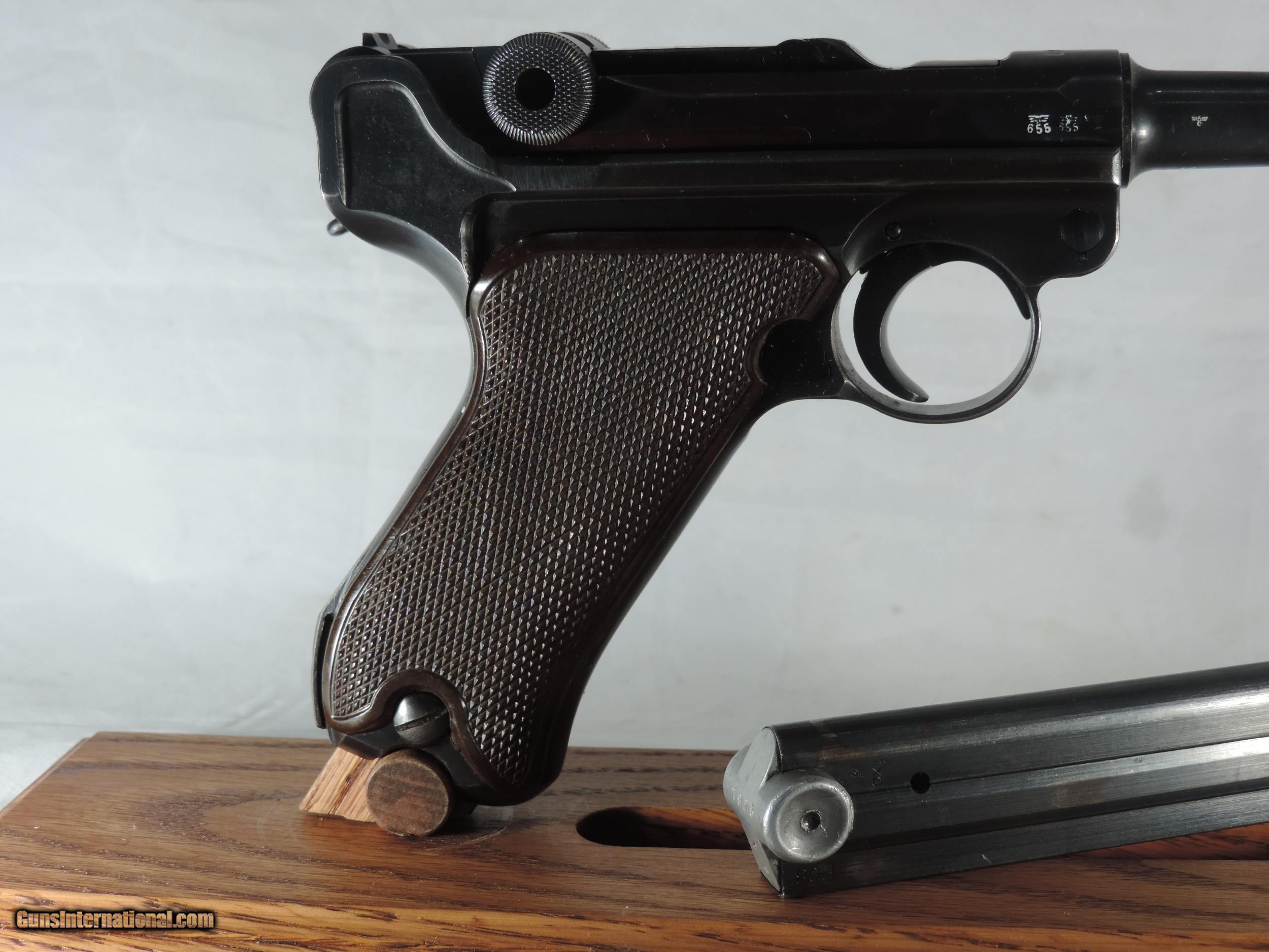 Description: AWESOME KREIGHOFF/MAUSER (P-08) LUGER RIG, 9MM # 3707g, 1940. THIS "TRUNK QUEEN" HAS THE SUPER RARE "KREIGHOFF" GRIPS AND IS IN AWESOME CONDITION. IN 1940 WHEN MAUSER RAN OUT OF WOOD GRIPS NAZI ORDINANCE ORDERED KRIEGHOFF TO SEND THEM 1500 SETS OF PLASTIC SETS OF GRIPS FOR REPLACEMENTS. IN ADDITION IT HAS RETAINED ABOUT 98+% OF THE ORIGINAL BLUE. THE LITTLE LOSS THERE IS, IS FROM SOME VERY MINOR SHARP EDGE SILVERING. THERE IS NO RUST OR SCRATCHES ANYWHERE AND THE GRIP STRAPS SHOW NO SIGN OF GRAYING. ALL NUMBERS MATCH AND IT HAS ALL THE PROPER EAGLE/655 AND EAGLE/SWASTIKA WAFFENAMTS.*** THE KREIGHOFF GRIPS AND GRIPSCREWS ARE PERFECT. THE BOLT FACE, SLIDE RAILS SHOW VERY LITTLE USE. THE BORE IS PRISTINE LIKE THE REST OF THE GUN. MIRROR BRIGHT WITH RAZOR SHARP RIFLING, NOT A BIT OF FROST ANYWHERE. THE RIG COMES WITH AN ORIGINAL BLACK LEATHER HOLSTER IN FINE CONDITION. THE BACK IS STAMPED DIO/42, EAGLE/WAA195, TWO PROPER NON MATCHING MAGAZINES. AND AN ORIGINAL P-08 TAKEDOWN TOOL. A GREAT FIND FOR A EVEN THE MOST CRITICAL COLLECTOR/INVESTOR. MODESTLY PRICED AT.........$4295...SHIPPED** **PURCHASE SATISFACTION GUARANTEED. ***ALL MARKINGS HAVE BEEN WHITE WAXED SO THE BUYER CAN CHECK THEIR AUTHENTICITY. LIGHTER FLUID REMOVES IT QUICKLY. WE WILL DO IT ON REQUEST. To purchase this firearm or if you want to request more information contact us at: Email ckguns[at]ymail[dot]com Phone 201-512-0002 Cell 201-575-6838 FAX 201-215-4759 We accept most major credit cards. Prices shown are Discounted 3% for Cash or Check. The buyer must be familiar with all the laws governing the purchase and the ownership of firearms in their own city and state. The Yankee Armorer, Inc is not responsible for any failure to comply with or observe these laws. The Yankee Armorer, Inc will only ship after full payment and receipt of all required documents. Shipping: Add $35.00 for handguns, $45.00 for long guns. New Jersey buyers are subject to a 7% sales tax. The Yankee Armorer, Inc offers a 3 day inspection period with full refund upon return of intact firearm and in the original condition. The Yankee Armorer, Inc offers a no interest lay away program - 25% down; 25% in 30 days; 25% in 60 days; and full payment in 90 days. Any violation of this policy is subject to restocking and forfeiture of all payments. Any variation from this policy must be agreed to in advance. Unshipped Cancelled sales are subject to a 20% restocking fee. Be advised that all firearms sold by The Yankee Armorer, Inc. or the Gun Exchange, LLC (SELLER) are sold as collector’s items. They have not been fired or tested for safety and must be examined by a license gunsmith prior to use. By purchasing any item from the (SELLER), you are agreeing to hold the (SELLER) free from any damages or lawsuits of any nature. Any item left for transfer or storage will be charged to $25.00 per month, per item from the day of its receipt. Any variation from this policy must be agreed to in advance. Store hours 10:00 am to 5:00 pm Tuesday -Saturday. It's always best to call for appointment. Store 201-512-0002, cell 201-575-6838. SOLD Handgun Caliber: 9x19mm Parabellum (9mm Luger, 9x19mm NATO) |